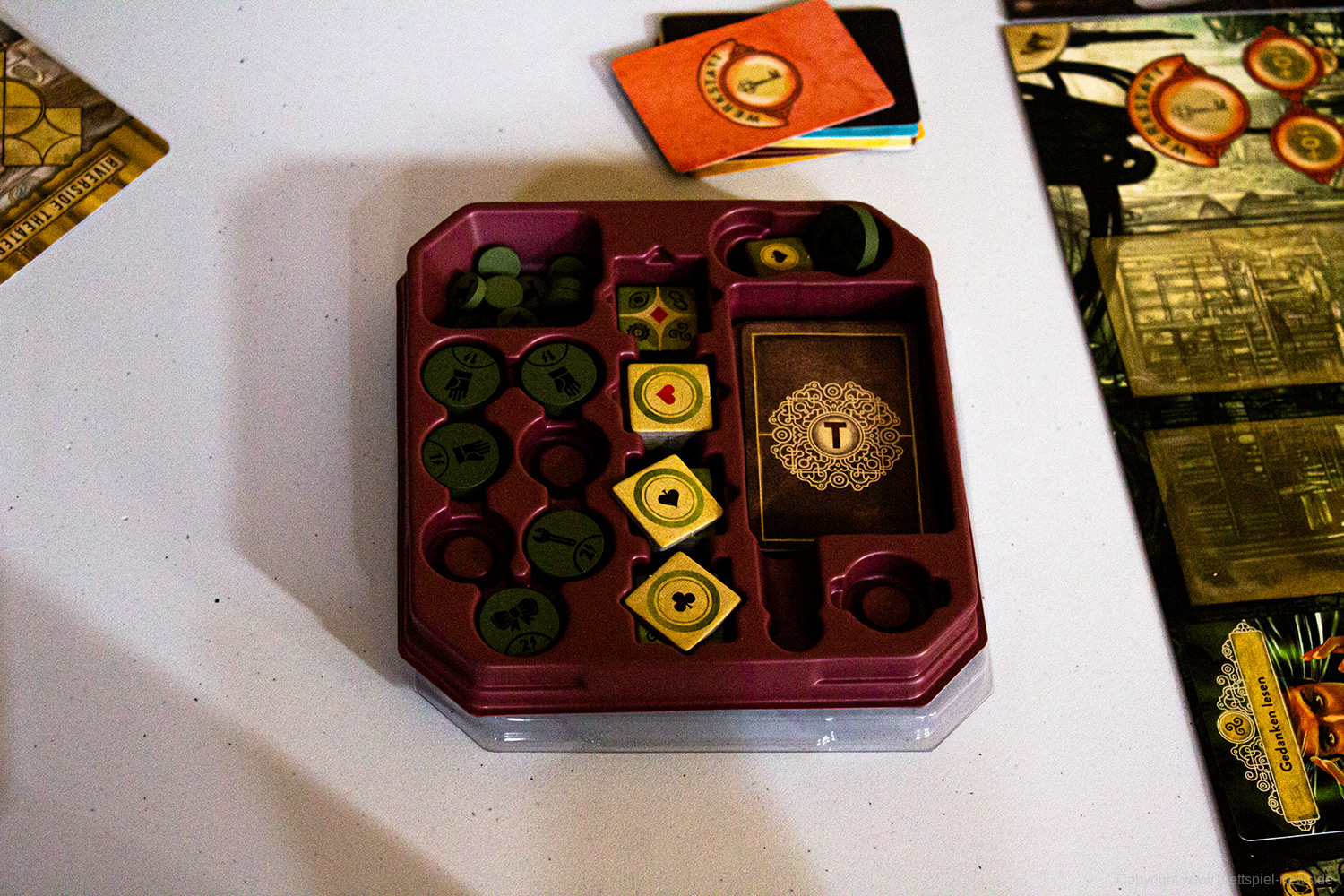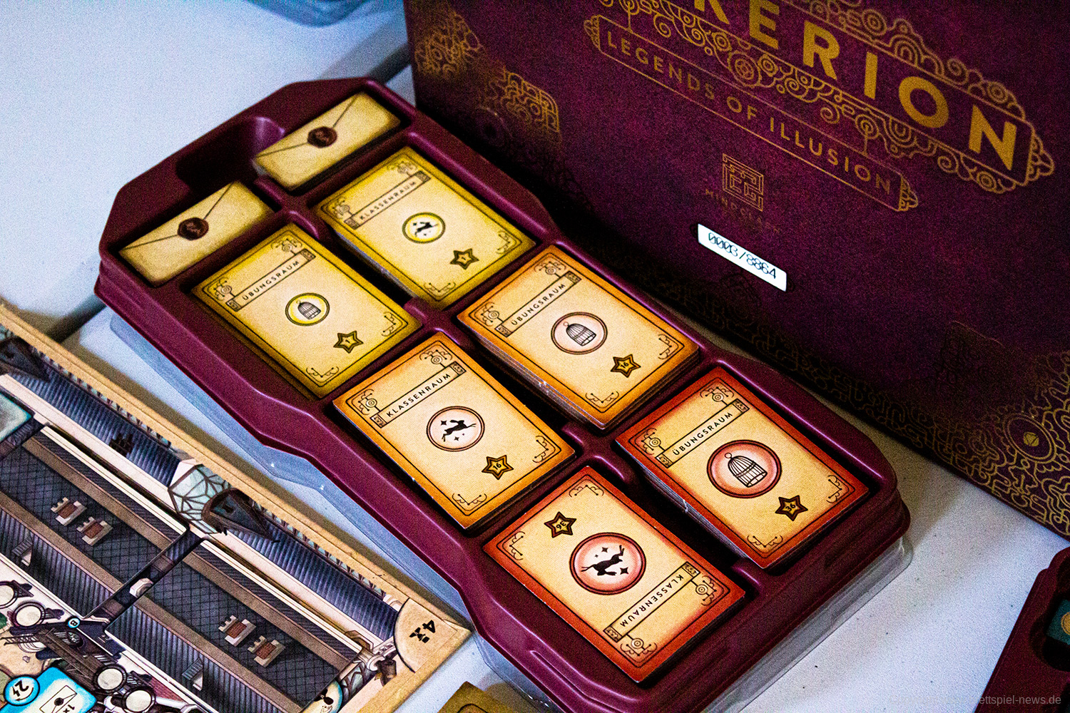 Wir konnten auf dem Corax Tag in Merseburg erstmals Fotos der Collectors Edition von Trickerion machen. Das Spiel wird so nicht in Deutschland erscheinen und war nur auf Kickstarter zu fördern. Was jedoch noch 2019 erscheinen soll sind die Erweiterungen Dahlgaards Akademie und Erwachen der Technik als deutsche Version und dann soll auch das Grundspiel wieder verfügbar sein.