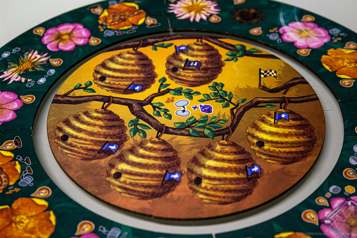 Tatsächlich bietet das Spiel mit seinem simplen Regeln durchaus viel Spieltiefe was ich sehr zu schätzen weiß. Zum einen muss man sehr gut überlegen wie man die eigenen Bienen bewegen möchte. Es ist jederzeit relevant was getan wird und viele verschiedene Faktoren müssen berücksichtigt werden.