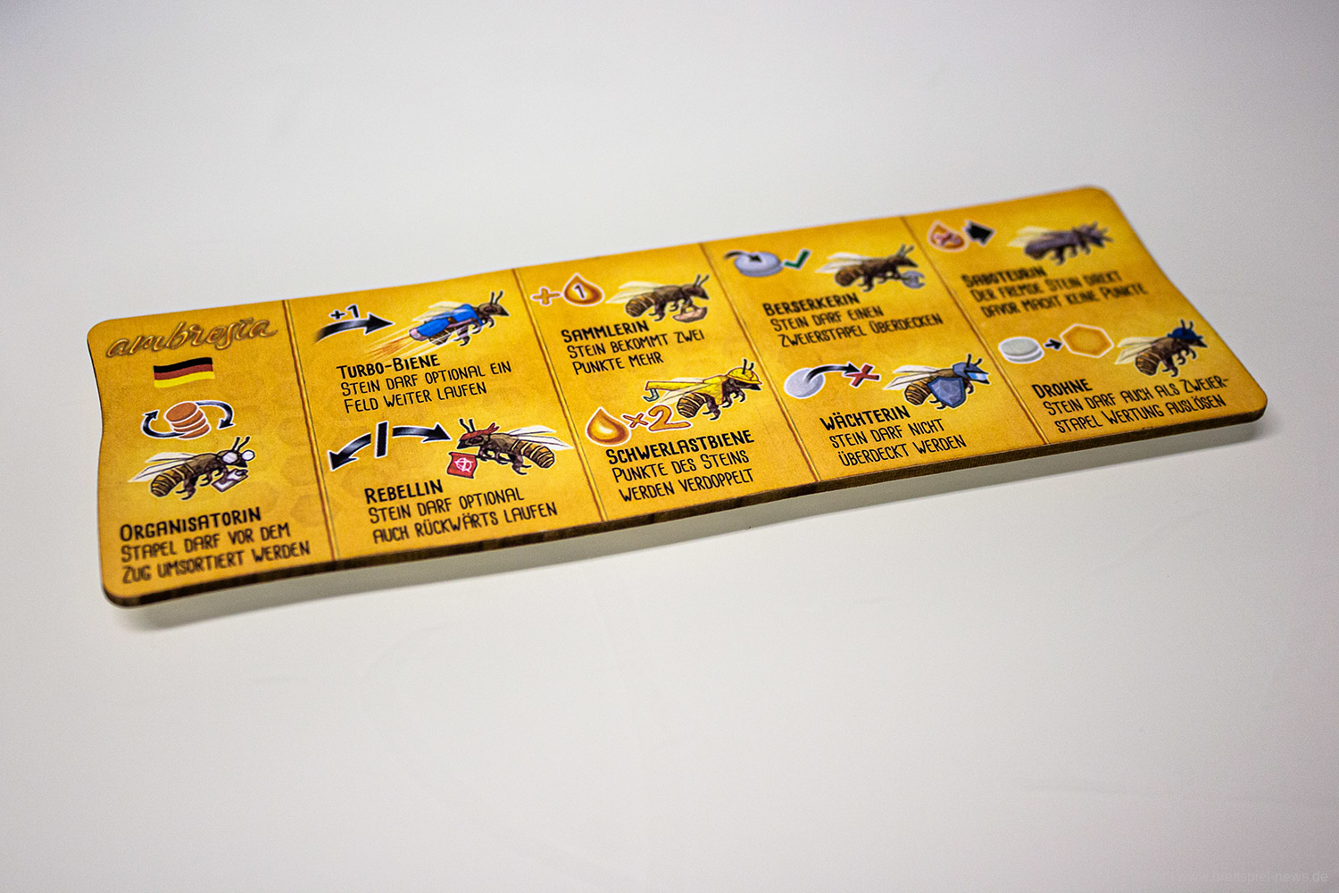 Bei Skellig Games wird zu SPIEL‘19 das Spiel Ambrosia erscheinen. Es stammt vom Autor Uwe Bursik und die SpielerInnen in die Rolle als AnführerIn eines Bienenvolkes. Das Spiel lässt sich mit zwei bis vier Spieler spielen und bietet Spielpartien von rund 30-45 Minuten, sofern kein "Grübler" am Tisch sitzt. Wir haben einen Prototyp des Spiels erhalten und uns schon einige Partien in den Schlacht um den Honig gewagt. Erfahre hier was du von dem Spiel erwarten darfst.