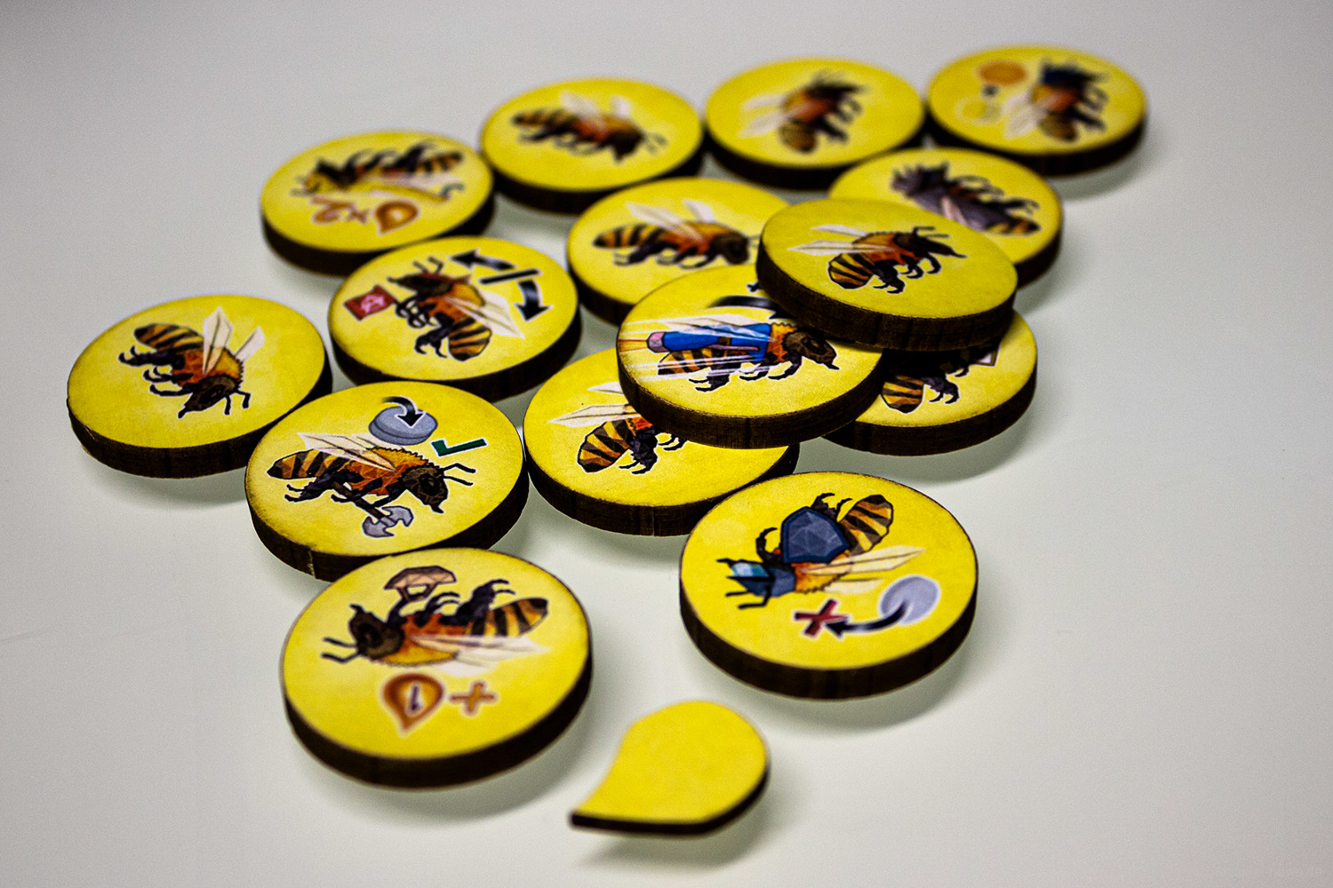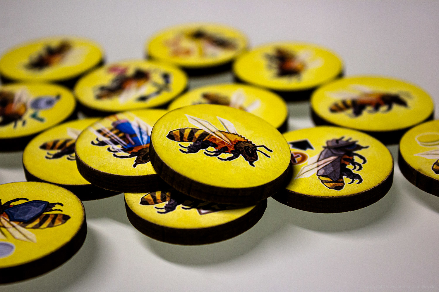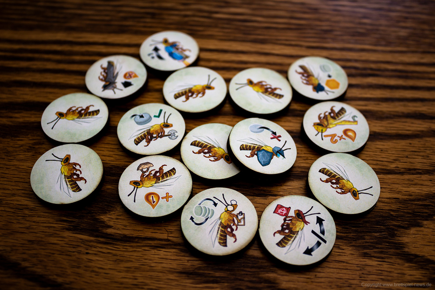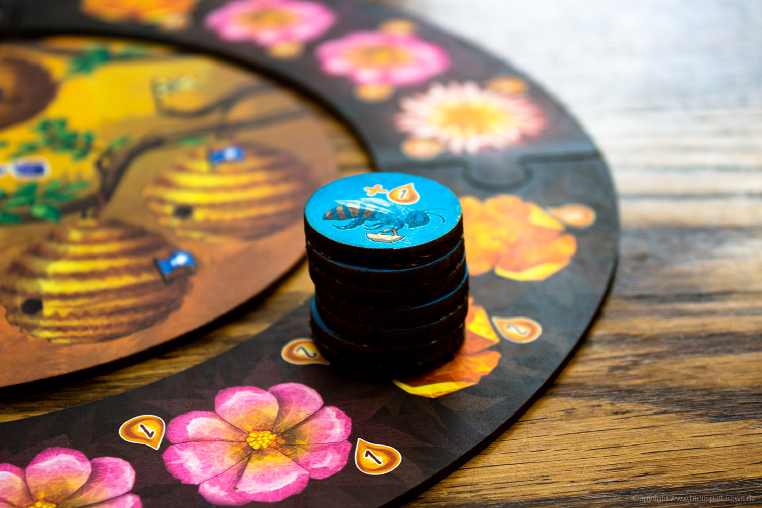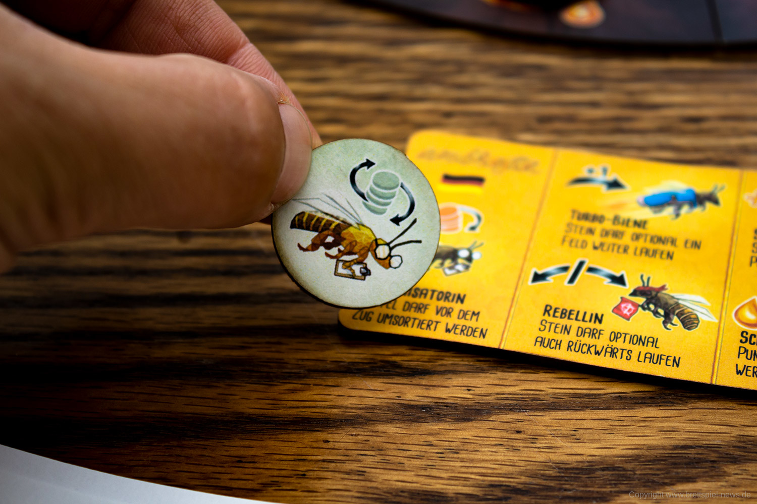 Es gibt in jeder Partie unterschiedliche Möglichkeiten das Spiel zu gestalten. Das liegt unter anderem an den verschiedenen spezialisierten Bienen, von denen jede/r neun Stück hat. Vor allem aber an den vielen kleinen Entscheidungen die zu treffen sind, wie die Bienen bewegt werden. Das ist eine clevere Mechanik und bietet einen schnellen Einstieg, aber viel Erfahrung, um sie zu meistern.