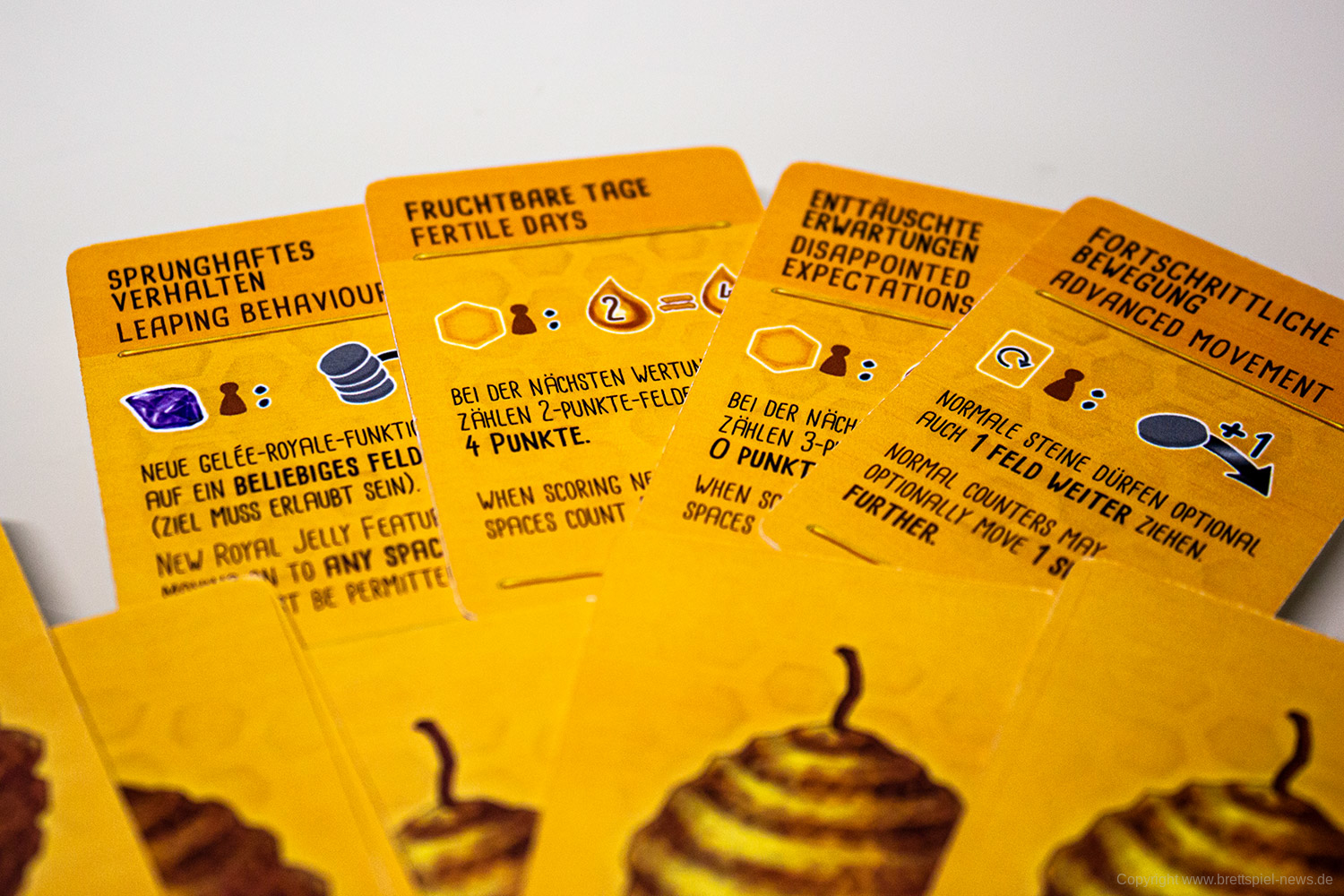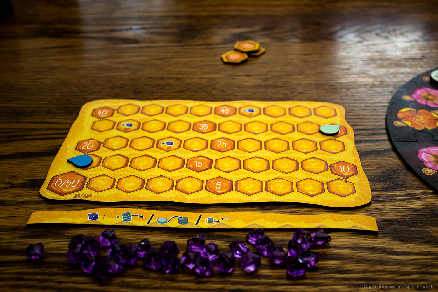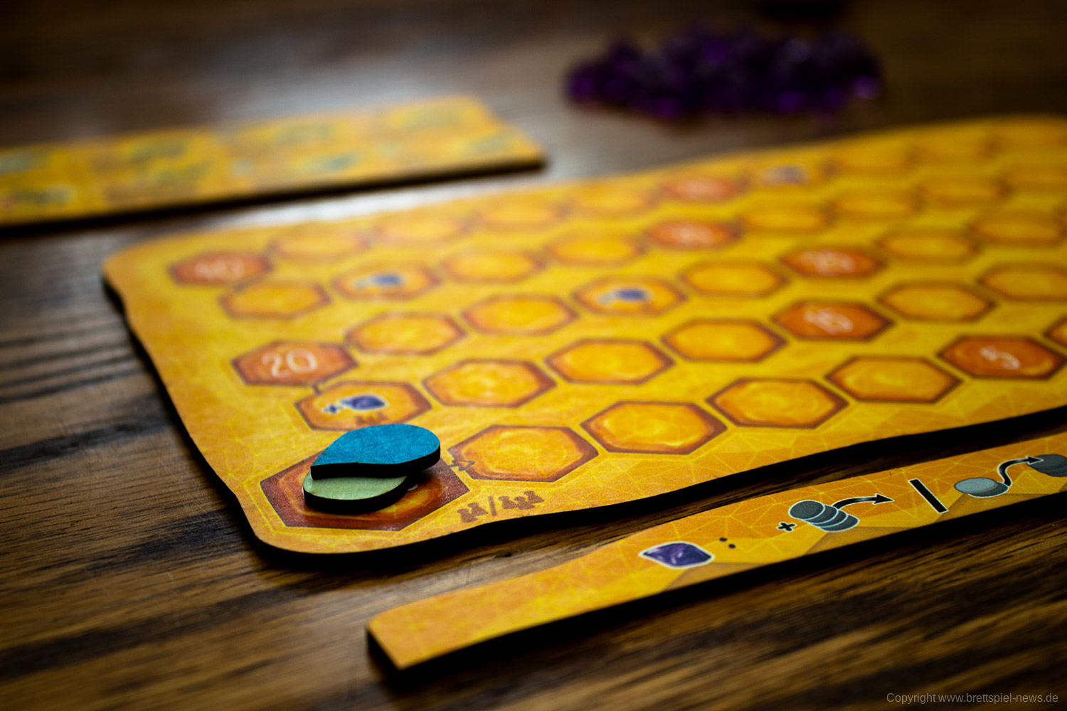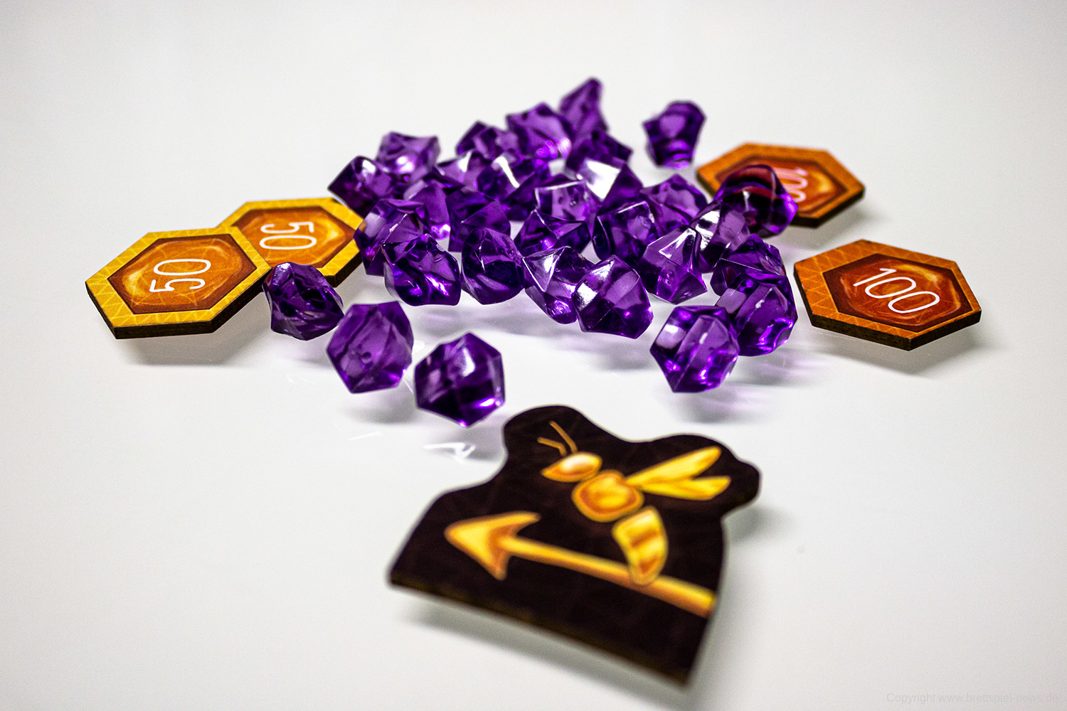 Es gibt in jeder Partie unterschiedliche Möglichkeiten das Spiel zu gestalten. Das liegt unter anderem an den verschiedenen spezialisierten Bienen, von denen jede/r neun Stück hat. Vor allem aber an den vielen kleinen Entscheidungen die zu treffen sind, wie die Bienen bewegt werden. Das ist eine clevere Mechanik und bietet einen schnellen Einstieg, aber viel Erfahrung, um sie zu meistern.