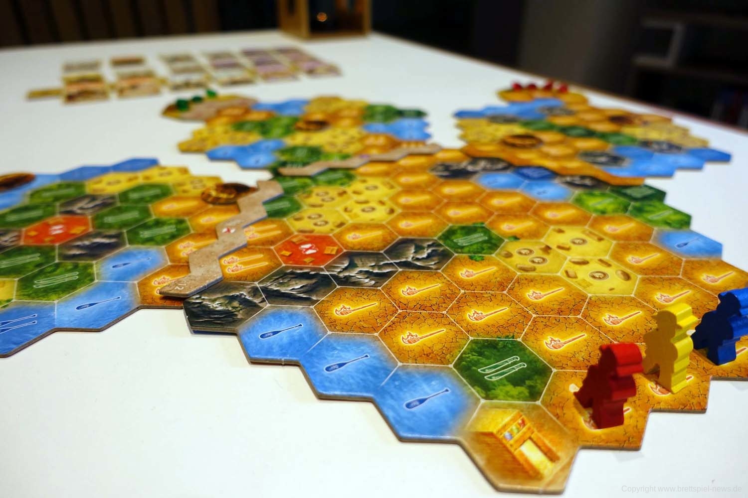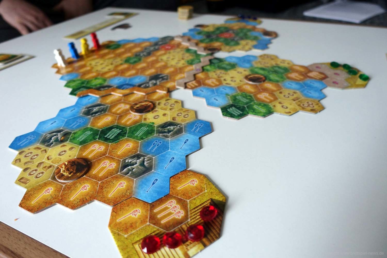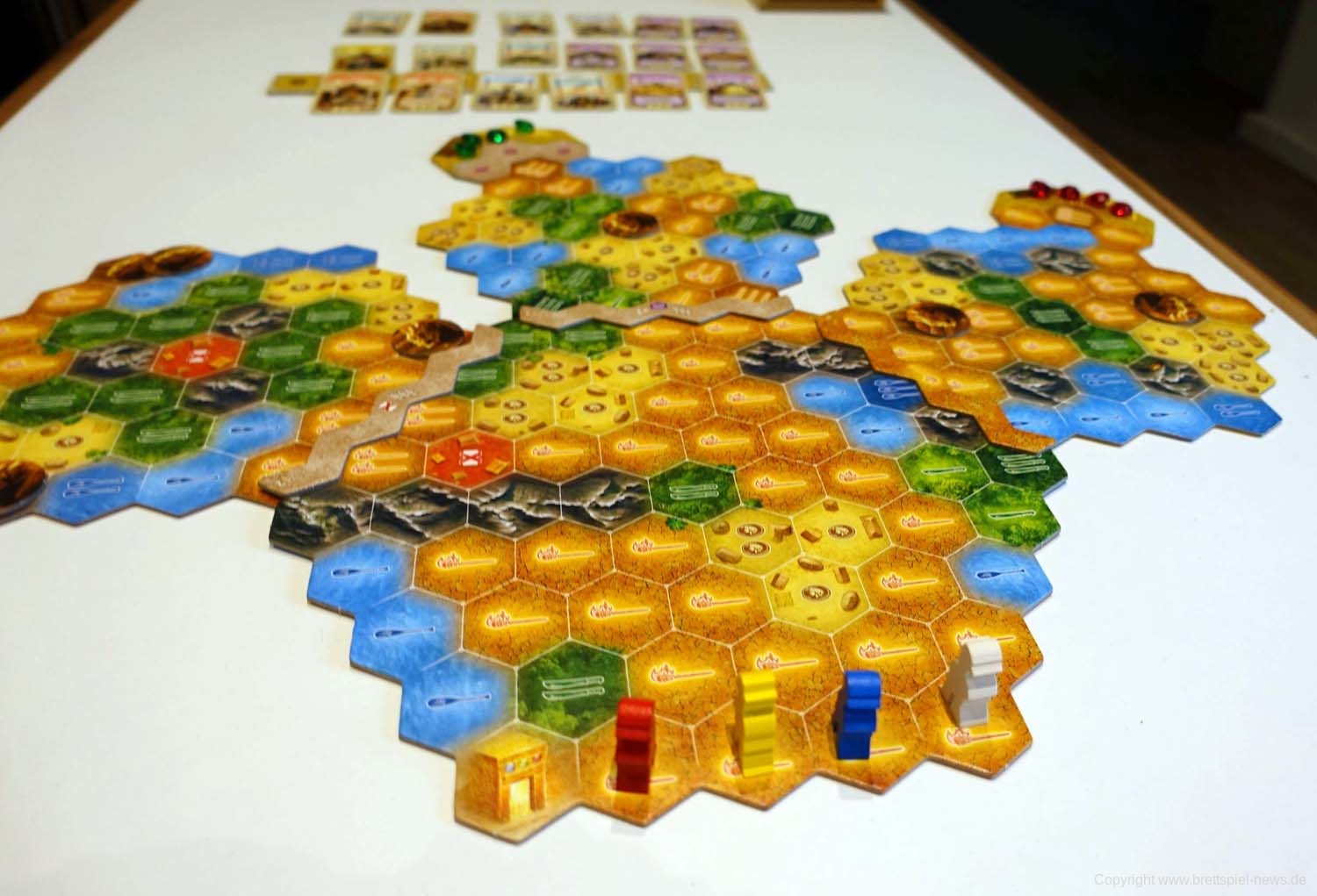 Wir haben ein Exemplar von Wettlauf nach El Dorado: Die Goldenen Tempel erhalten und zeigen hier schon einmal das Spielmaterial. Das Spiel ist sowohl selbstständig spielbar, lässt sich aber auch mit dem ersten El Dorado verbinden. Das Spiel ist für 2-4 SpielerInnen geeignet , soll 45-60 Minuten Spielzeit bieten.
