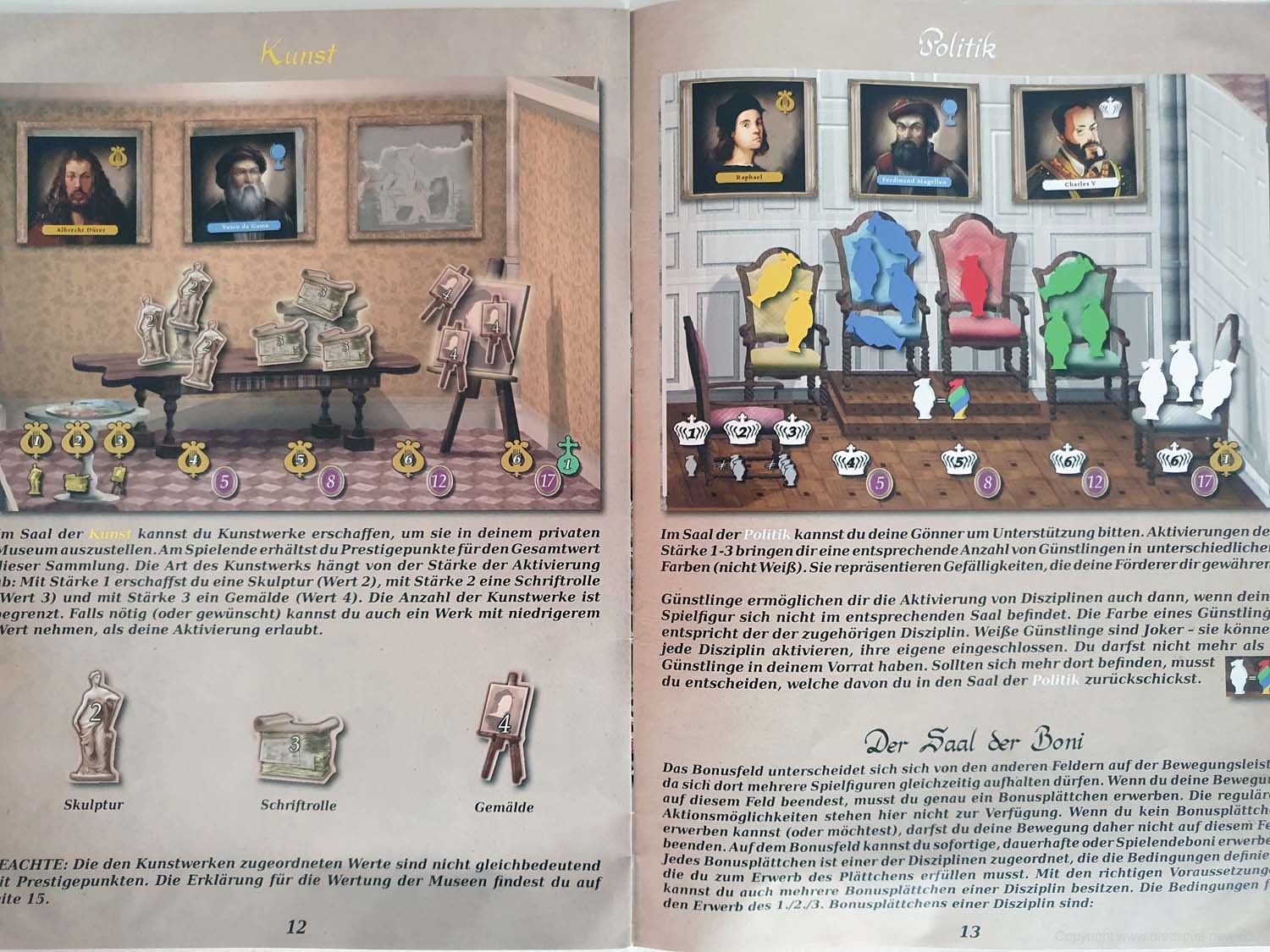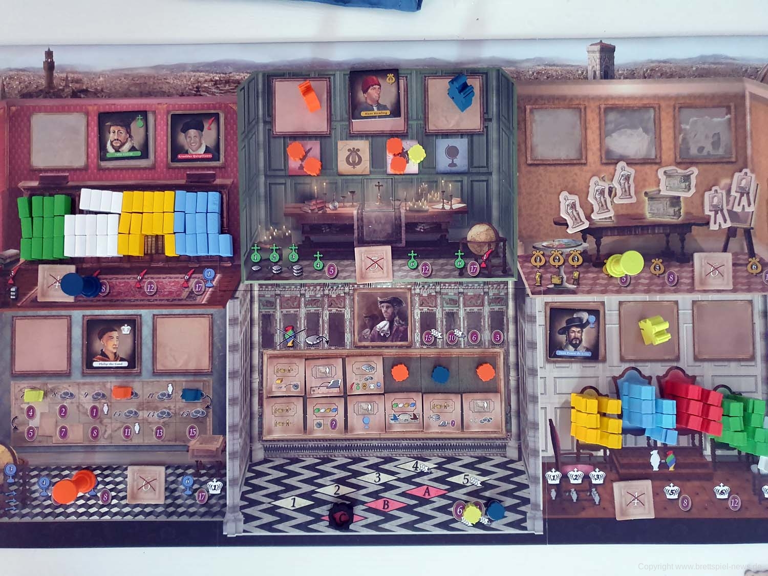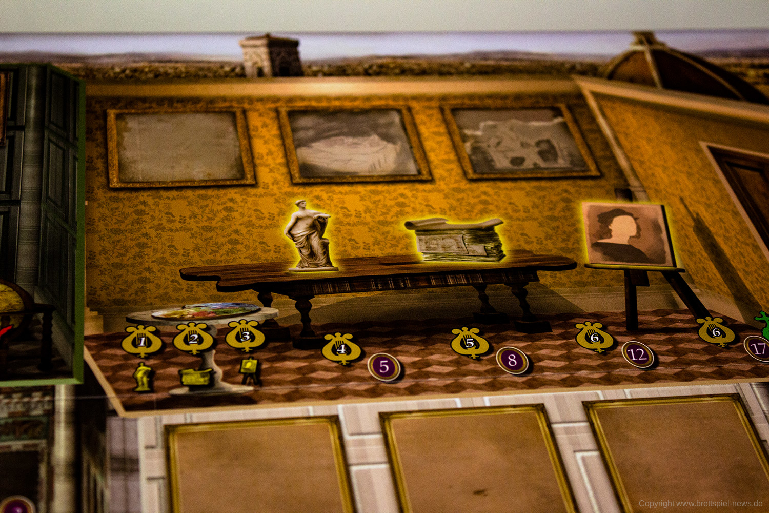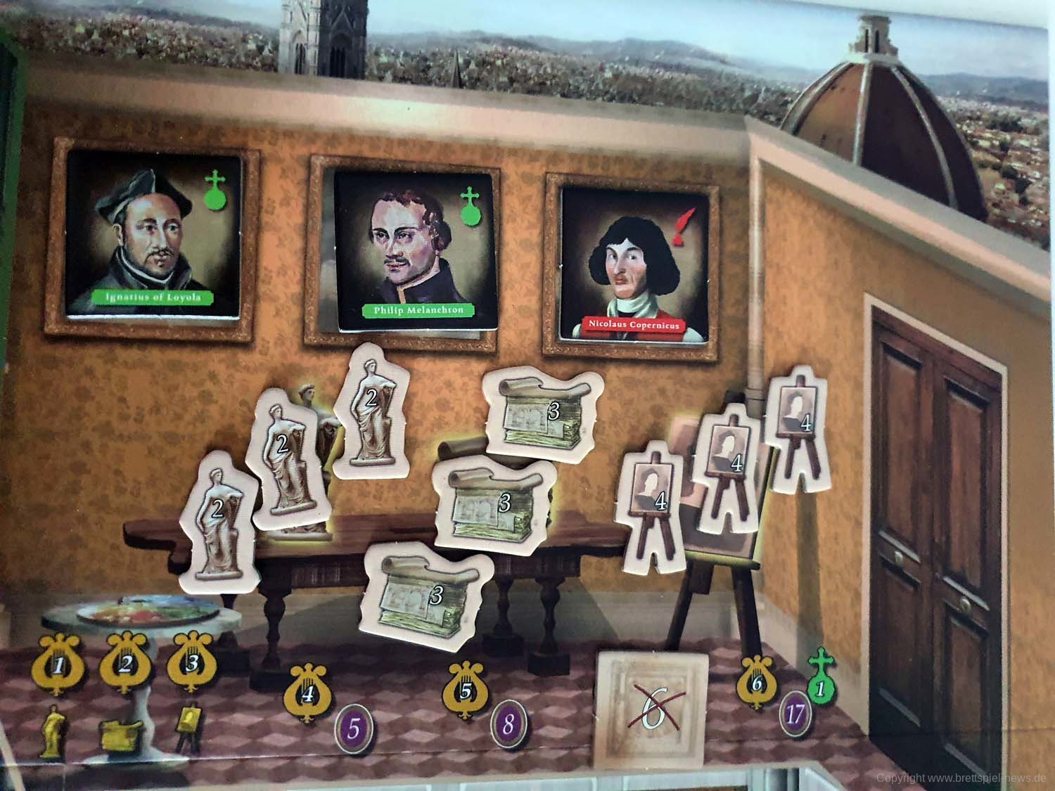 Im Spiel sollen die Mäzene zwischen verschiedenen Räumen wechseln, in denen sich jeweils die Charaktere befinden, die der aktuellen Interessenslage am dienlichsten sind. Sie verstärken Aktionen und helfen so das angestrebte Ziel zu erreichen.