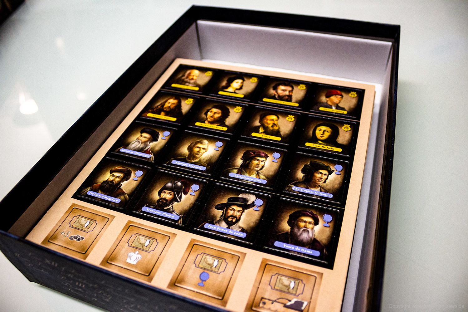 Wir hatten ein Exemplar auf Kickstarter gefördert weswegten uns schon ein Exemplar vorliegt. Hier sind erste Bilder vom Spielmaterial.