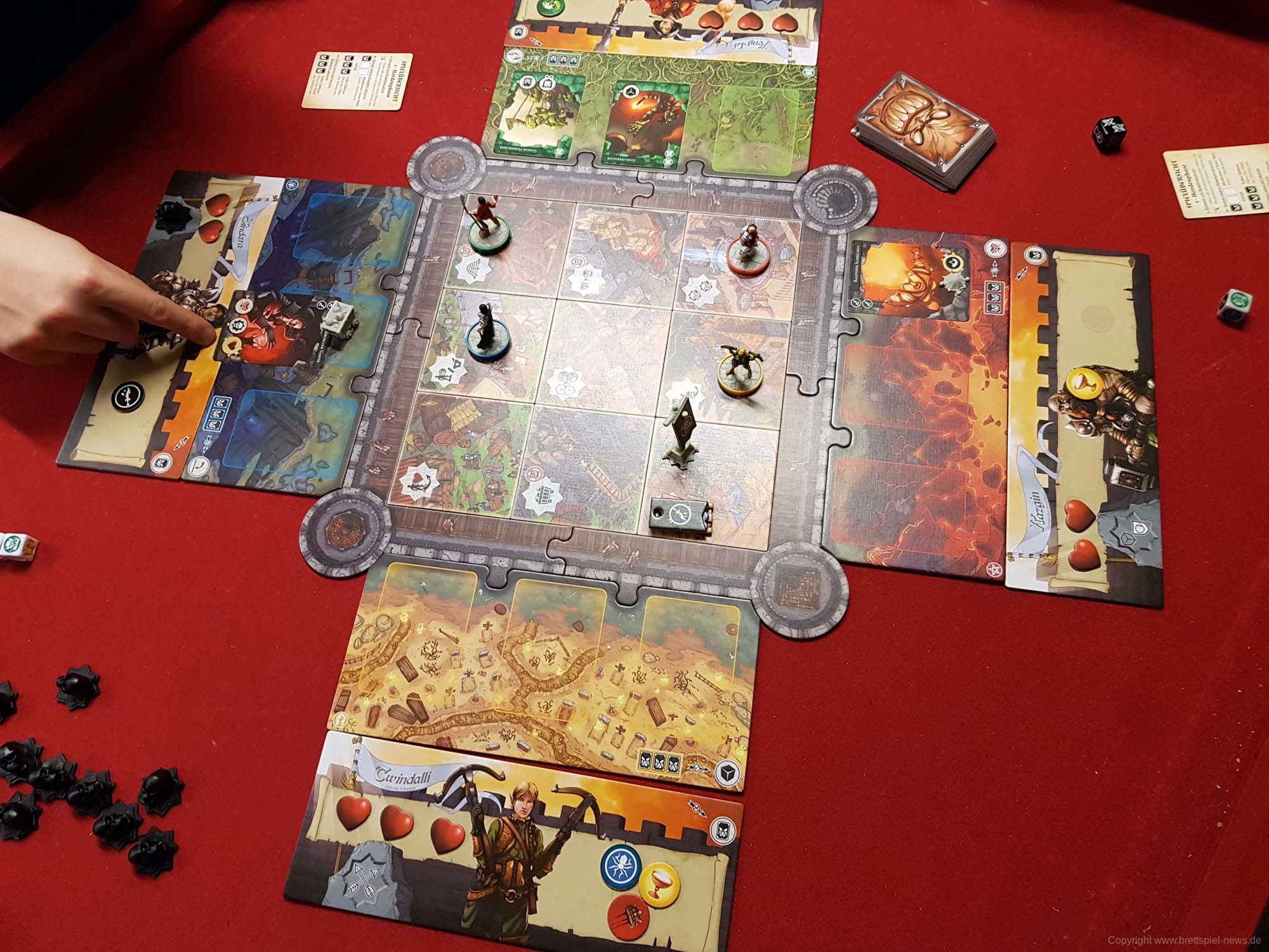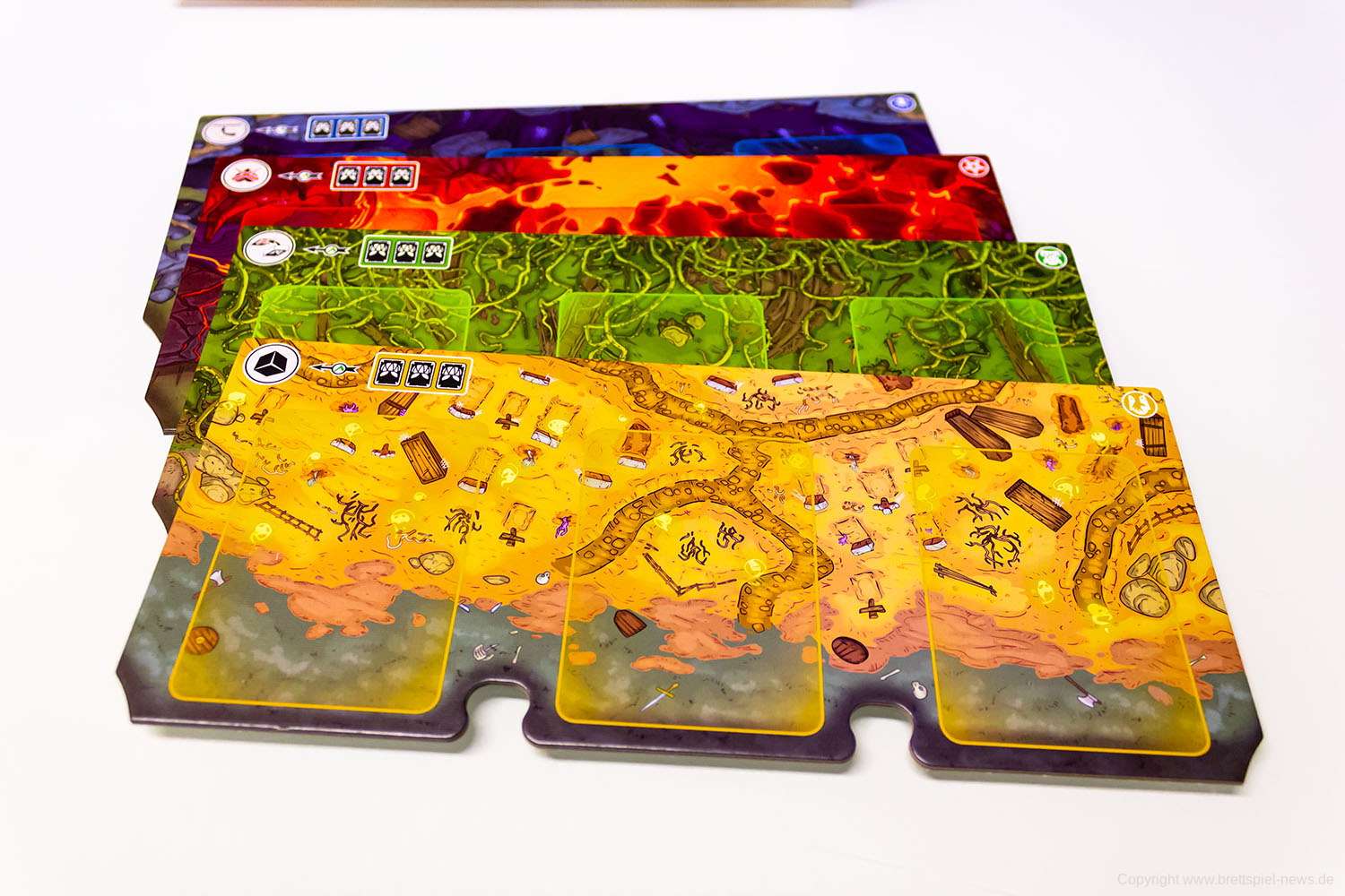 Durch die verschiedenen Charaktere kommt viel Abwechslung in das Spiel. Jede/r Spieler/in muss ihren Bereich sauber halten also versuchen, dass sich nicht gleich drei Karten dort befinden, bevor sie oder er an der Reihe ist. Das geht zum einen über die Funktionen der SpielerInnen und zum anderen über de neun Aktionen der Felder, auf denen sich die SpielerInnen bewegen. Außerdem wird gekämpft, bewegt und zusammen eine Taktik besprochen, um zu siegen.