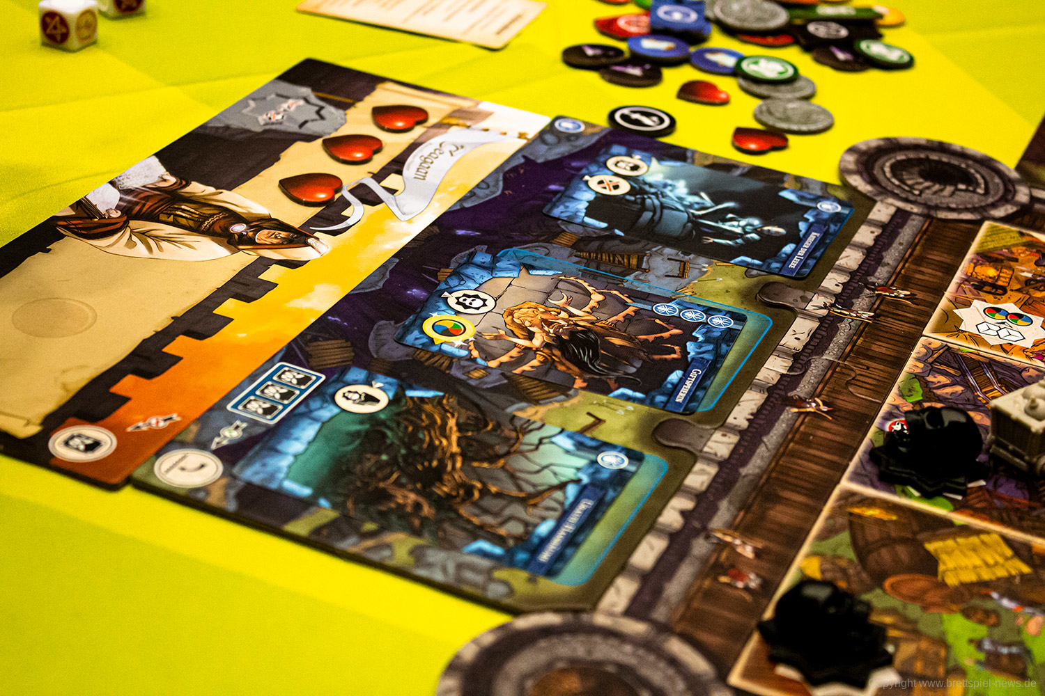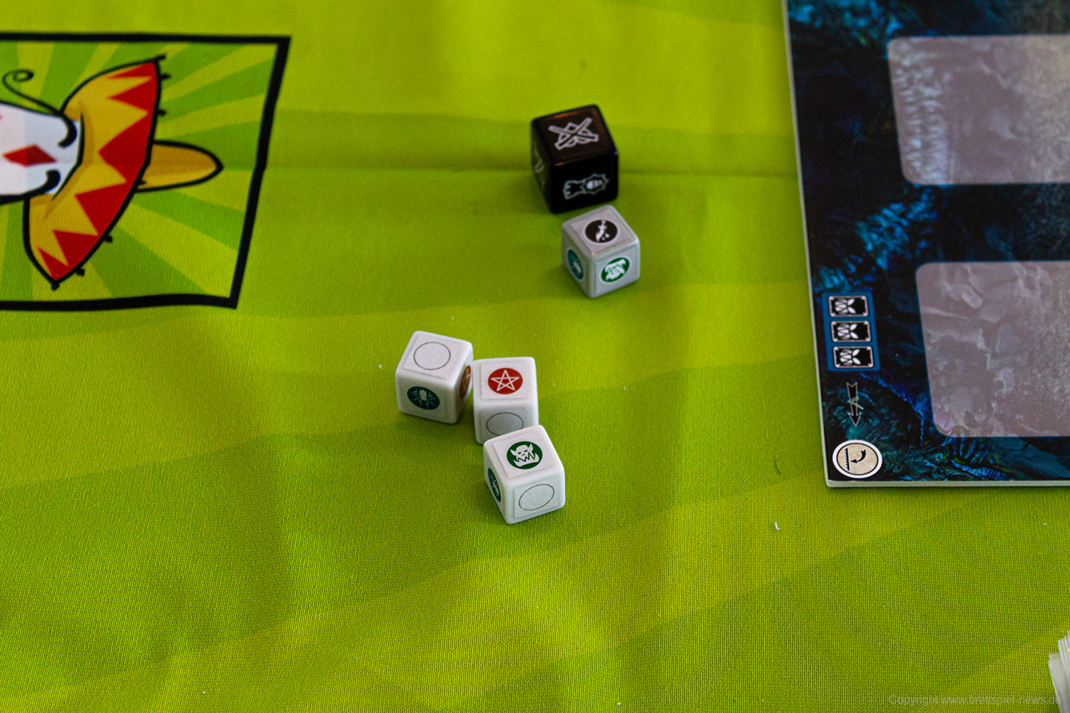 Wie immer ist die Auflage begrenzt und „der frühe Vogel fängt den Wurm“. Wir konnten das Spiel heute bereits spielen und hatten richtig Spaß damit. Es ist schnell, es ist schwer und es ist kooperativ. Wir haben am Abend noch knapp gewonnen, als wir durch einen letzten Wurf die Schergen des Bösen besiegen konnten.