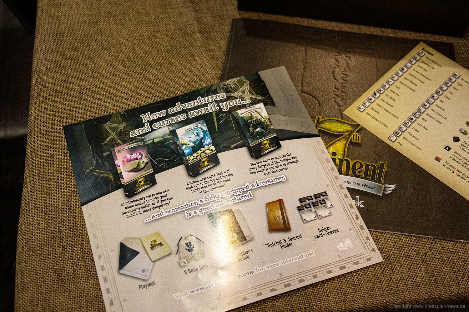 Die Box wird drei Abenteuer bestehend aus 849 Karten enthalten. “The Voracious Goddess”, “An offering to the Guardians”, “The bloody hunt” sind enthalten. Drei Erweiterungen sollen folgen. Hier siehst du erste Bilder des Spiels (englische Version).