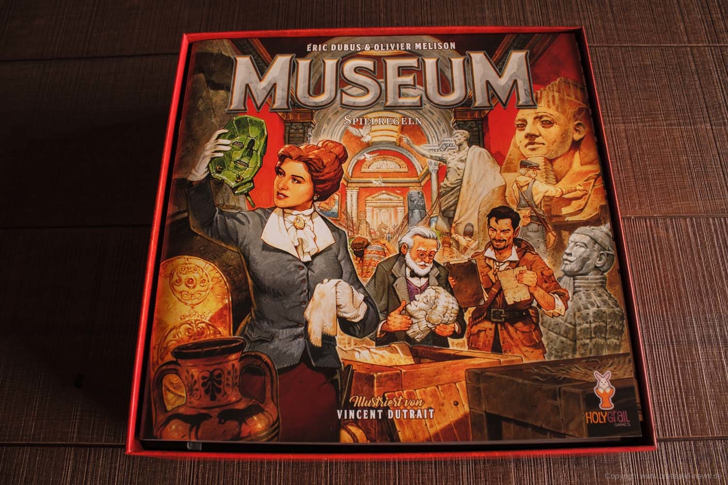 Mit MUSEUM veröffentlicht HOL GRAIL GAMES ein Spiel, das durch sein Cover gleich ins Auge sticht und die Aufmerksamkeit auf sich zieht. Auf der SPIEL'19 war der Stand von HOLY GRAIL GAMES in direkter Nachbarschaft zu unserem eigenen Stand, weswegen wir gar nicht anders konnten, als uns regelmäßig damit zu beschäftigen. Lange mussten wir aber nicht überlegen, um uns eines der Exemplare zu sichern.