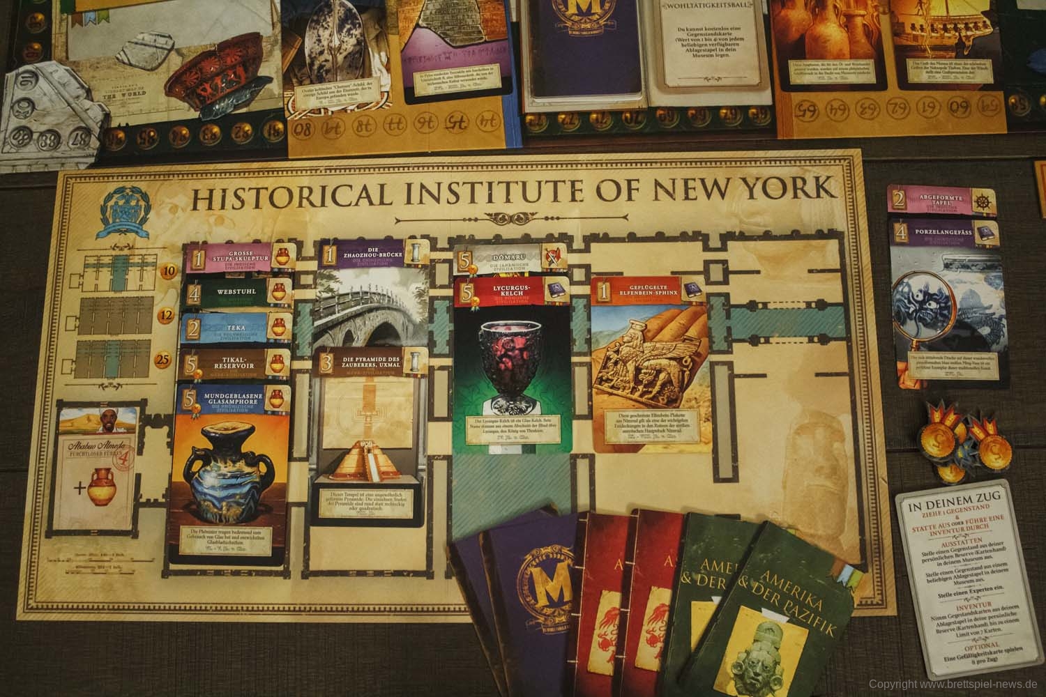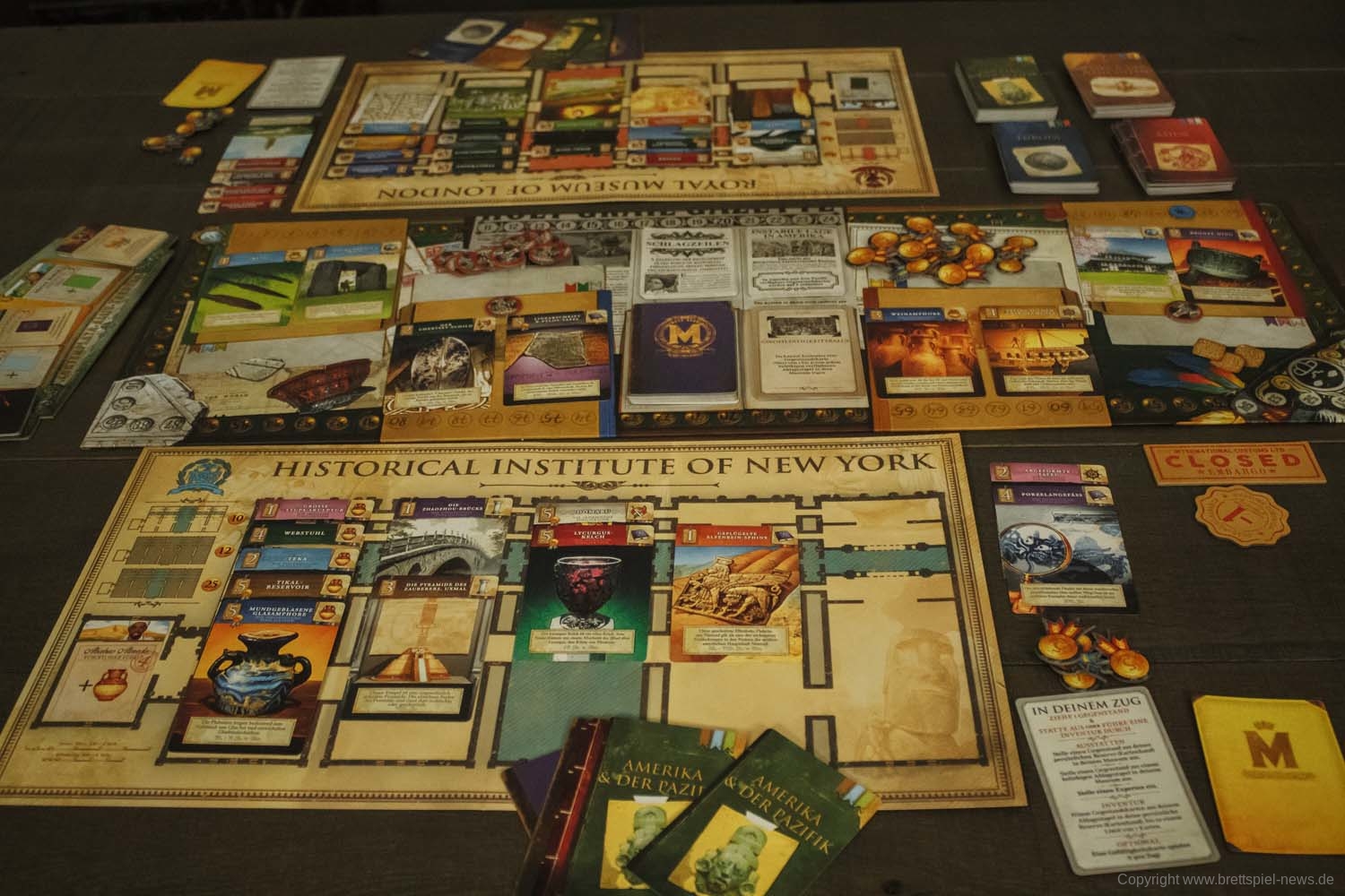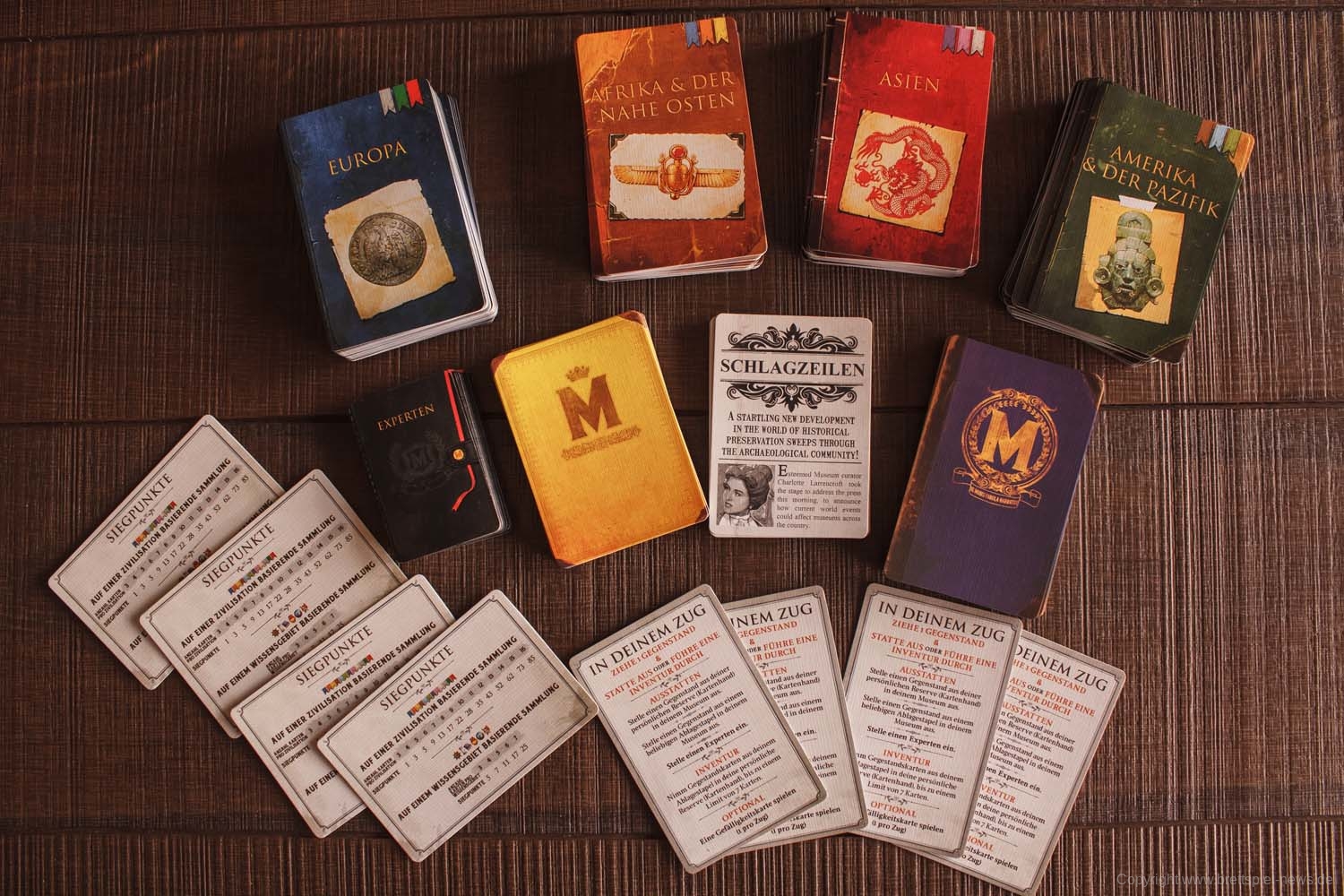 Nach eigener Aussage des Verlages soll MUSEUM sowohl familienfreundlich als auch fordernd für etwas erfahrenere SpielerInnen sein. Ob das so ist, werden wir später in einer gewohnt ausführlichen Review klären. Bis dahin wollen wir euch aber auf gar keinen Fall den sehr ansprechenden Inhalt der Spielbox vorenthalten und präsentieren euch einige Bilder des Spielmaterials!