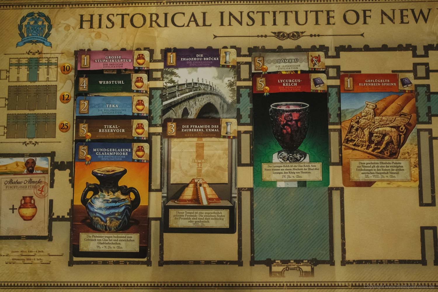 Museum ist nicht nur ein unterhaltsames Erlebnis, sondern auch reich an historischen Inhalten. Die Karten enthalten über 300 einzigartige Illustrationen des unnachahmlichen Vincent Dutrait, darunter 180 einzigartige Artefakte. Alle Objekte und Orte im Spiel sind echt, und die Informationen auf jeder Karte sind faktenbasiert.