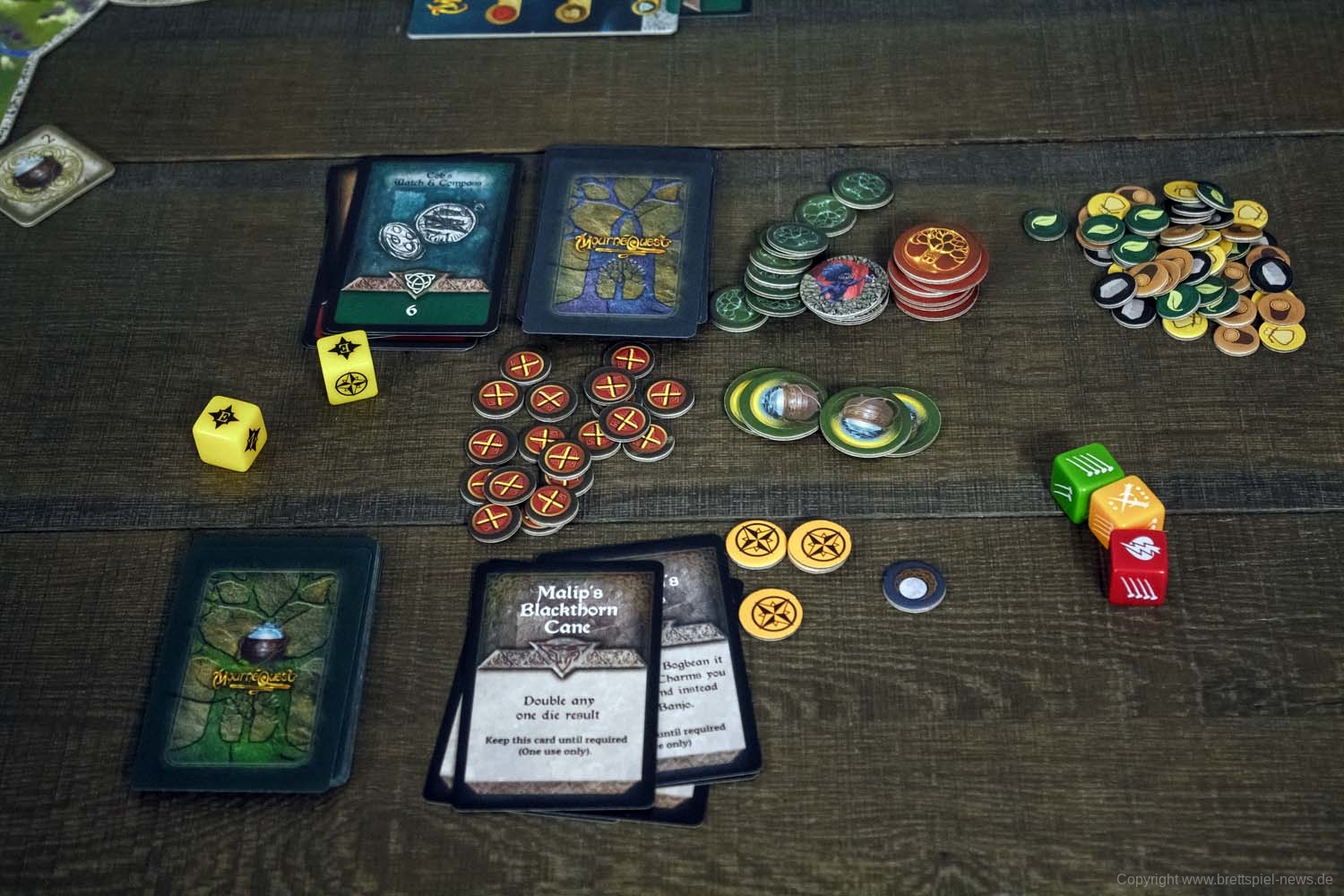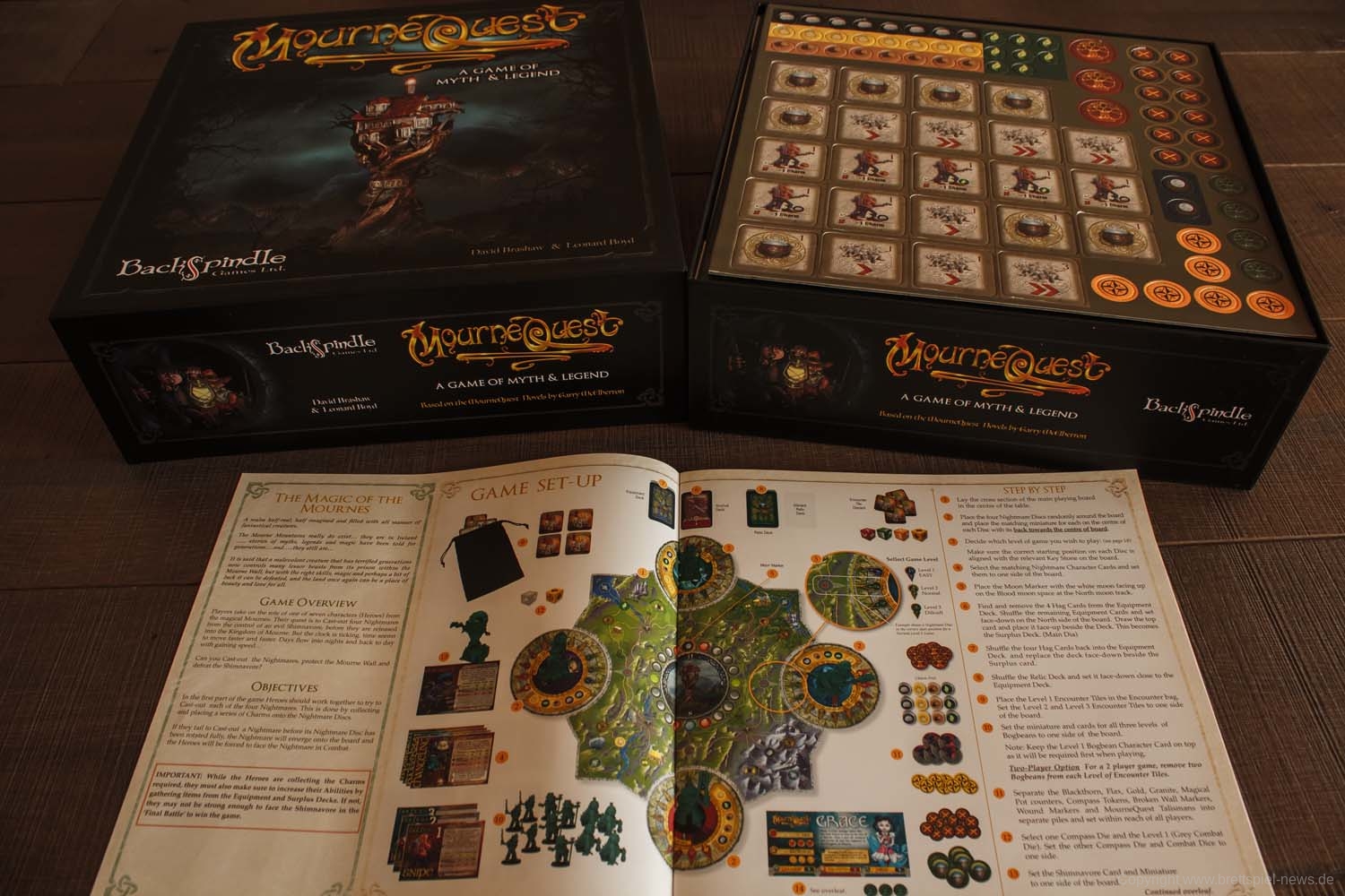 Wir haben uns während der SPIEL'19 auf irische Pfade gewagt, um uns ein Exemplar von MOURNEQUEST zu sichern. Hier seht ihr schon einmal, was sich alles in der Box befindet. Eine ausführliche Besprechung wird später natürlich noch folgen.