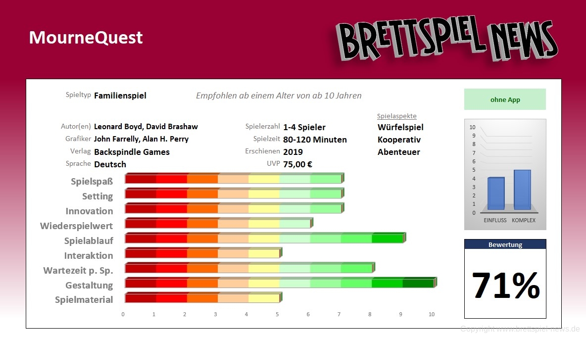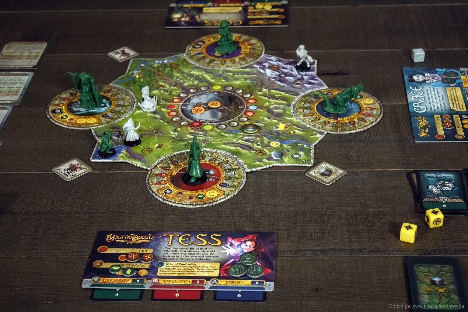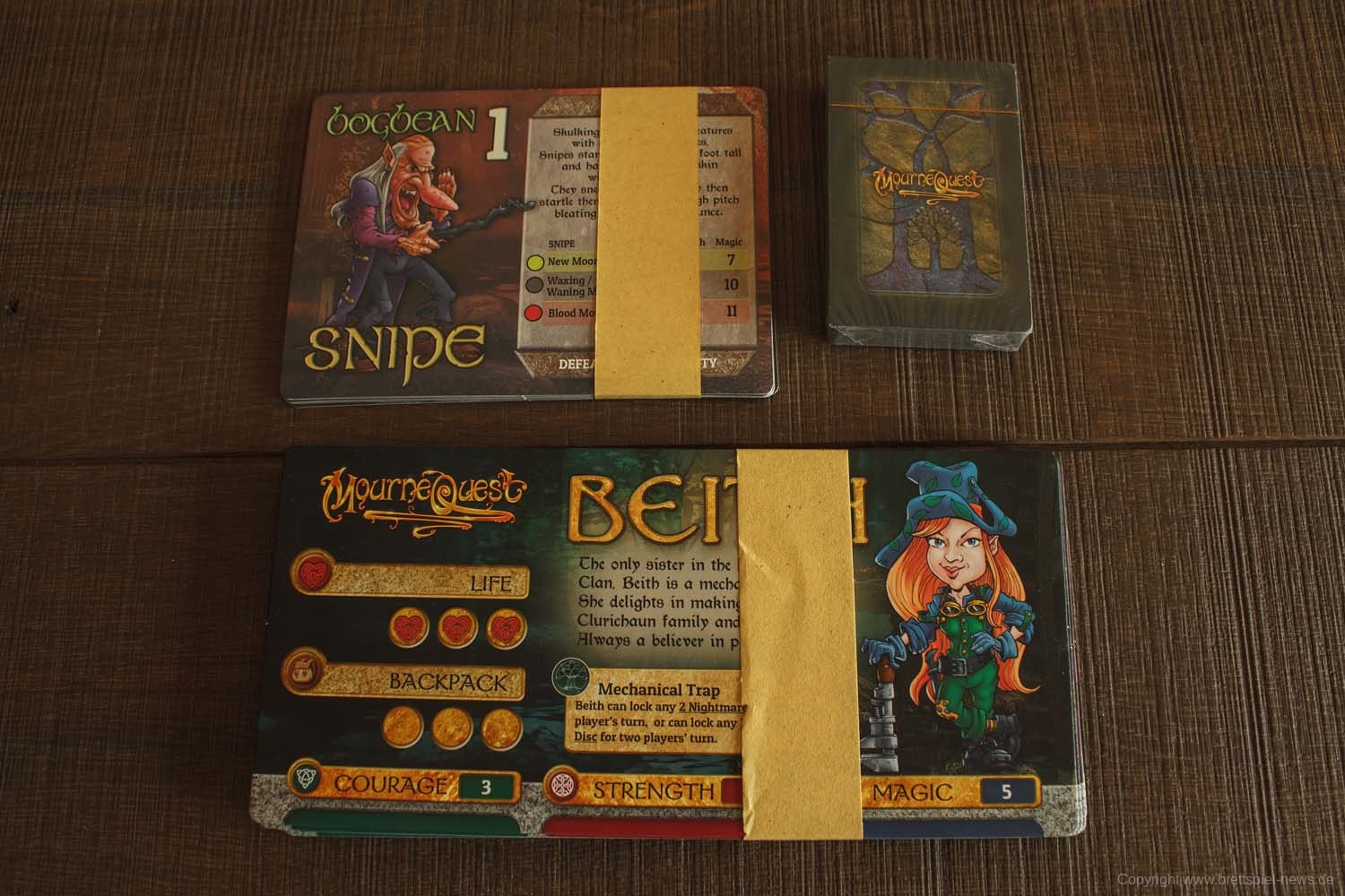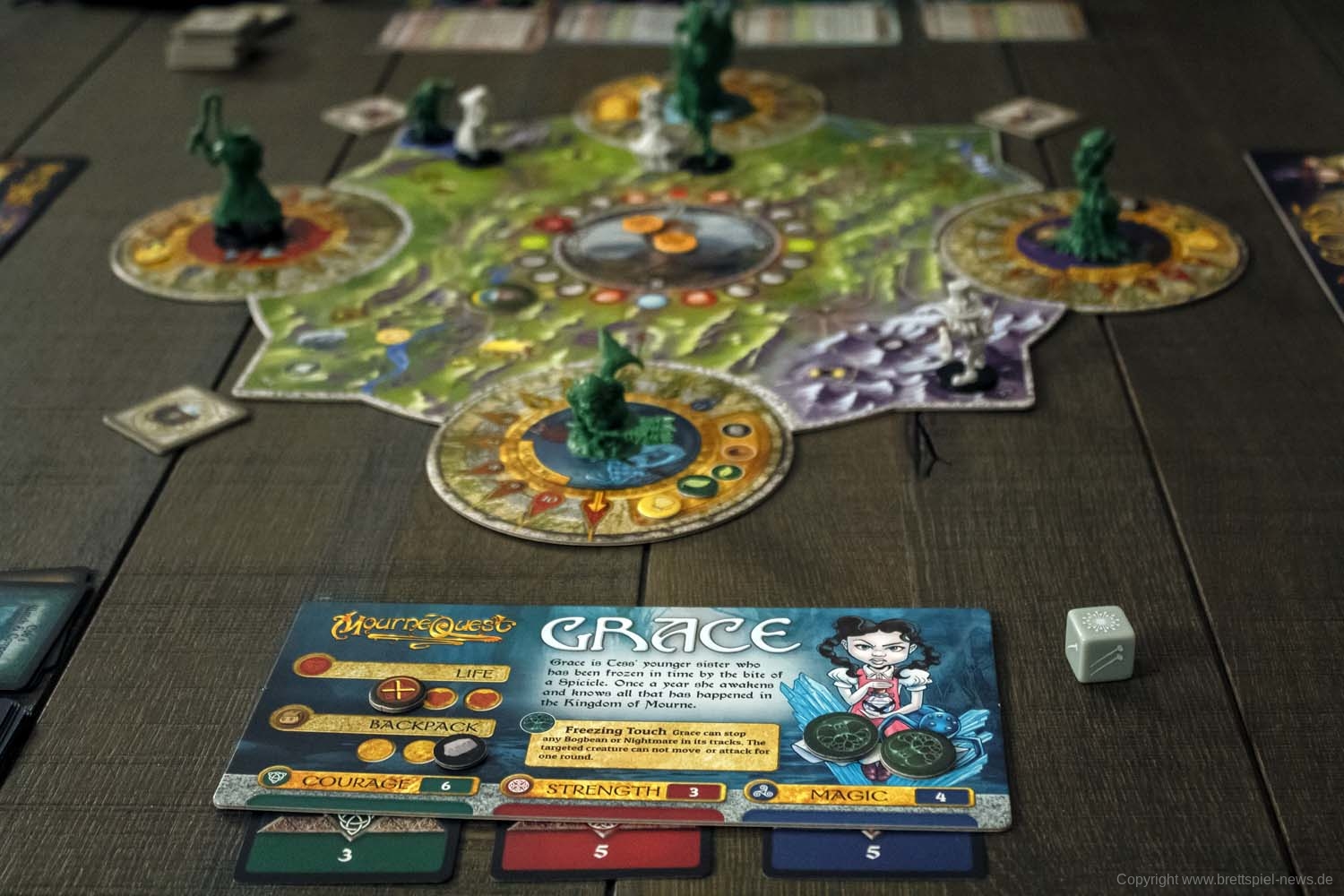 In MOURNEQUEST von BACKSPINDLE GAMES übernehmen 1-4 SpielerInnen die Rollen von Figuren aus den gleichnamigen Büchern von Garry McElherron. Ihr Ziel ist es, den bösen Shimnavore zu besiegen, bevor es zu spät ist. Doch vor dem großen Kampf stehen noch zahlreiche weitere Gefahren in ihrem Weg, die es zunächst kooperativ zu beseitigen gilt. Im Mai 2018 konnte das MOURNE QUEST über Kickstarter gebackt werden, nun steht es auch als Retailversion zur Verfügung.