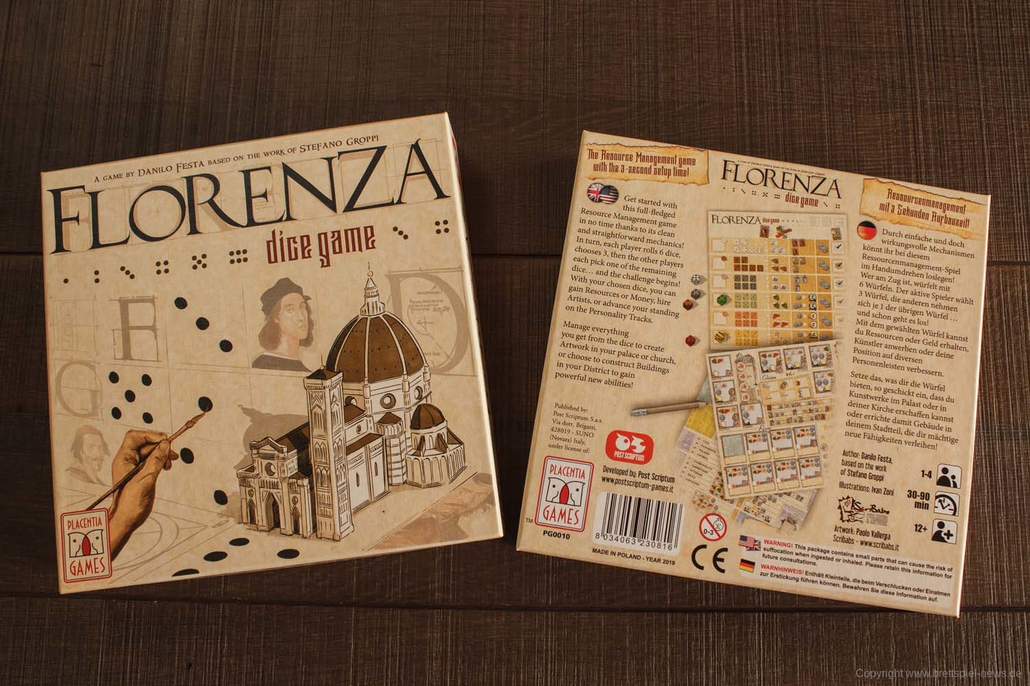 FLORENZA vom italienischen Publisher POST SCRIPTUM GAMES ist ein Roll and Write, das in der namensgebenden Toskanametropole angesiedelt ist. Im Gegensatz zu vielen anderen Vertretern des Genres, kommt es mit mehr taktischer Tiefe daher und erfordert von den Spielern und Spielerinnen strategische Planung.