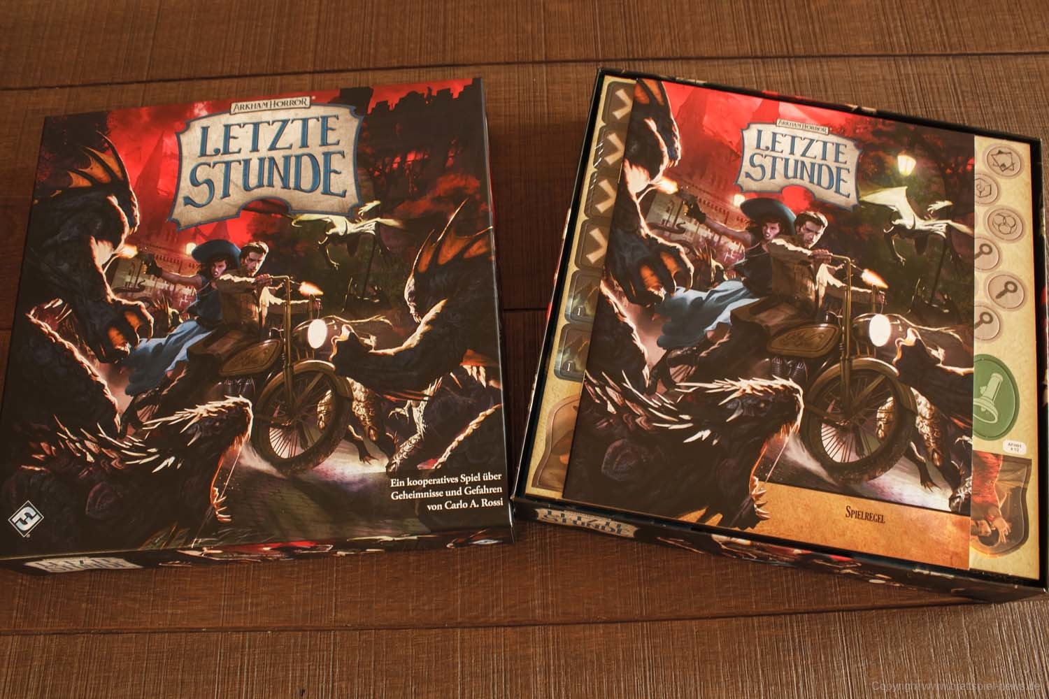Mit ARKHAM HORROR - LETZTE STUNDE bringt ASMODEE DEUTSCHLAND kurz nach dem Release von ARKHAM HORROR (3. Edition) einen weiteren FFG-Titel aus dem bekannten Lovecraft-Universum in die Läden. Bei dem Spiel soll es sich um eine deutlich schneller spielbare Varitante von ARKHAM HORROR handeln, die zudem mit einem schlankeren und weniger komplexen Regelwerk daher kommt.