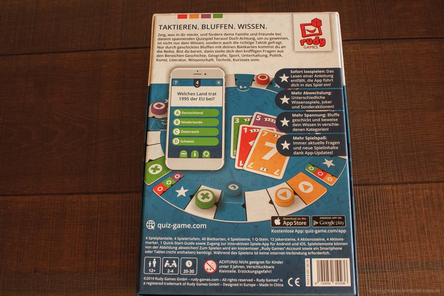 QUIZ IT von RUDY GAMES ist ein schnelles Ratespiel für bis zu 4 SpielerInnen. Die Fragen werden über eine App gestellt, was es seitens des Publishers leicht macht, stets aktuellen Nachschub zu liefern.