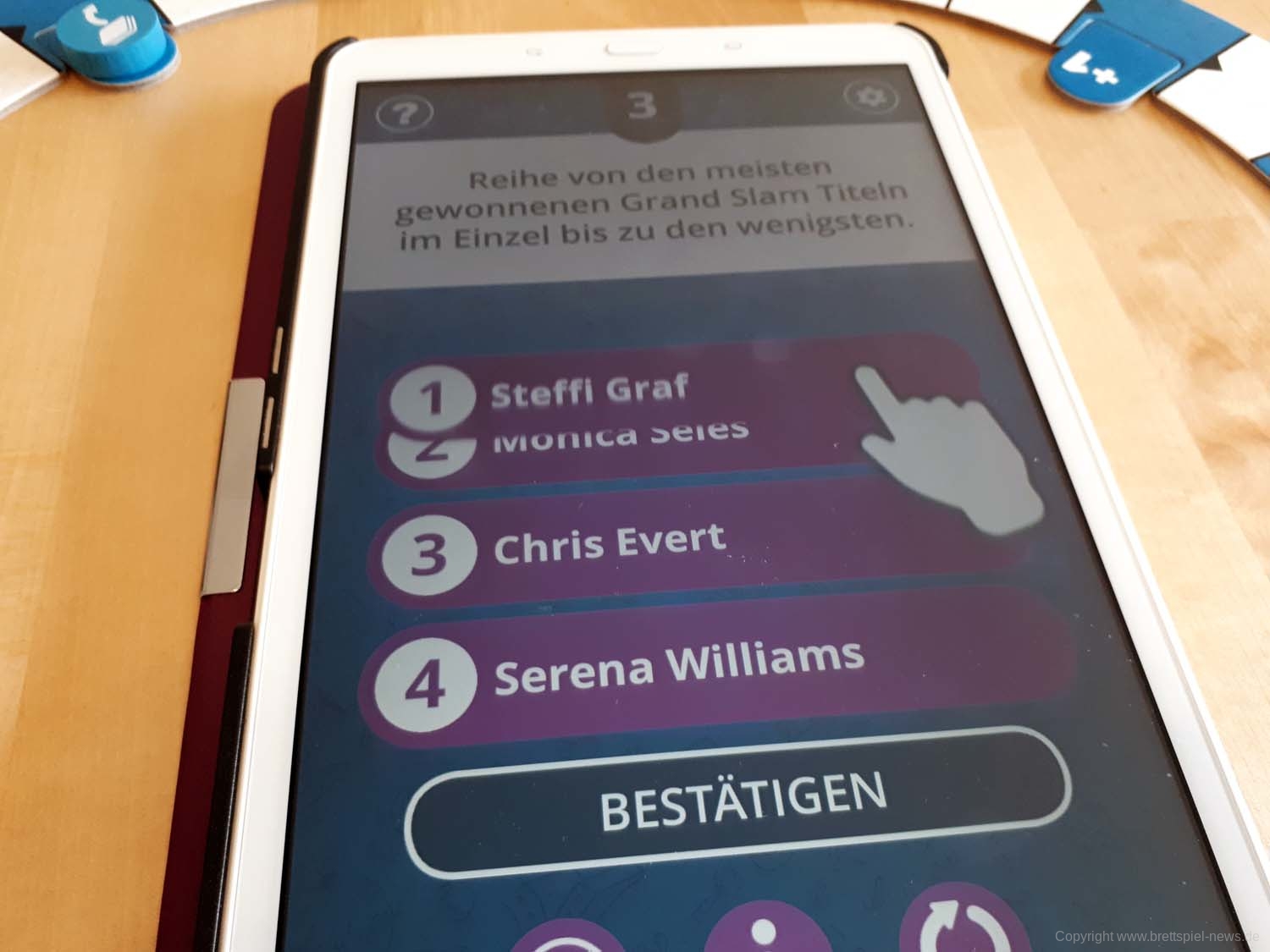 Nur durch geschicktes Bluffen mit den Bietkarten kommt ein Spieler an die Reihe und muss dann sein Wissen beim interaktiven Quiz-Moderator unter Beweis stellen.