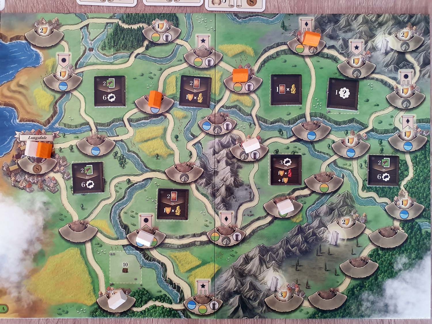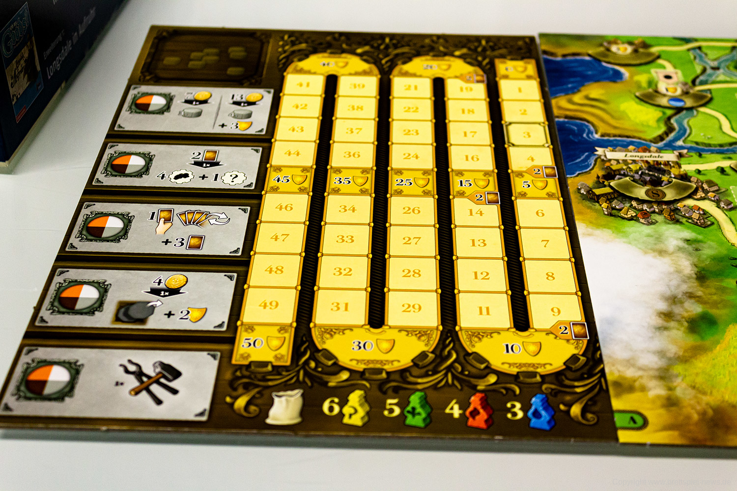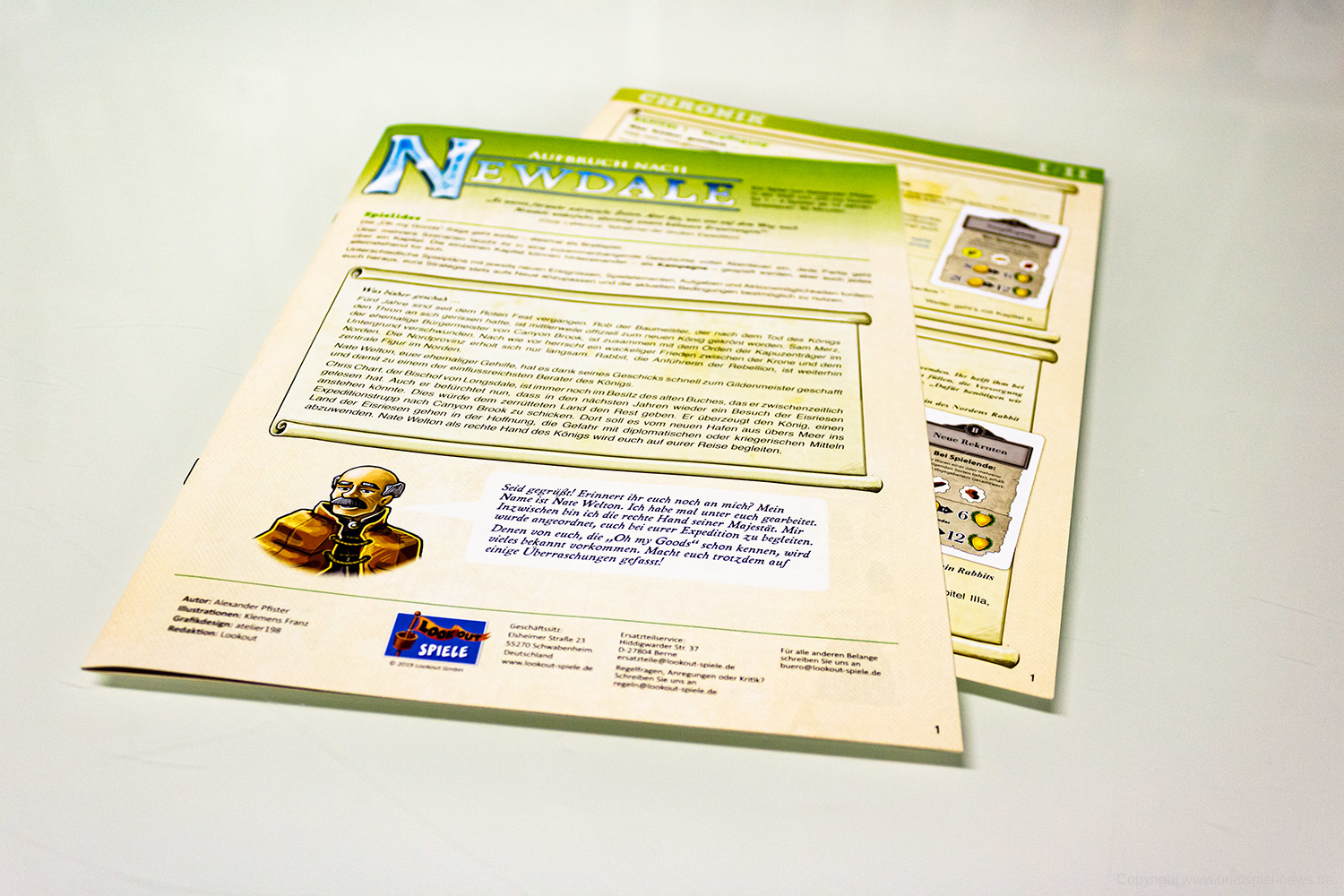Aufbruch nach Newdale verspricht also viele spannende Partien. Dank der legacy-ähnlichen Entwicklung des Spiels über die Kapitel hinweg (z. B. andere Gebäude, Spielpläne, die sich teils signifikant unterscheiden und verschiedene Schwerpunkte bieten, usw.) gleicht sich dabei kaum eine Partie der anderen. Da aber eben kein Spielmaterial zerstört oder permanent verändert wird, steht euch das Spiel jederzeit und in jeder Form zur Verfügung. Nochmal Kapitel 1 spielen oder doch lieber Kapitel 4? Kein Problem! Dank einer einfachen Tabelle im Regelheft wisst ihr immer welche Spielpläne, Karten usw. ihr benötigt.