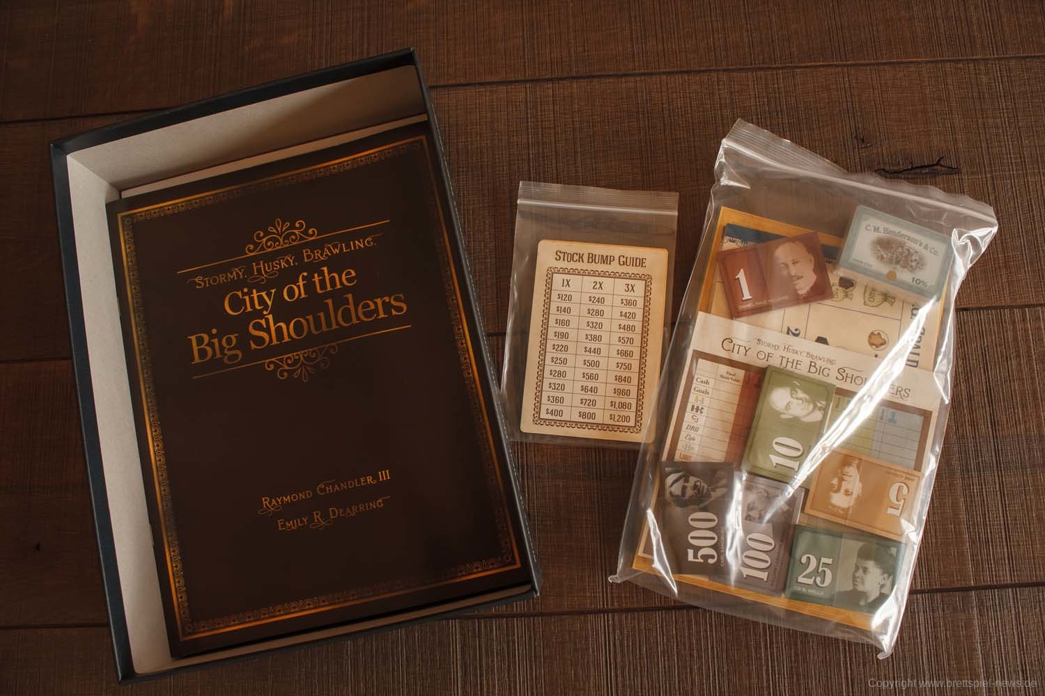 In City of the Big Shoulders übernehmen die Spieler die Rolle von Unternehmern und Investoren, die Chicago zu einer welttauglichen Stadt ausbauen wollen. In dieser einzigartigen Fusion von 18xx-er Aktienmanipulationsmechaniken mit Euro-Style-Gameplay gründen die Spieler Unternehmen, handeln mit Aktien, stellen Mitarbeiter ein, rüsten ihre Fabriken aus, produzieren Waren und verkaufen sie, um sie an Häuser im Mittleren Westen zu liefern.