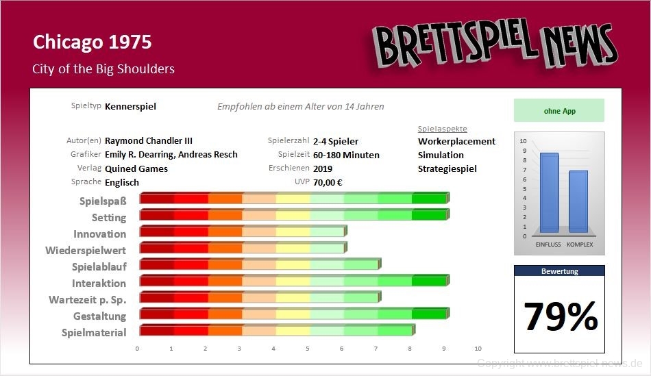 Nach dem großen Brand von Chicago im Jahre 1871 ist es an euch, in CHICAO 1875 die bis dato einflussreiche Metropole wieder auf die Beine zu bringen. Das Spiel konnte im Dezember 2018 bei KICKSTARTER unterstützt werden und steht nun auch bei QUINED GAMES im Retail zur Verfügung.