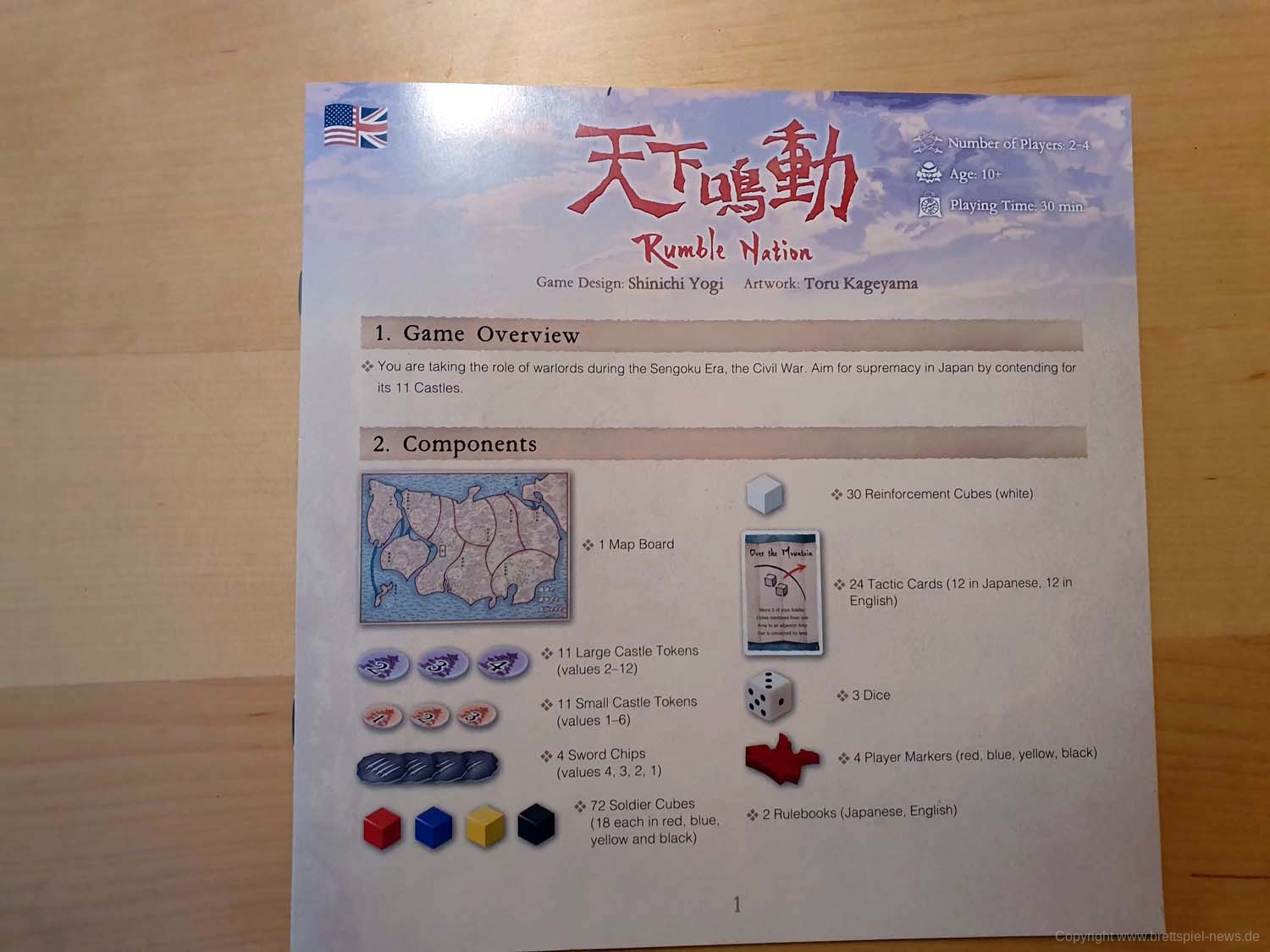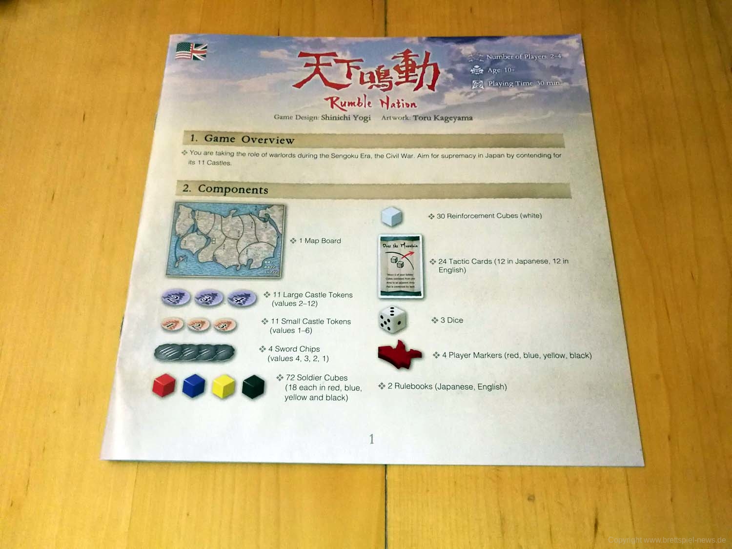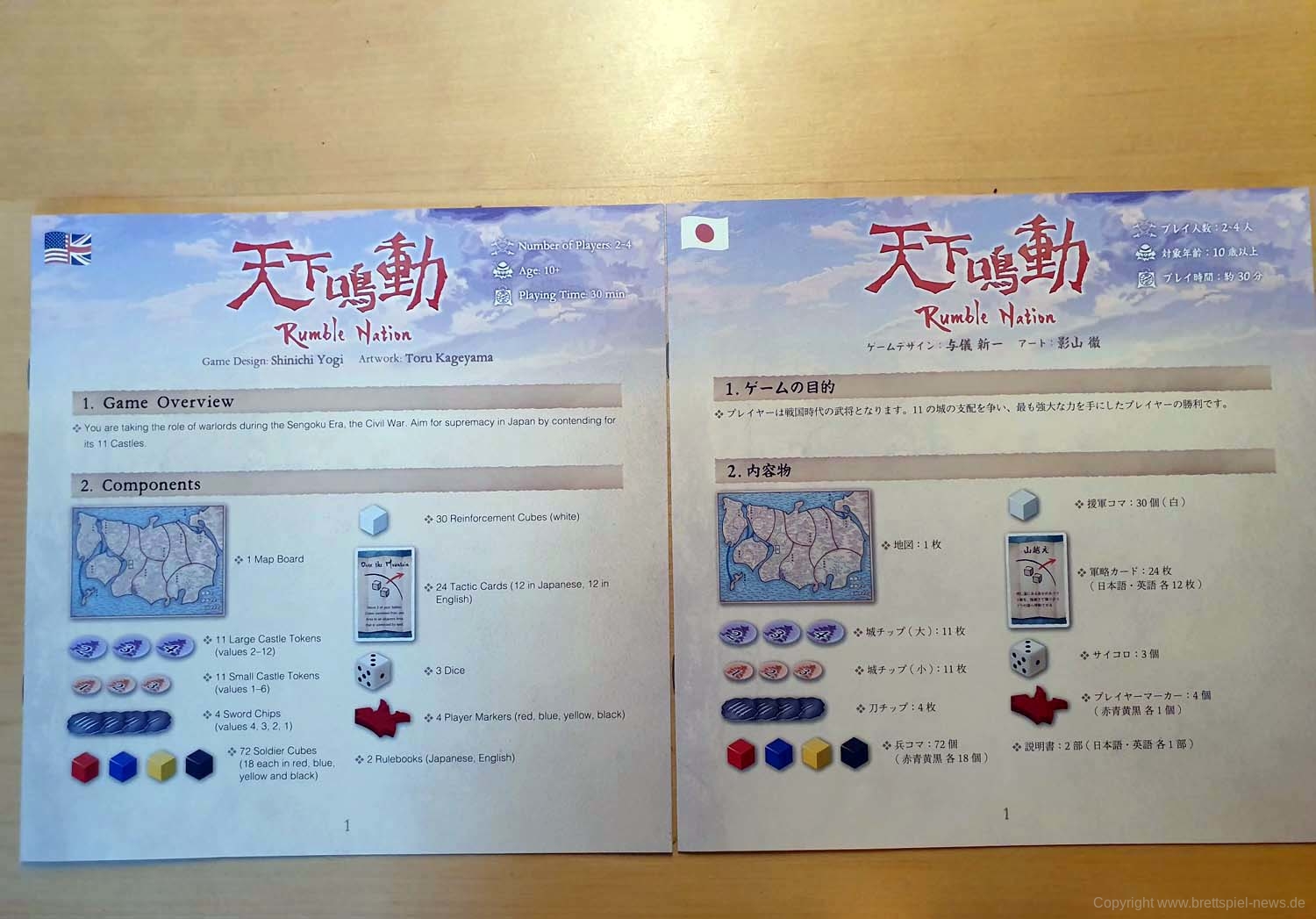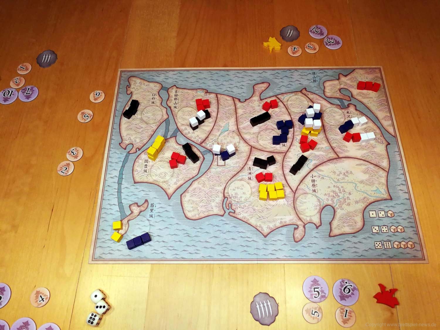 Rumble Nation - erstmals veröffentlicht als 天下鳴動 (Tenka Meidou) - ist ein Area Control Würfelspiel und der Gewinner der Tokyo Game Market Awards 2018 Grand Prize.