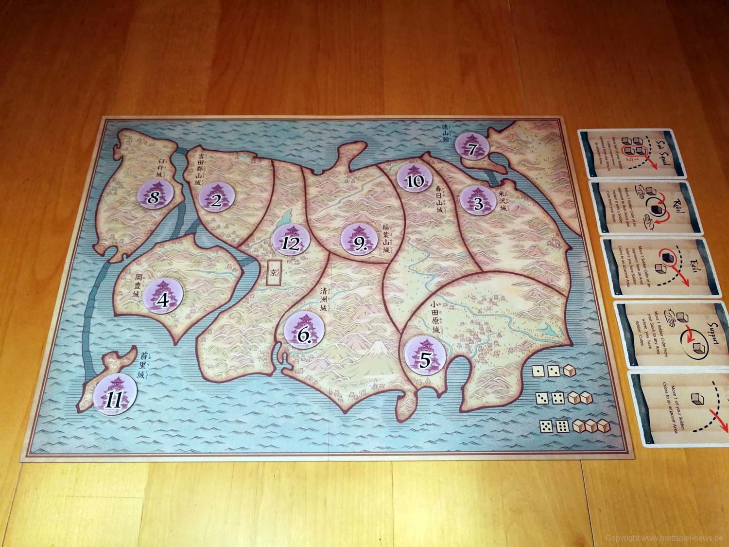 Ihr seid Kriegsherren während der Sengoku-Ära, des Bürgerkriegs. Strebe nach der Vorherrschaft in Japan, indem du dich um die 11 Burgen bewirbst.