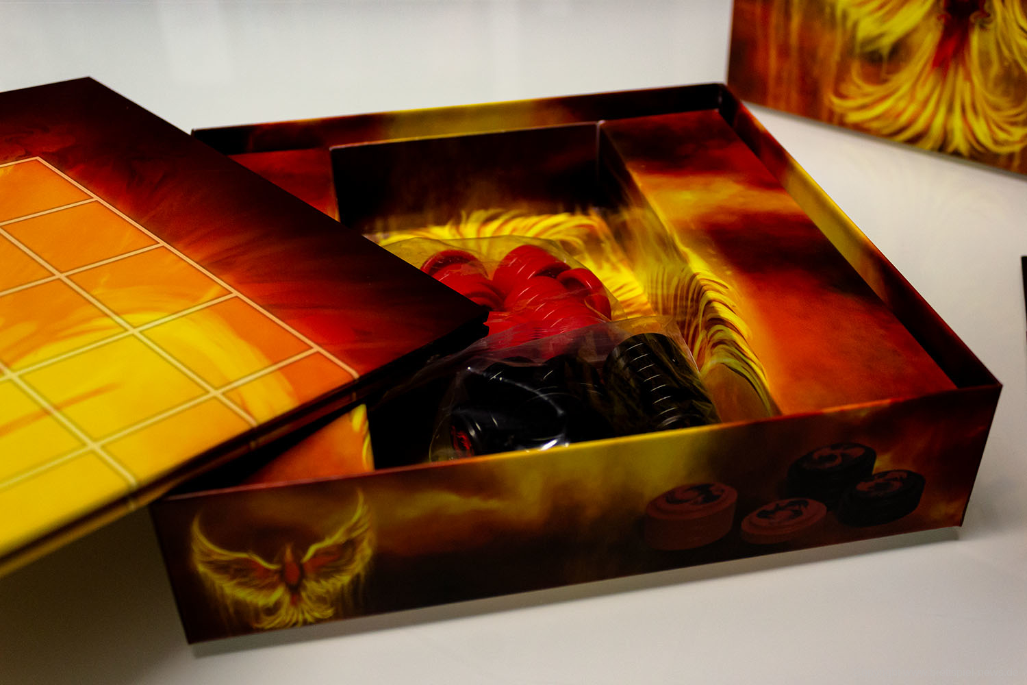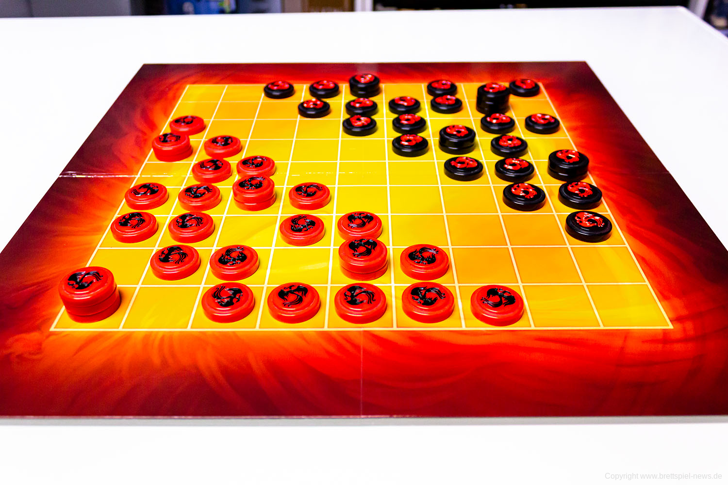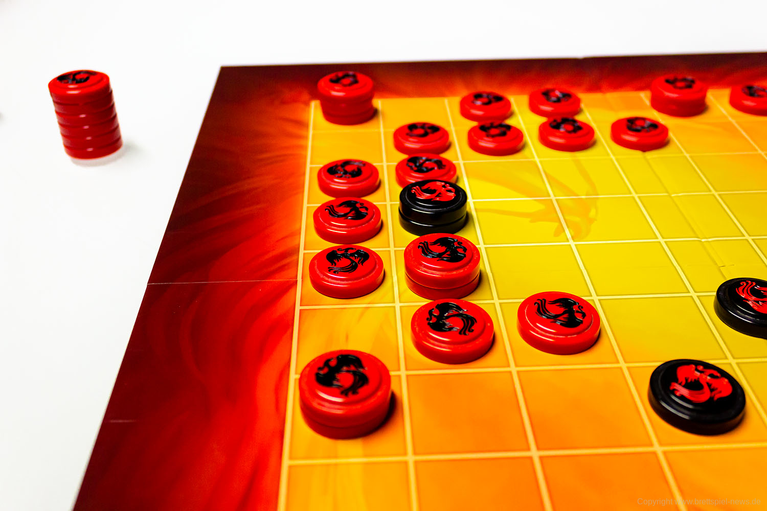 Mit Fenix hat HUCH! Ein Strategiespiel für 2 Spieler veröffentlicht. Die Spieldauer soll 20 Minuten betragen und das Spiel soll einen hohen Wiederspielwert aufweisen. Das Spielmaterial macht einen sehr guten Eindruck. Die einzelnen Spielsteine passen perfekt ineinander. Sie haben eine gute Haptik, und auch das Spielfeld ist sehr gut produziert.