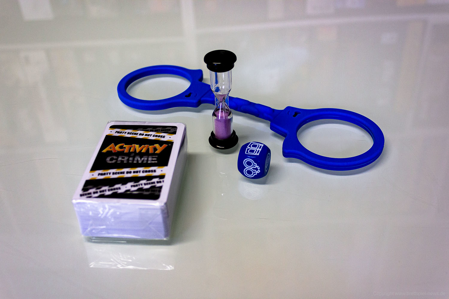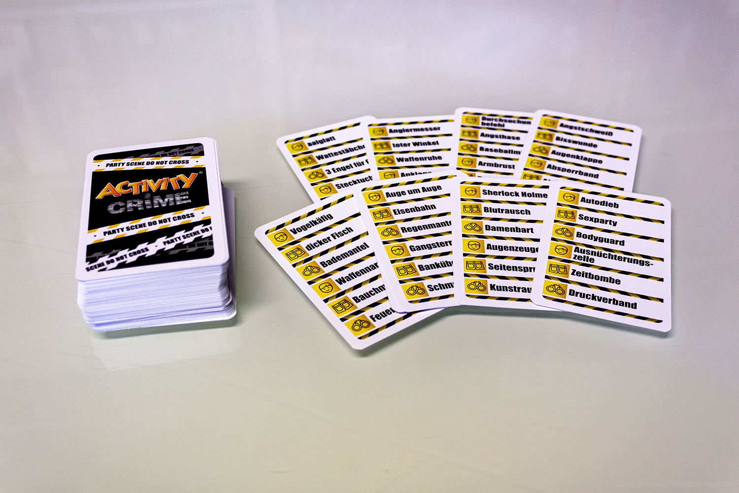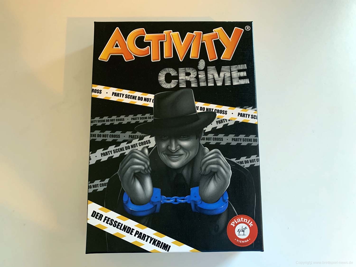 Das Prinzip von ACTIVITY ist bekannt und bewährt. Nun ist bei Piatnik die Version ACTIVITY CRIME erschienen, die sich für Spielgruppen von acht und mehr eignet. Das besondere an der Version ist, dass die MitspielerInnen die einen Begriff erklären müssen durch Handschellen sehr beschränkt und in ungewohnter Situation. Erklärt werden ausschließlich Begriffe die mit Kriminalität zu tun haben.