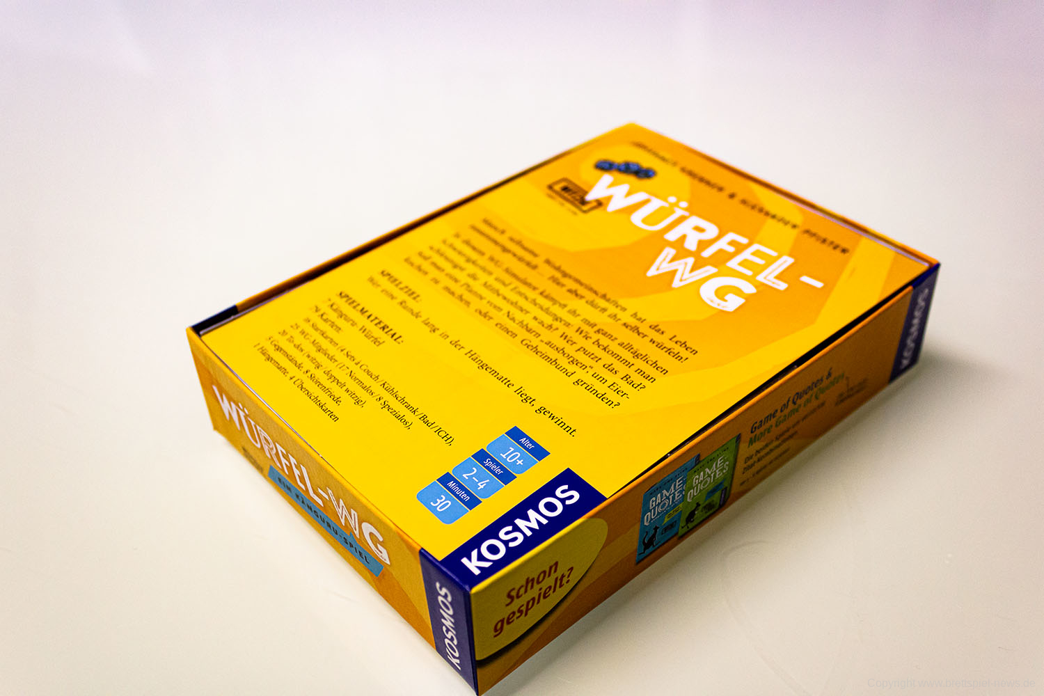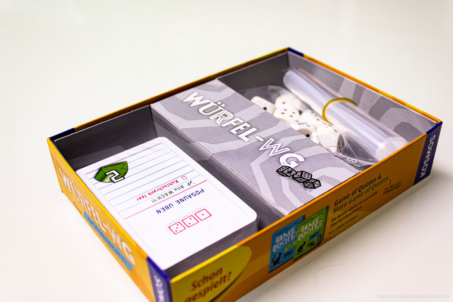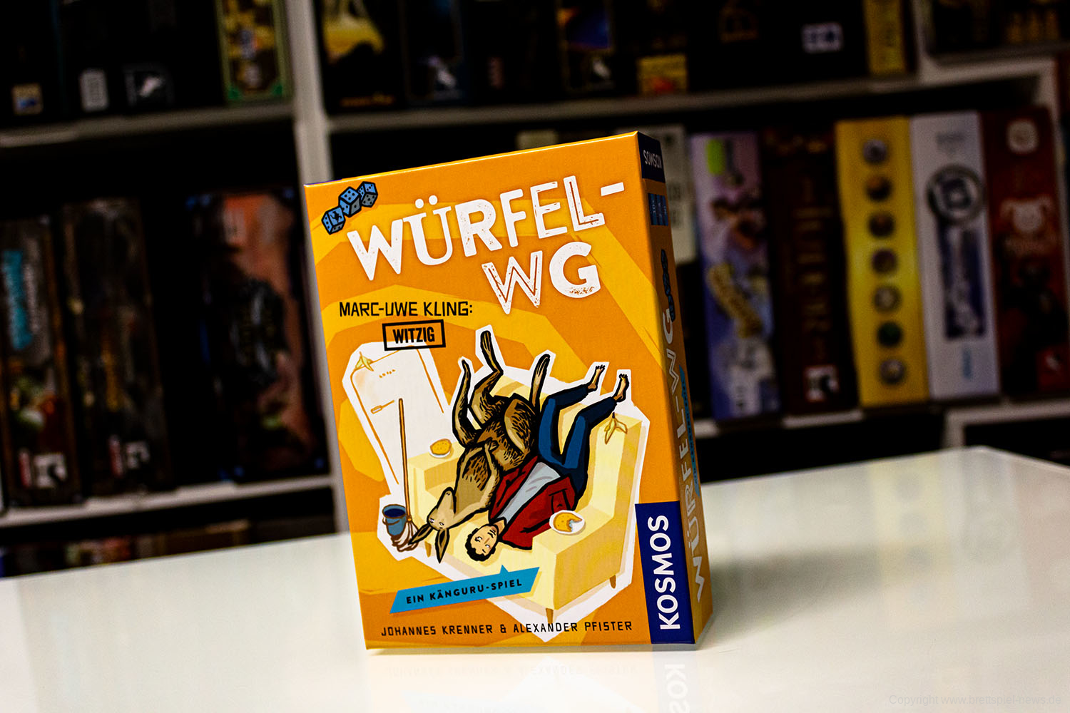 Die Autoren Johannes Krenner & Alexander Pfister haben ein Spiel erdacht, das im Känguru Universum platziert ist. Es trägt den Titel Würfel-WG und richtet sich an 2-4 SpielerInnen, die mindestens 10 Jahre alt sind. Das Spiel ist nun im Handel verfügbar.
