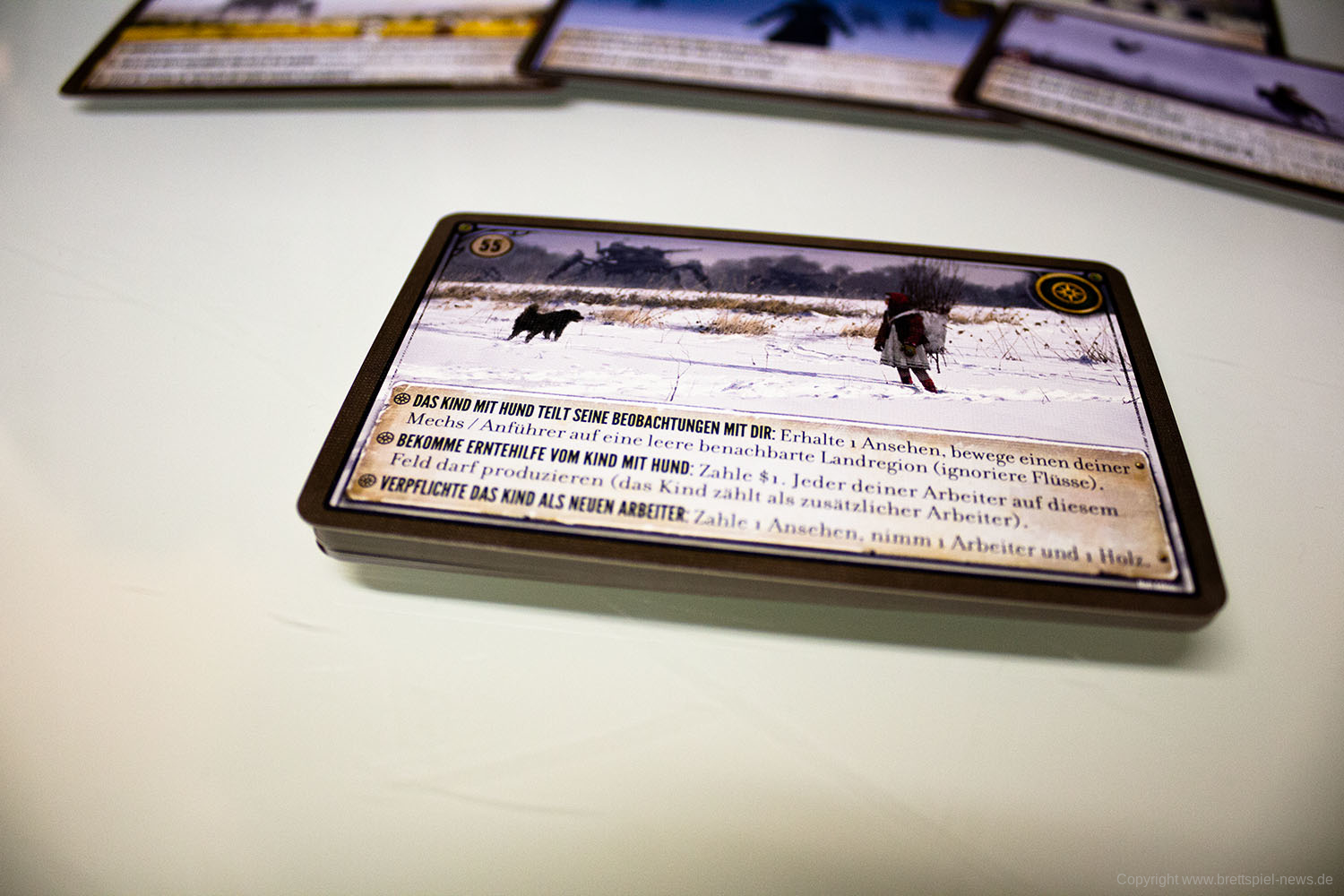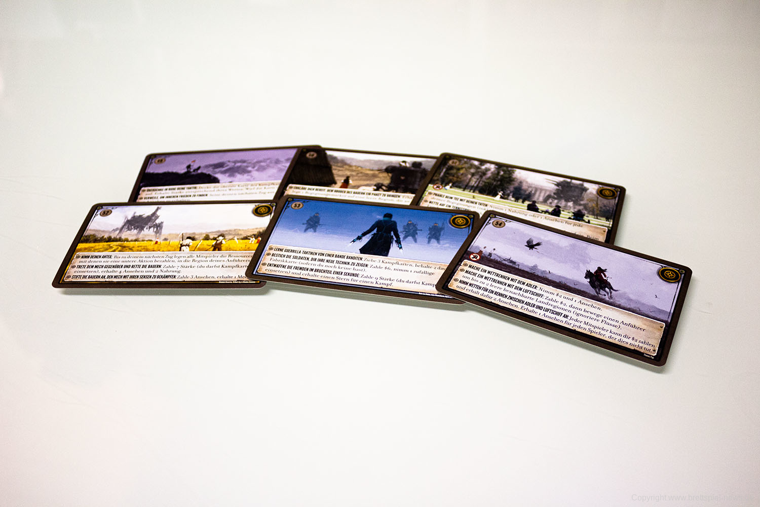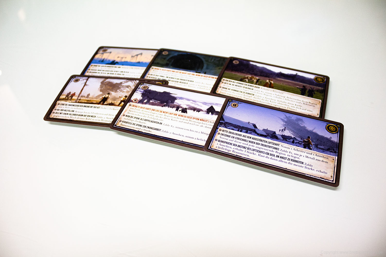 Die deutsche Version der Scythe Encounter-Karten ist als "Fan-Begegnungsbox" mittlerweile verfügbar. Die kleine Box hat 32 neue Begegnungs-Karten enthalten. Diese wurden zahlreich von Fans des Spiels eingereicht und 32 davon haben es nun in die Spielschachtel geschafft.