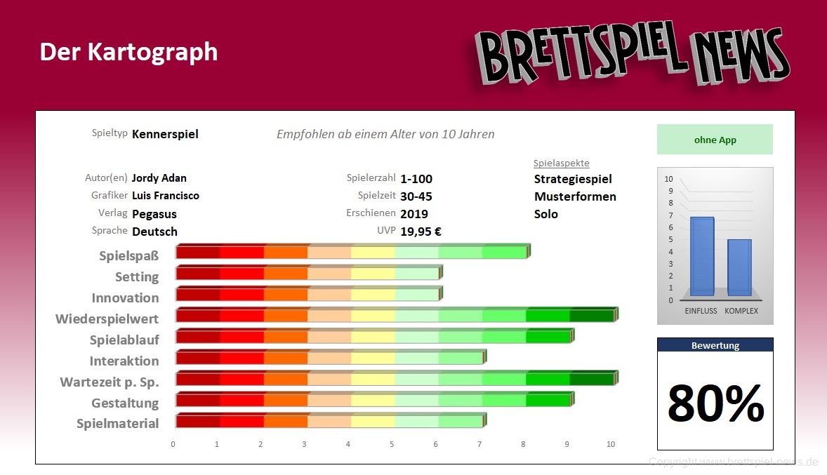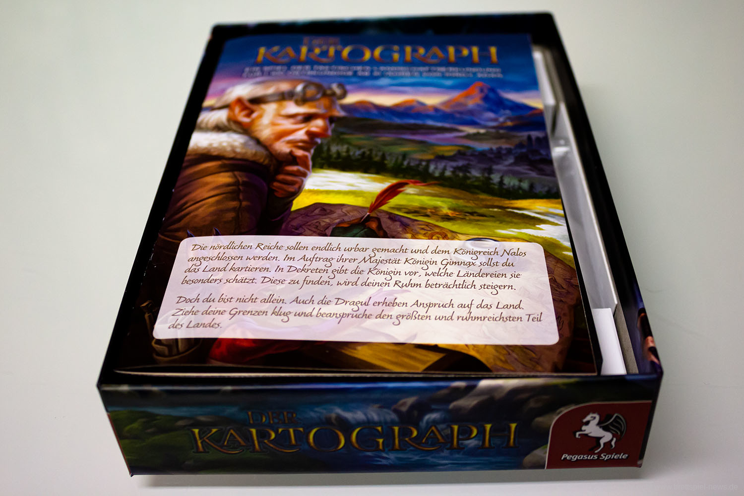 Die nördlichen Reiche sollen endlich urbar gemacht und dem Königreich Nalos angeschlossen werden. Im Auftrag ihrer Majestät Königin Gimnax sollen die Spieler das Land kartieren. Doch auch die Dragul erheben Anspruch darauf. Die Kartographen müssen kluge Grenzen ziehen, um sich zu behaupten und dabei die begehrtesten Ländereien entdecken. Der Kartograph ist ein Flip & Write-Spiel aus dem Roll Player-Universum. Bis zu 100 Spieler können hier darum konkurrieren, die besten Ländereien zu kartographieren. Schnell macht dabei ein clever eingezeichneter Dragul dem Mitspieler einen Strich durch die Rechnung.