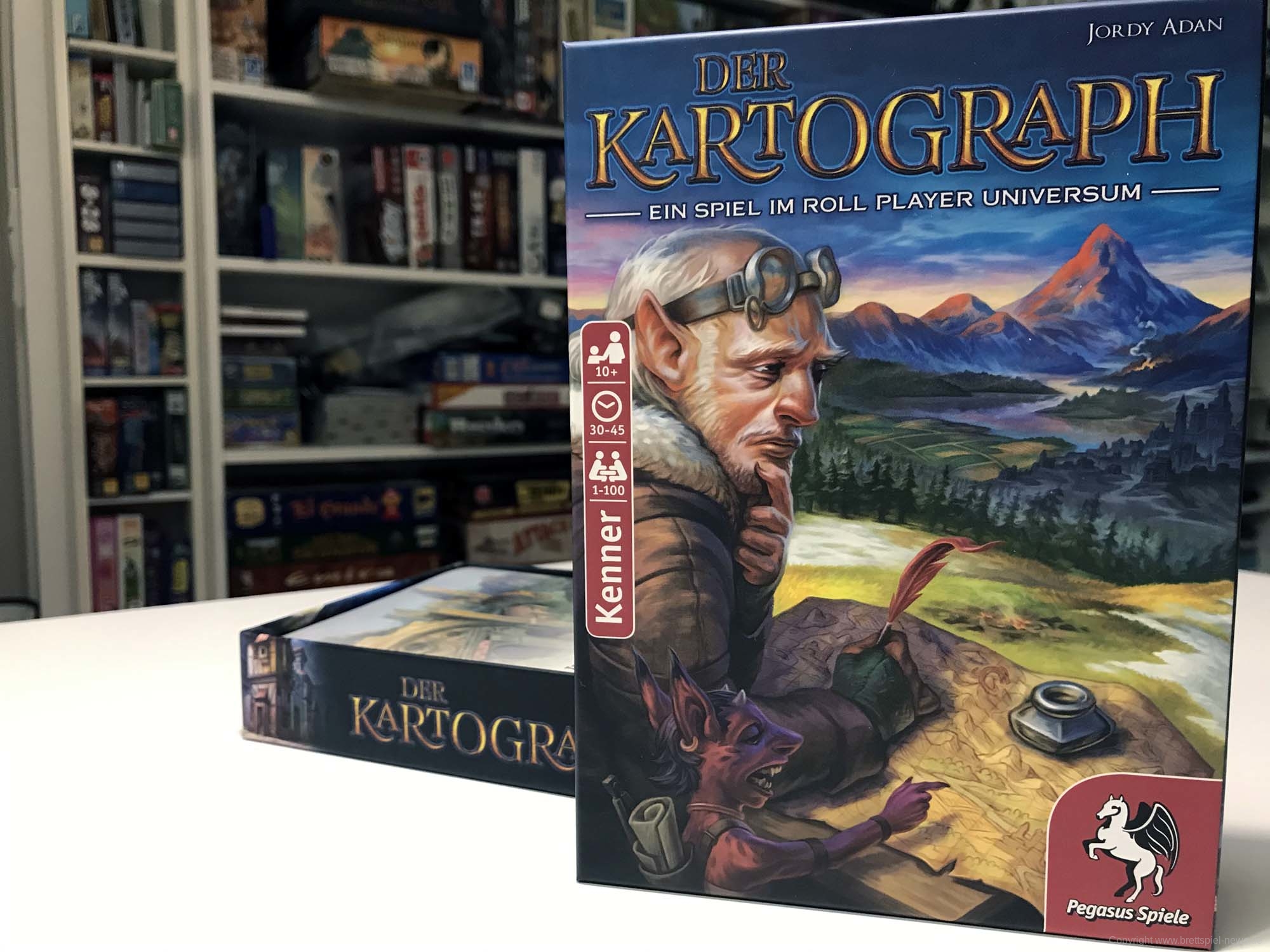 Pegasus Spiele hat die Neuheit Der Kartograph veröffentlicht und wir haben ein Exemplar vorliegen. Das Spiel richtet sich an 1-100 SpielerInnen ab 10 Jahren. Eine Partie dauert rund 30-45 Minuten. Der Kartograph ist in der Welt von Roll Player platziert.