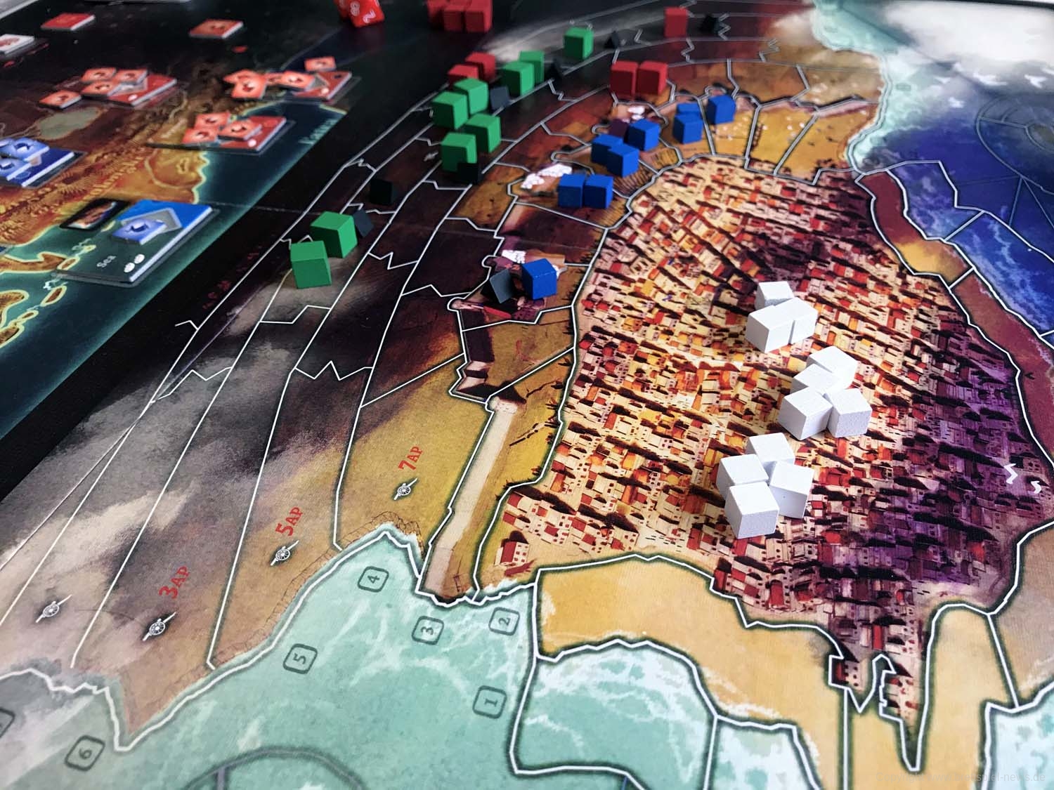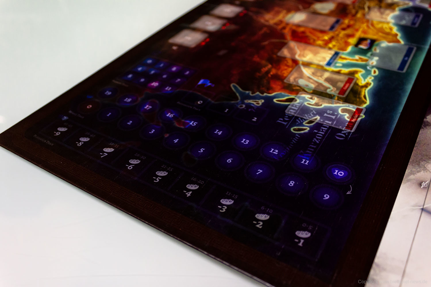 Die Verarbeitung ist gelungen und alles in einer ordentlichen Qualität produziert. Optional kann ein Solo-Modus dazugekauft werden. Die abgebildete Miniatur ist ein Kickstarter-Extra.