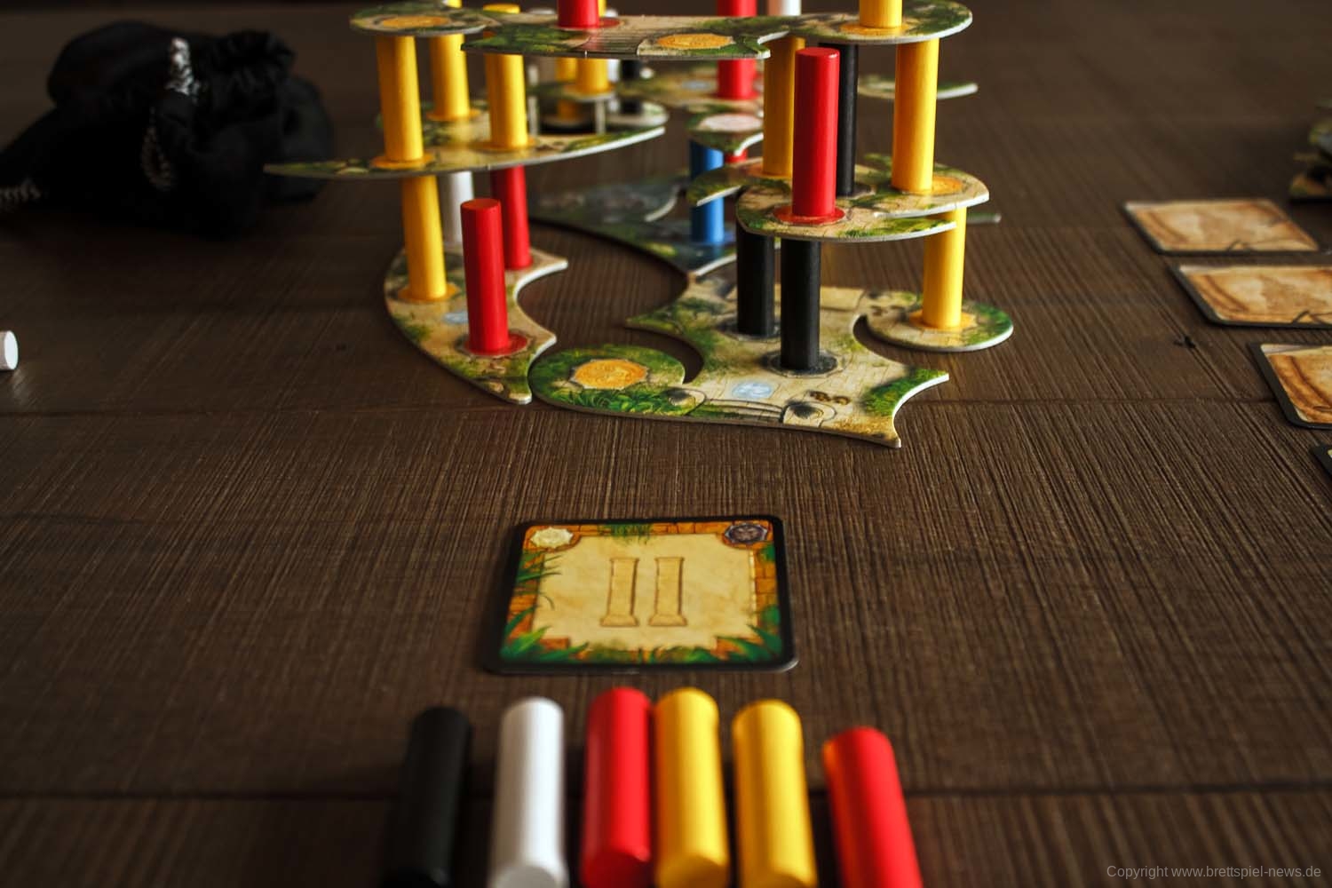 Als eingeschworenes Team errichten die Spieler aus Säulen und wundersam geformten Tempelböden ein spektakulär aufragendes, verwinkeltes Bauwerk.