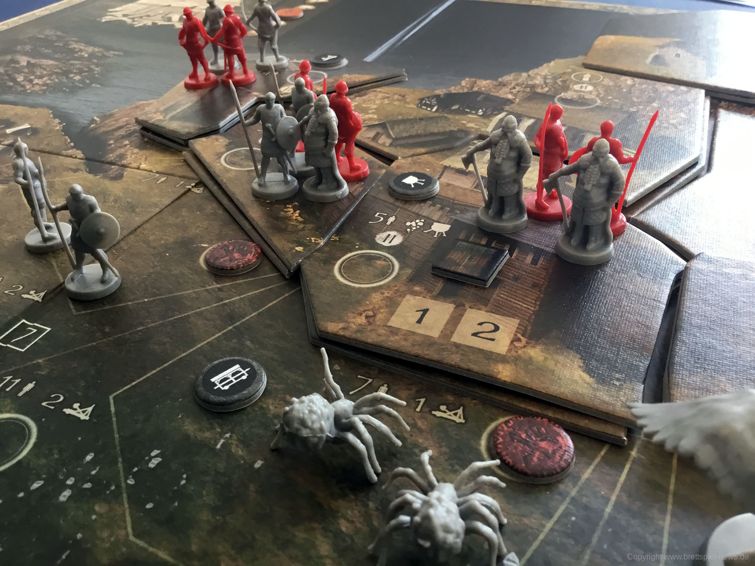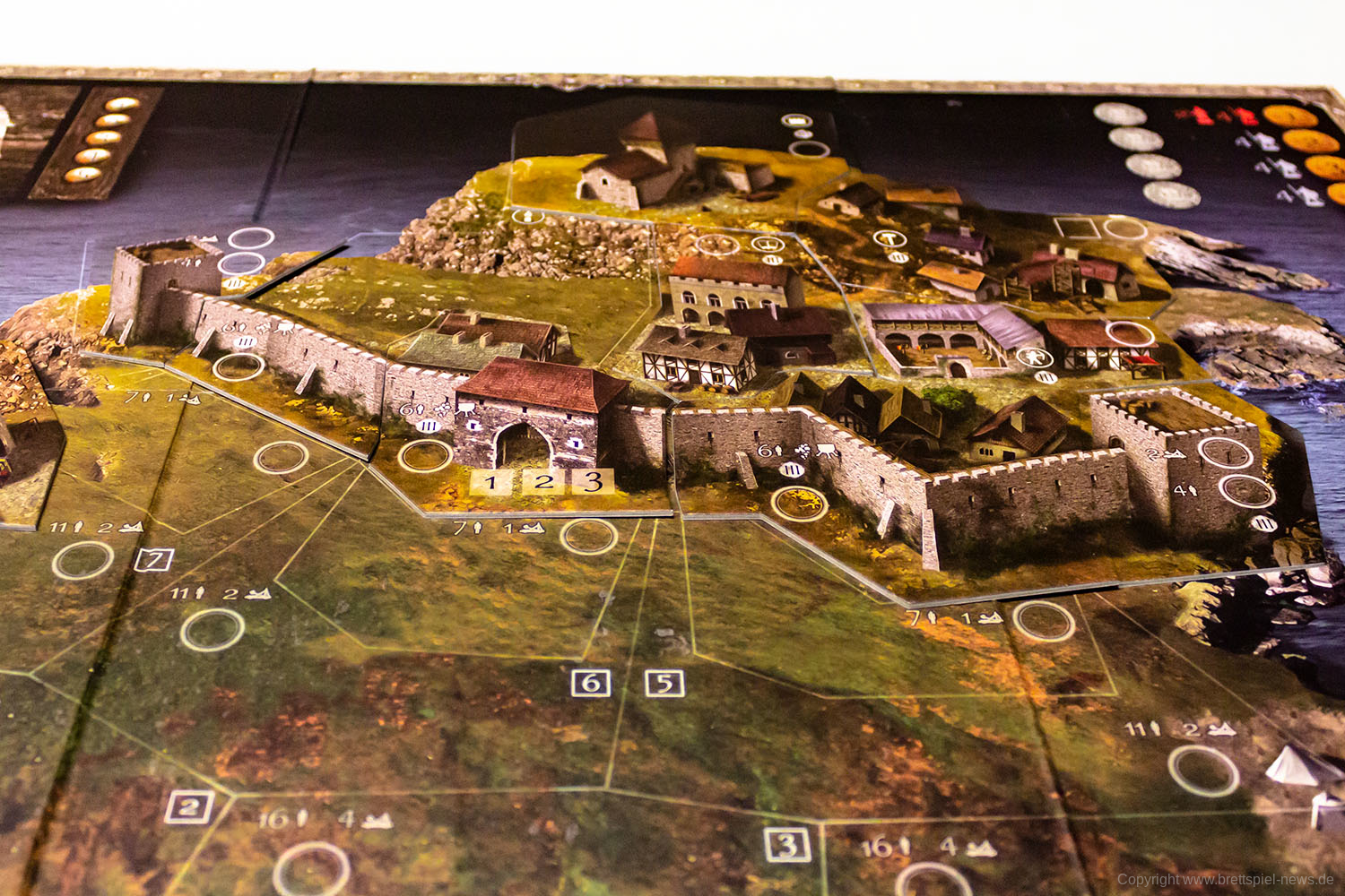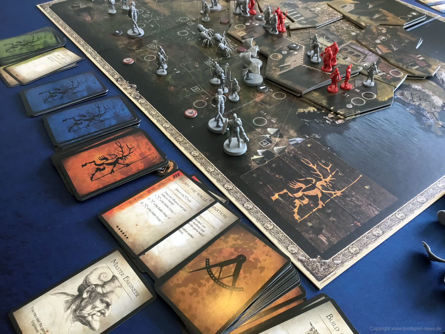 The Exiled: Siege hat schon ein paar Jahre auf dem Buckel. 2016 ist es erschienen. Es hat ein einzigartiges Setting, denn es ermöglicht Belagerungsschlachten in einem dunklen Fantasy-Mittelalter. Wir zeigen die teure Version des Spiels, die mit Miniaturen statt Holzmarkern ausgestattet ist. Es stammt vom Black Friday Sale bei Board & Dice und hat nur 10 € + Versand gekostet. Wir wollten das Spiel schon immer besprechen und werden das nun mittelfristig machen.