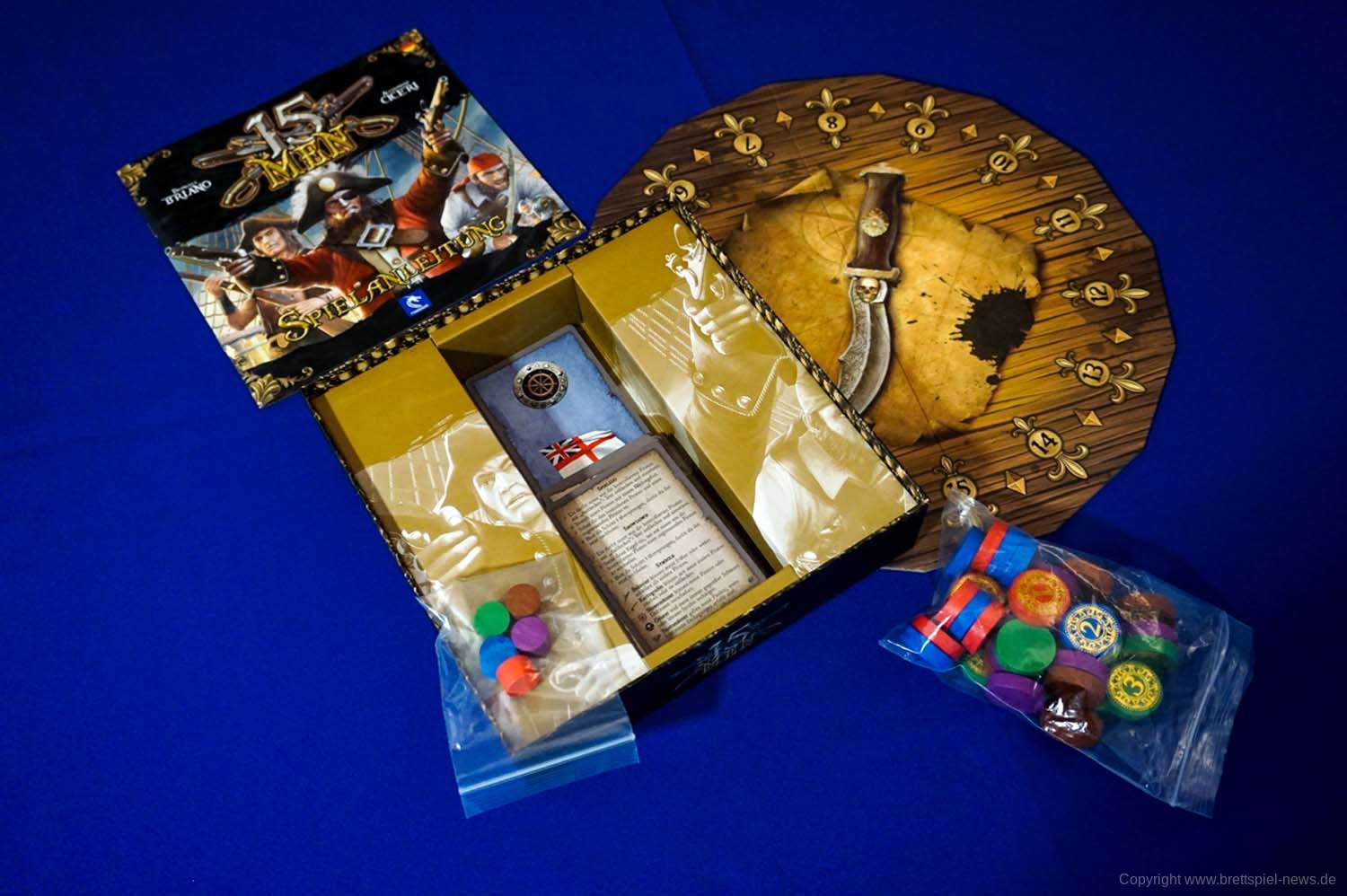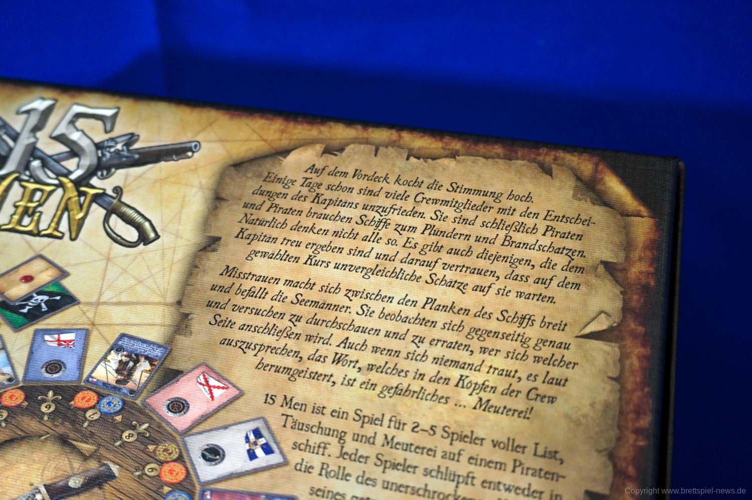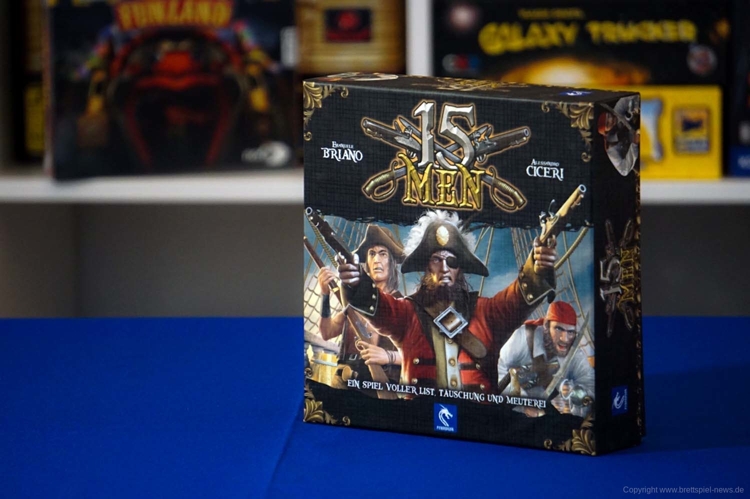 15 Men ist ein Spiel voller List, Täuschung und Meuterei auf einem Piratenschiff. Jeder Spieler schlüpft entweder in die Rolle des unerschrockenen Kapitäns, seines getreuen Loyalisten oder eines Halunken, der eine Meuterei plant. Bringt so viele Crewmitglieder auf eure Seite, wie ihr könnt. Bestecht sie mit Dublonen, um ihre einzigartigen Fähigkeiten für euch zu nutzen und eure Gegner zu übermannen, sobald die ersten Kugeln fliegen und der Showdown beginnt.