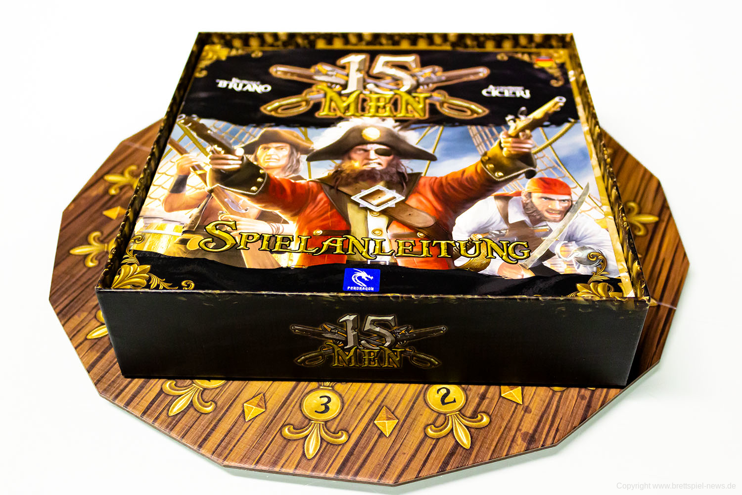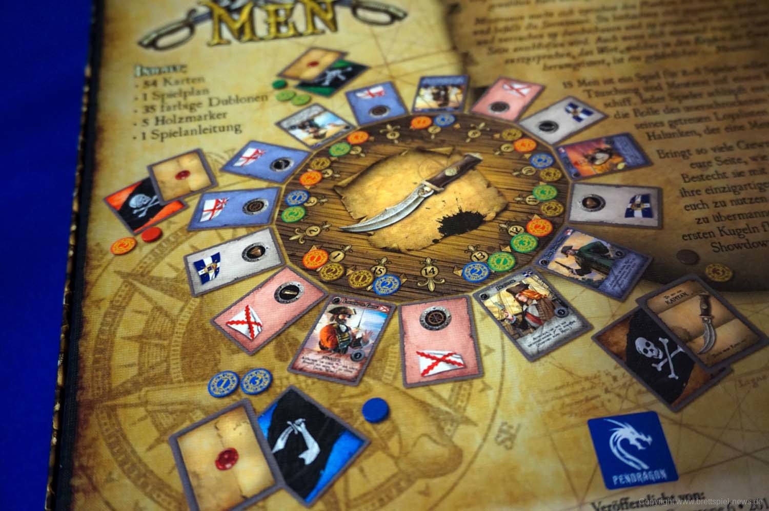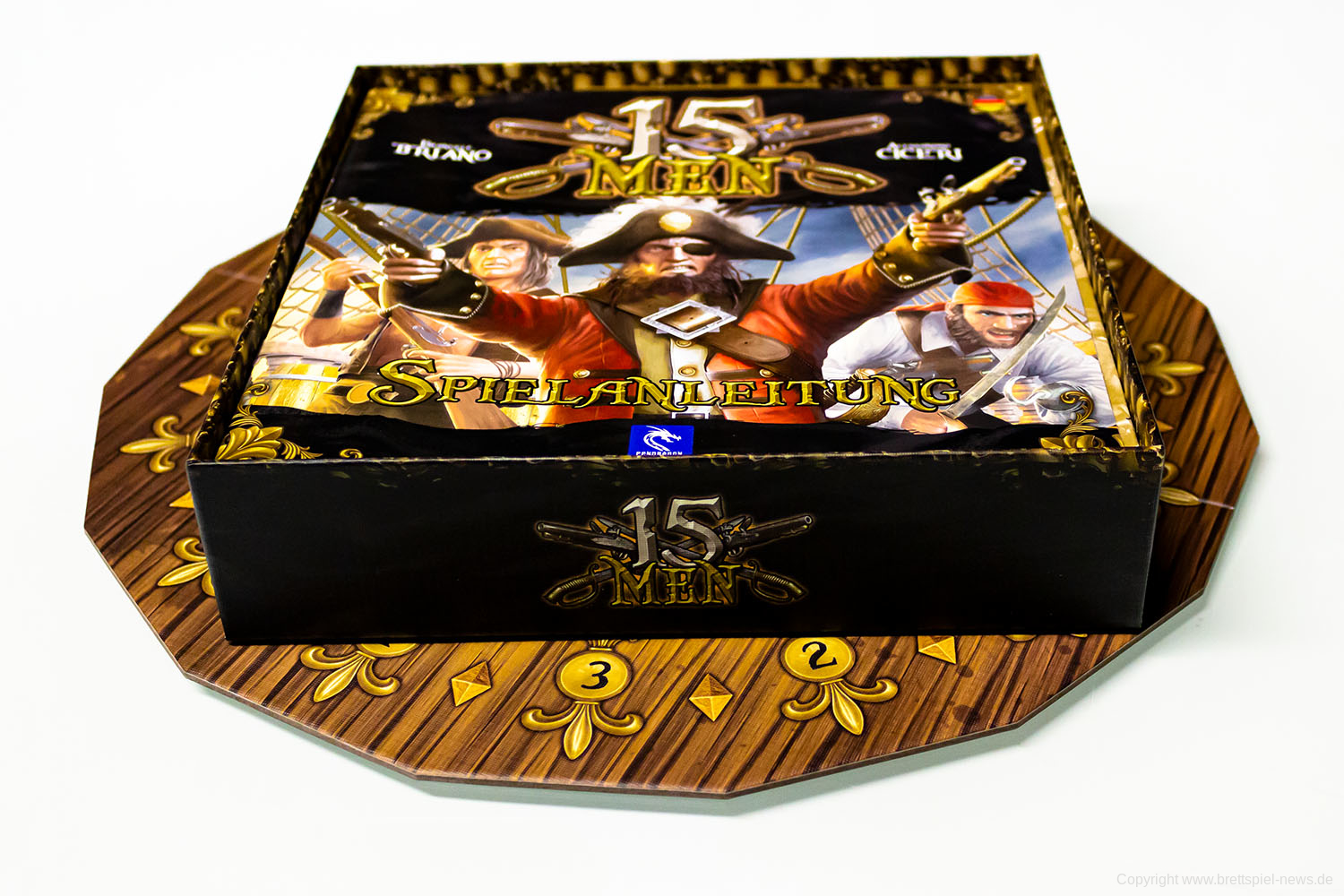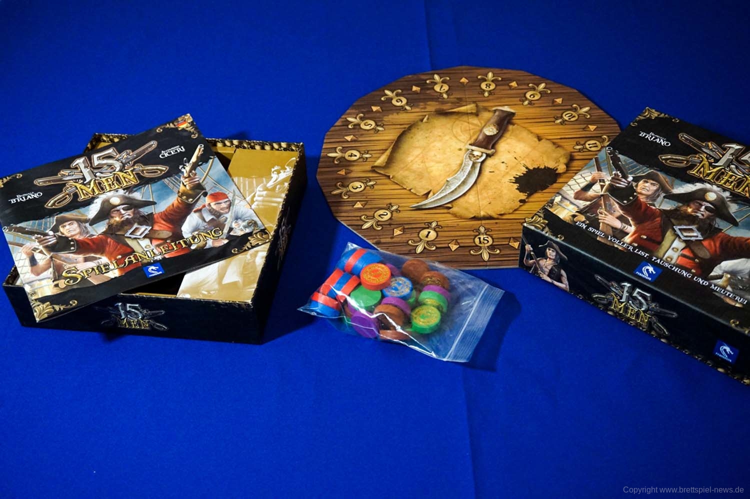 15 Men ist in Deutschland bei Asmodee Deutschland im Vertrieb. Das Spiel ist im Herbst erschienen und richtet sich an 2-5 SpielerInnen ab 10 Jahren. Eine Partie soll 45 Minuten Spielzeit bieten. 15 Men kostet rund 20 €.