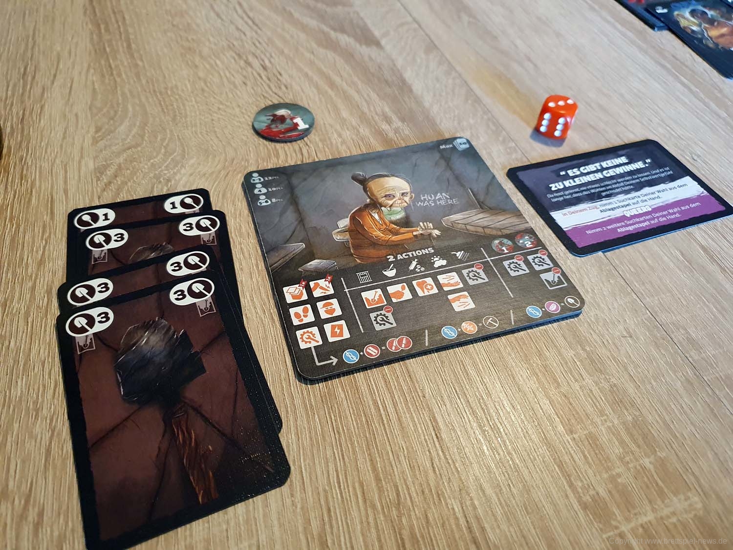 - Suchen: Er zieht die Anzahl der Suchkarten, die auf dem Platz, an dem er sich befindet, angegeben sind.