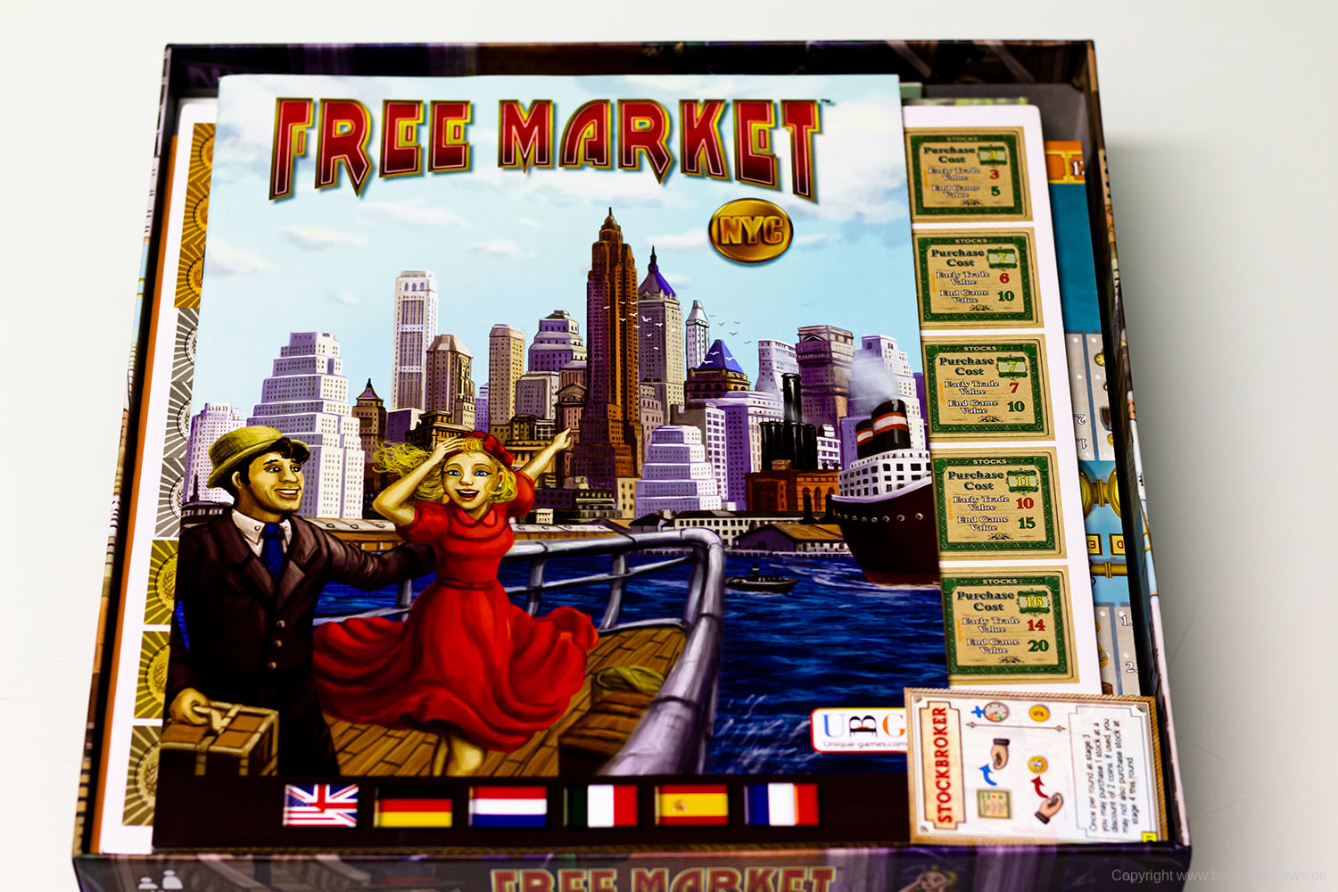 Im Herbst 2019 war Free Market: NYC erstmals zum Kauf in Essen auf der SPIEL'19 verfügbar. Das Spiel scheint, gemessen an der bescheidenen Anzahl von Bewertungen auf Boardgamegeek.com niemals im Handel angekommen zu sein. Trotzdem hört es sich spannend an, in dem was es verspricht. Es soll die Regeln des freien Marktes simulieren und den Spielern die Chance geben diesen nachzuempfinden.