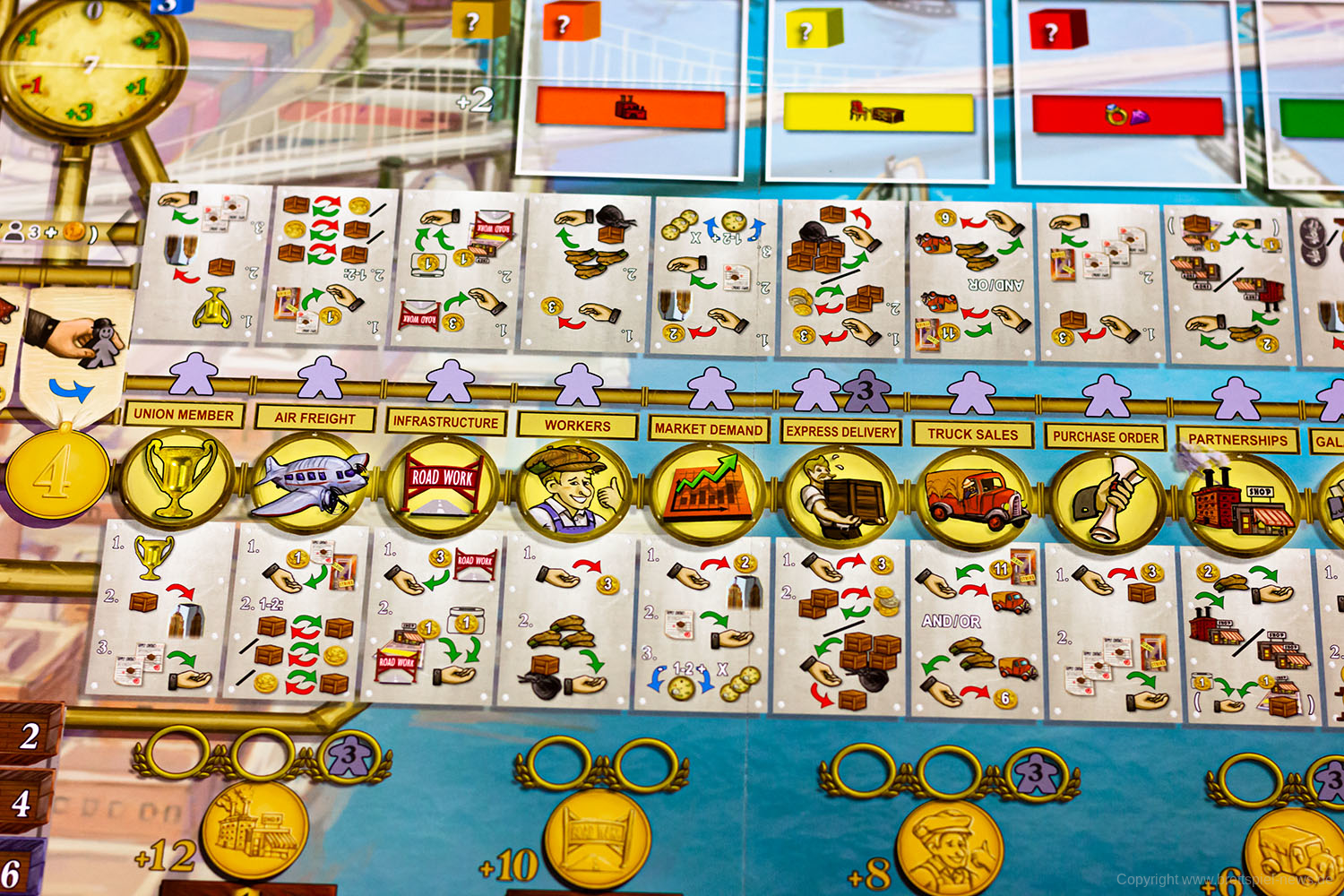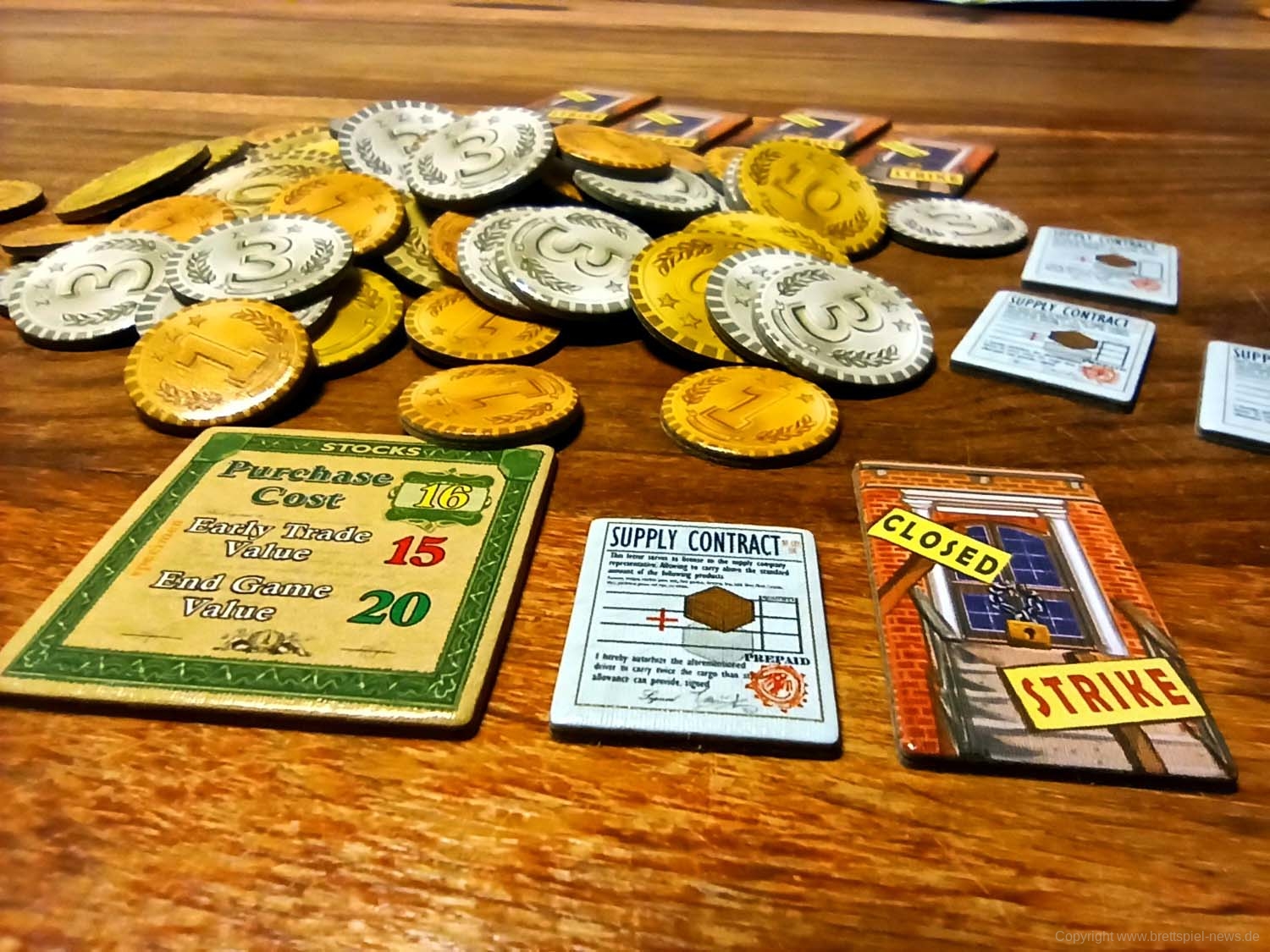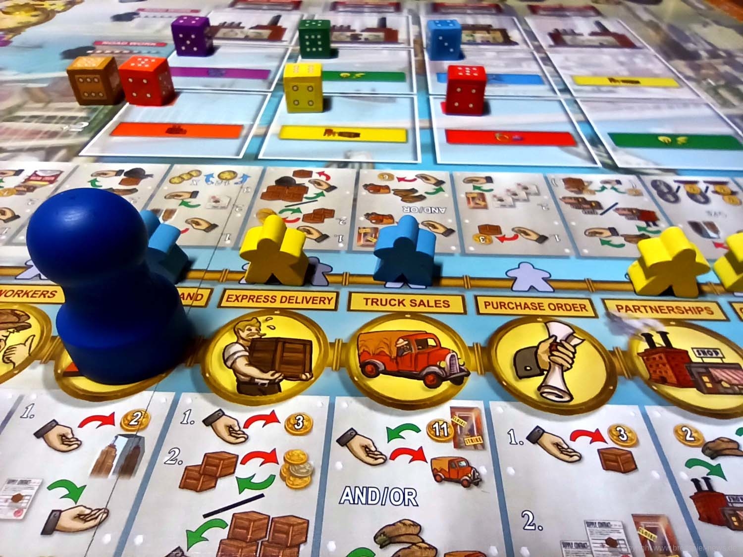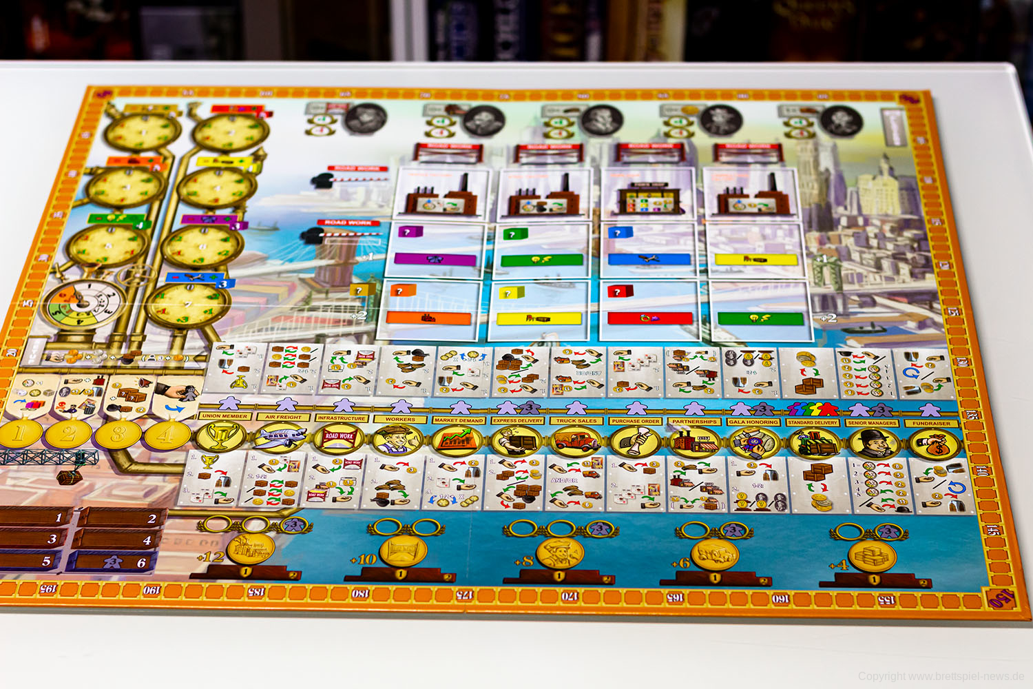 Während des gesamten Spiels werden Sie Waren bei der Auktion kaufen, Waren an Geschäfte und Fabriken liefern, Partnerschaften in Geschäften und Fabriken aufbauen oder möglicherweise das Geschäft und Kapital anderer Spieler übernehmen.
