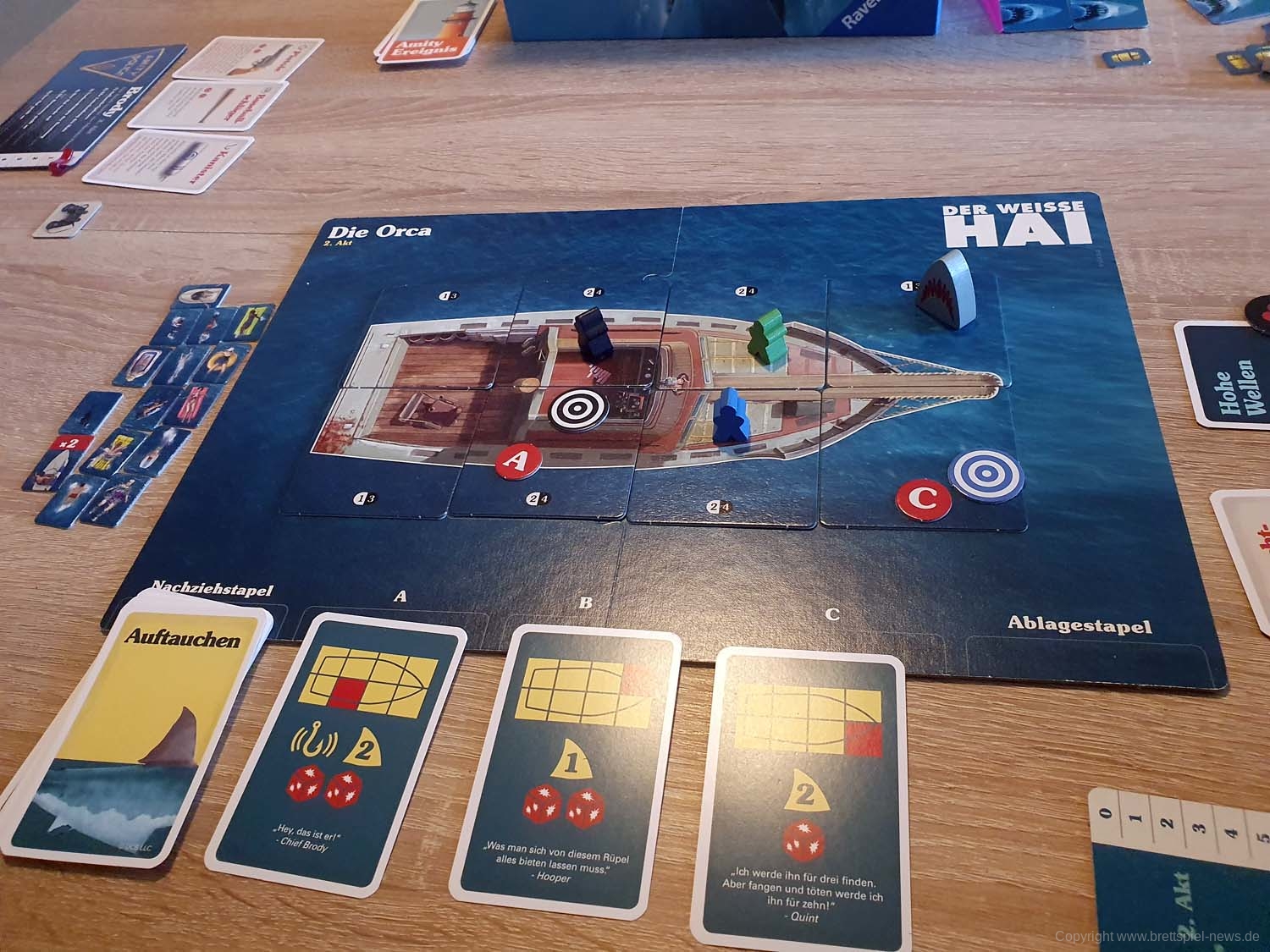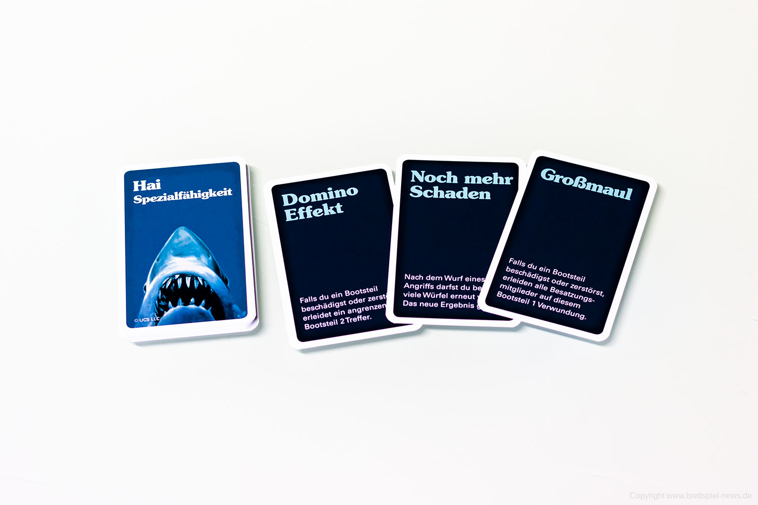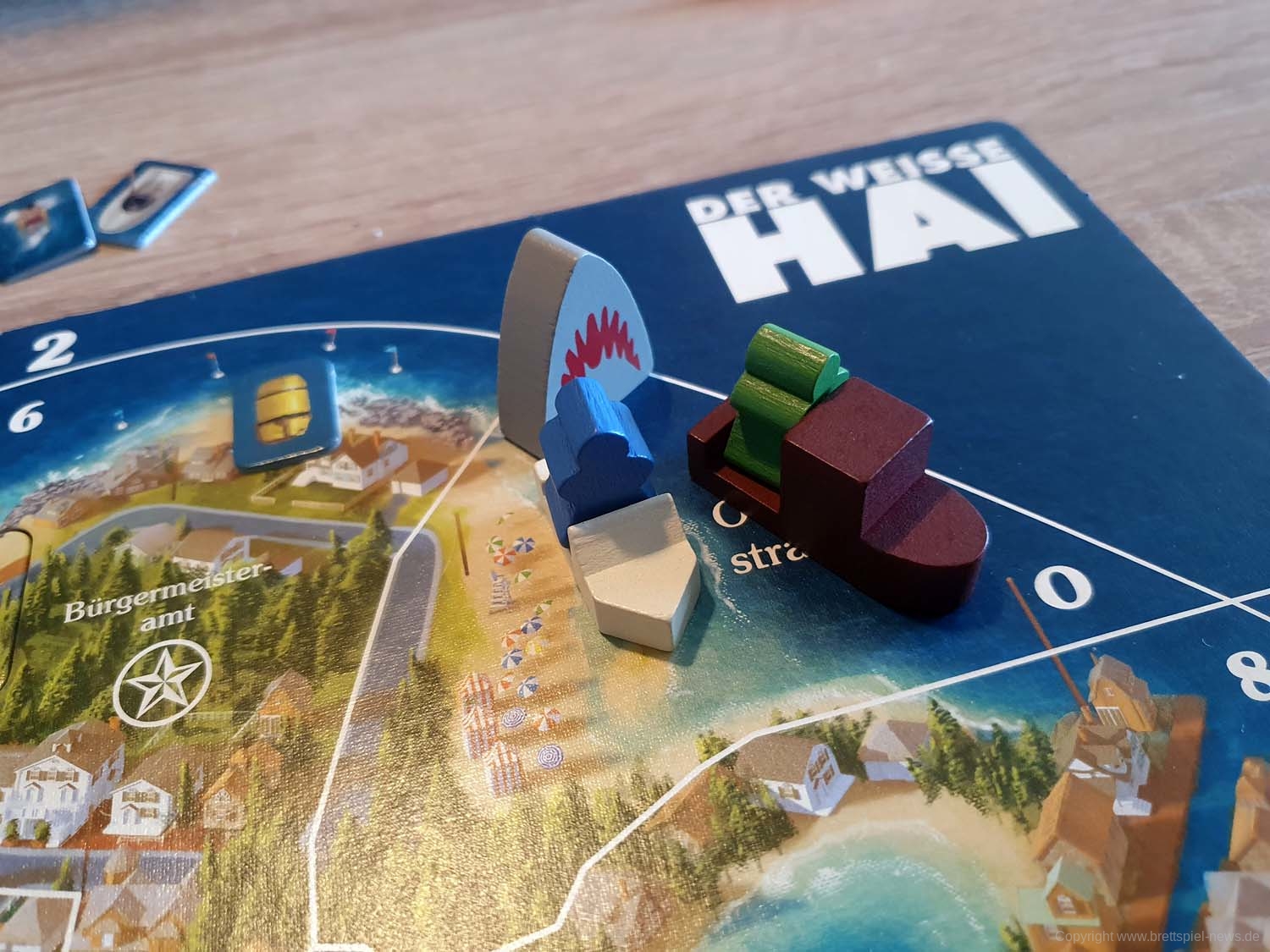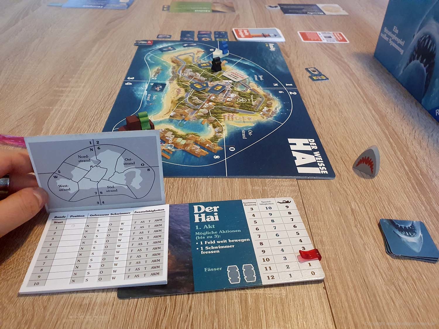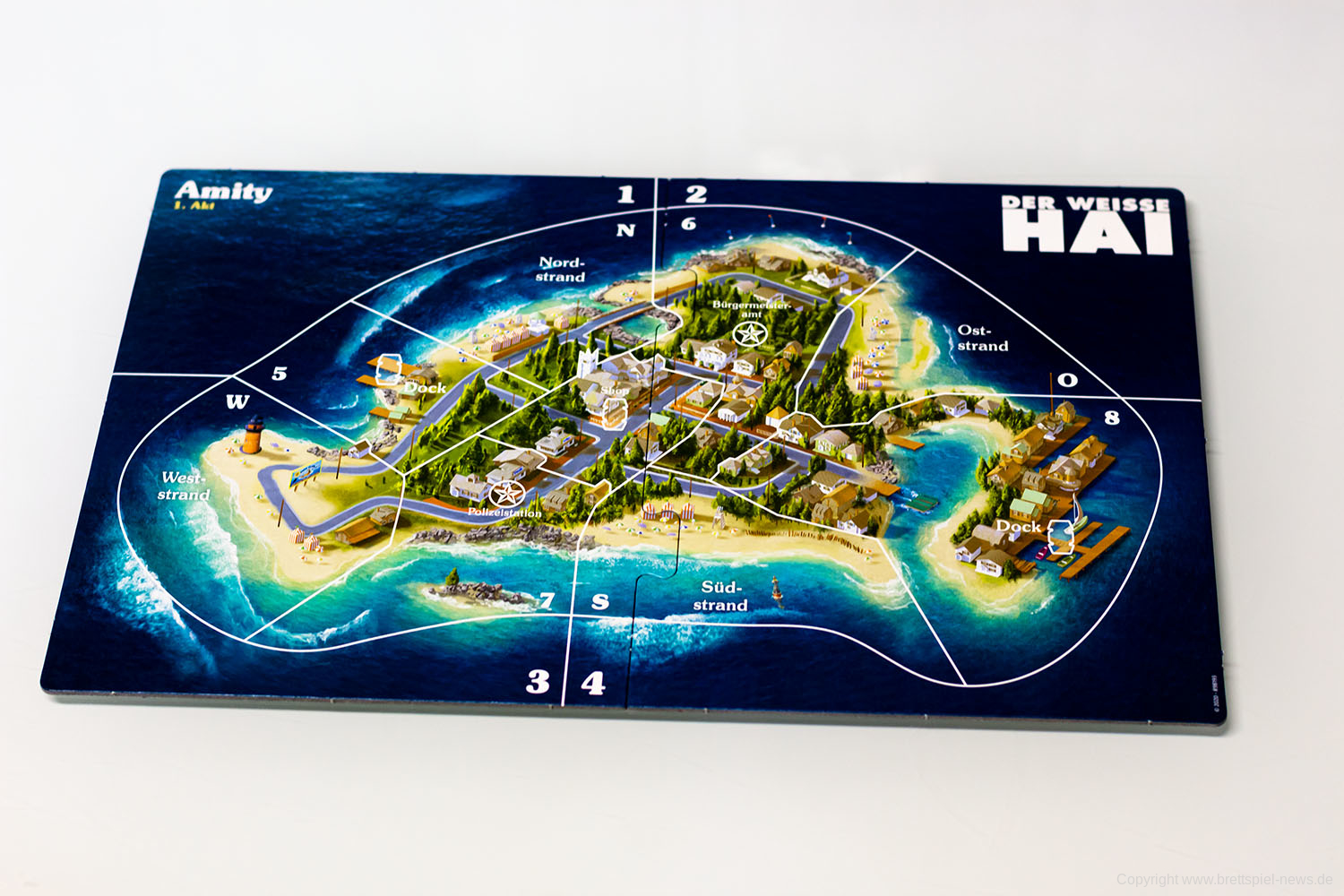 Wir haben vorab ein Exemplar der Ravensburger Neuheit DER WEIßE HAI erhalten und gleich ein paar Bilder vom Spielmaterial gemacht. In dem Spiel übernimmt ein Spieler die Rolle der Haie und versucht gegen bis zu drei Spieler zu gewinnen. Das Spiel war in der USA bereits 2019 erschienen und landet als Neuheit nun im März 2020 auch im deutschen Handel. DER WEIßE HAI richtet sich an 2-4 Spieler ab 12 Jahren. Es wird einen UVP von 39,99 € aufweisen. Hier lässt es sich mit 20% Rabatt vorbestellen. Wir werden das Spiel demnächst im Test detailliert vorstellen.