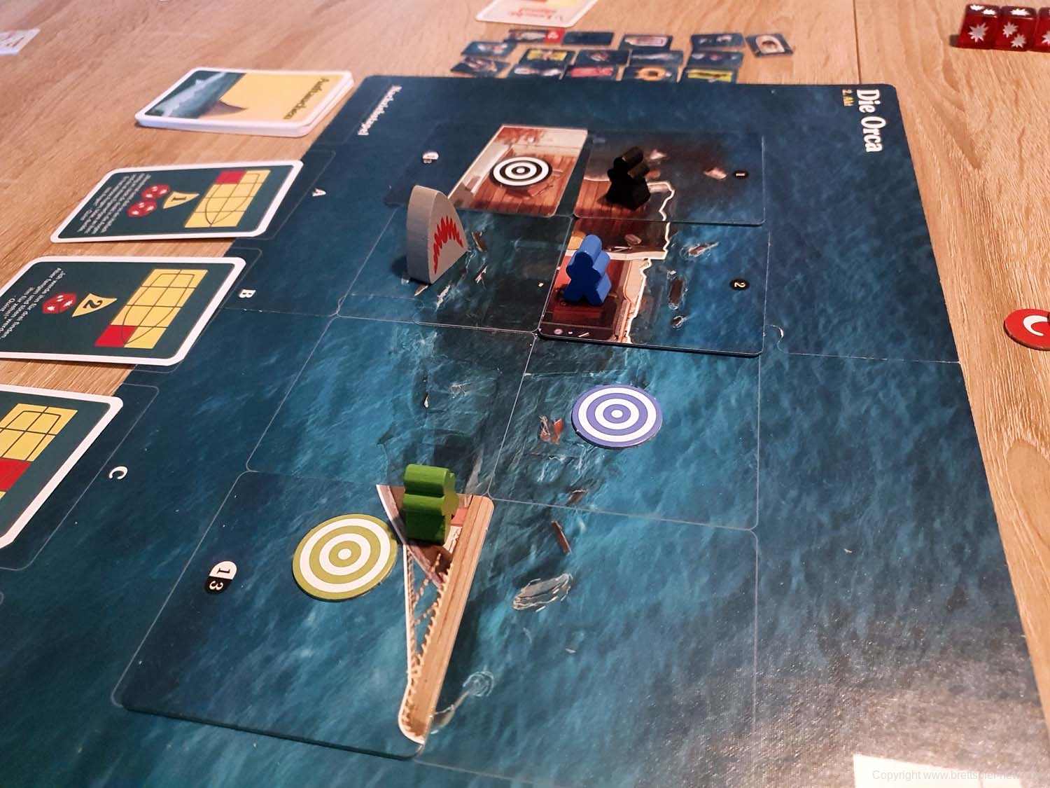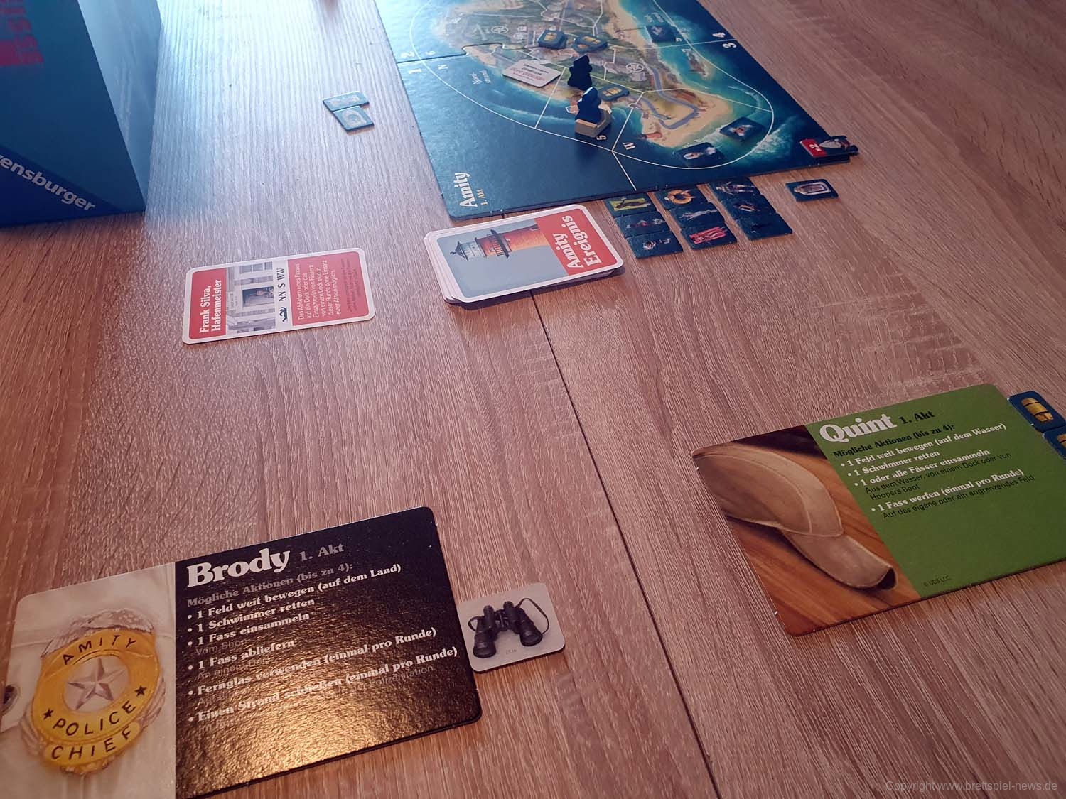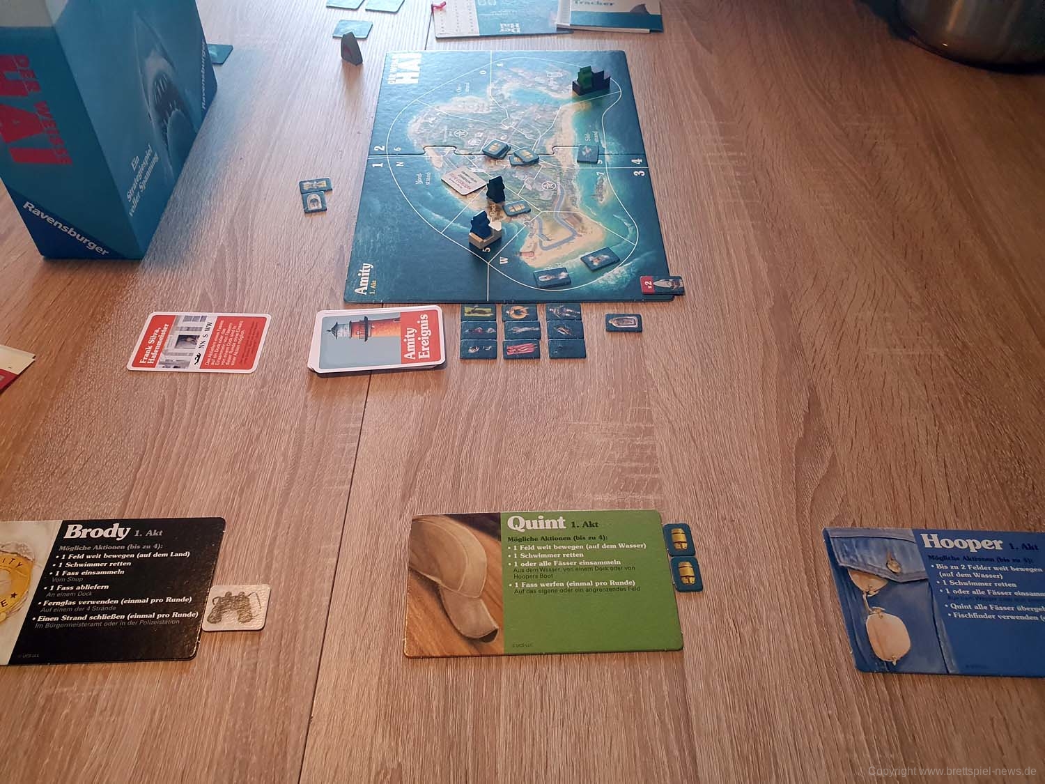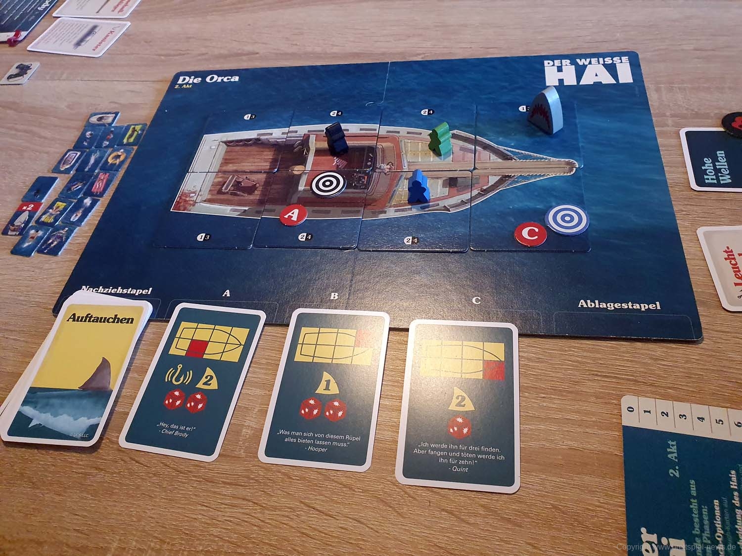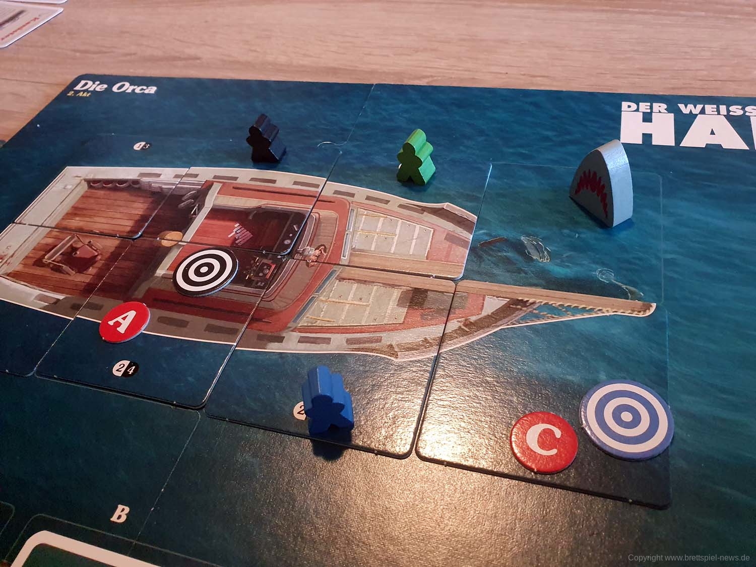 Wir haben vorab ein Exemplar der Ravensburger Neuheit DER WEIßE HAI erhalten und gleich ein paar Bilder vom Spielmaterial gemacht. In dem Spiel übernimmt ein Spieler die Rolle der Haie und versucht gegen bis zu drei Spieler zu gewinnen. Das Spiel war in der USA bereits 2019 erschienen und landet als Neuheit nun im März 2020 auch im deutschen Handel. DER WEIßE HAI richtet sich an 2-4 Spieler ab 12 Jahren. Es wird einen UVP von 39,99 € aufweisen. Hier lässt es sich mit 20% Rabatt vorbestellen. Wir werden das Spiel demnächst im Test detailliert vorstellen.