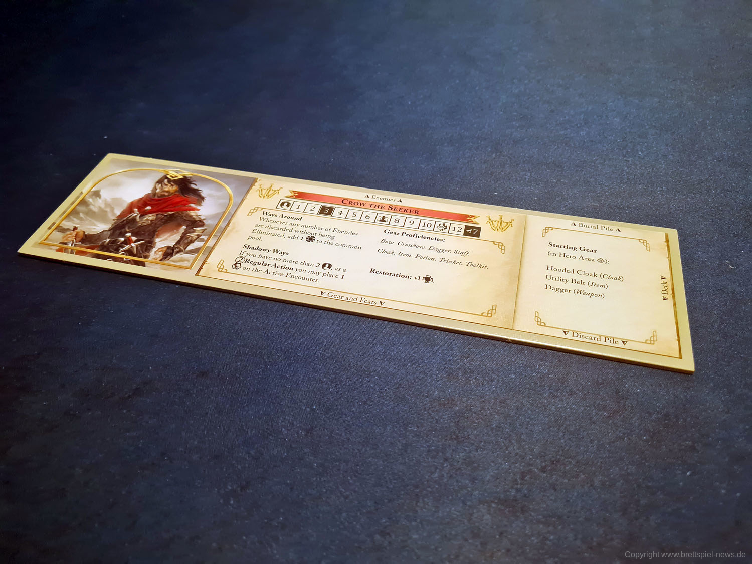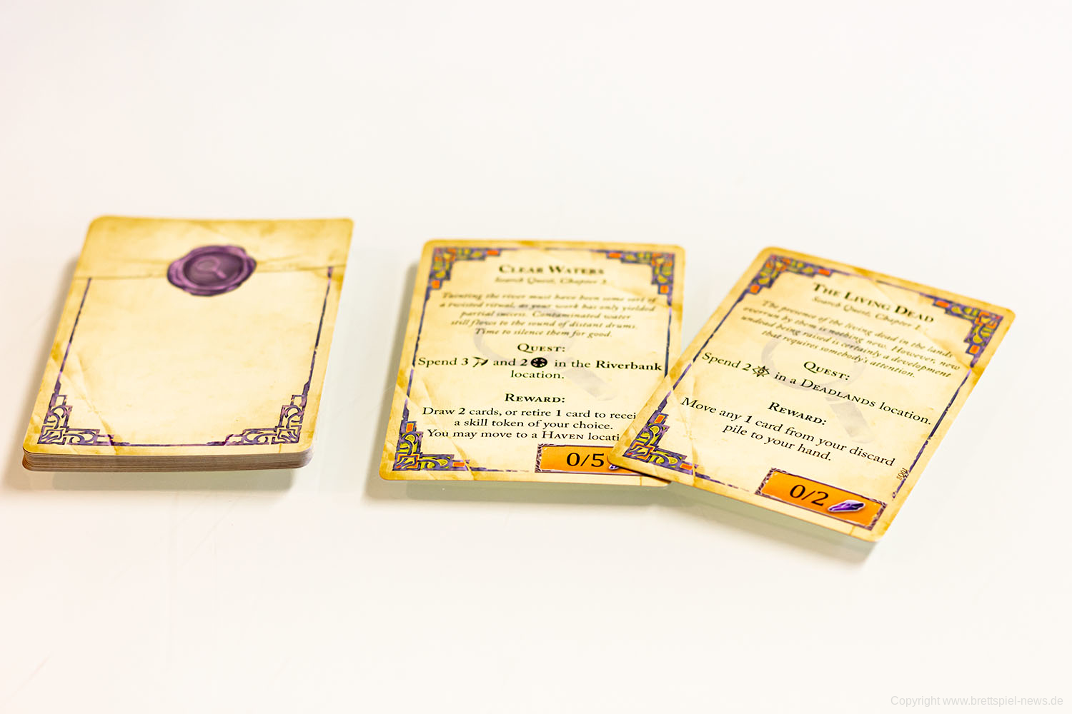 Beginnen Sie mit zwei einzigartigen Quests und einem kleinen Deck und verbessern Sie Ihren Charakter, indem Sie neue Fähigkeitskarten, Gegenstände und Verbündete gewinnen. Schalten Sie den stärkeren Effekt jeder Karte frei, indem Sie Fertigkeitsmarken verwenden oder Ihren Charakter so einsetzen, dass er immer weiter auf Ihrem Weg zur Legende voranschreitet. Stellen Sie sich skrupellosen Feinden und ernten Sie die Früchte Ihrer Siege. Erforschen und bauen Sie die Welt, indem Sie jedes Mal, wenn Sie spielen, eine neue Karte erstellen und die besonderen Fähigkeiten von Orten zu Ihrem Vorteil nutzen. Verwalten Sie Ihr Deck, indem Sie Karten in Ihre persönliche Chronik aufnehmen, wo sie am Ende des Spiels mehr Ruhm erlangen.