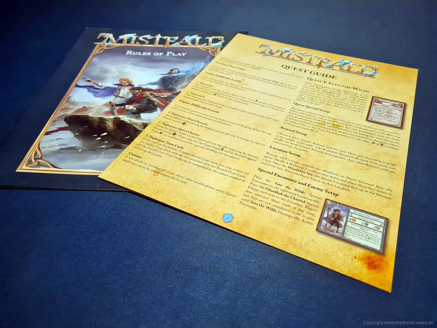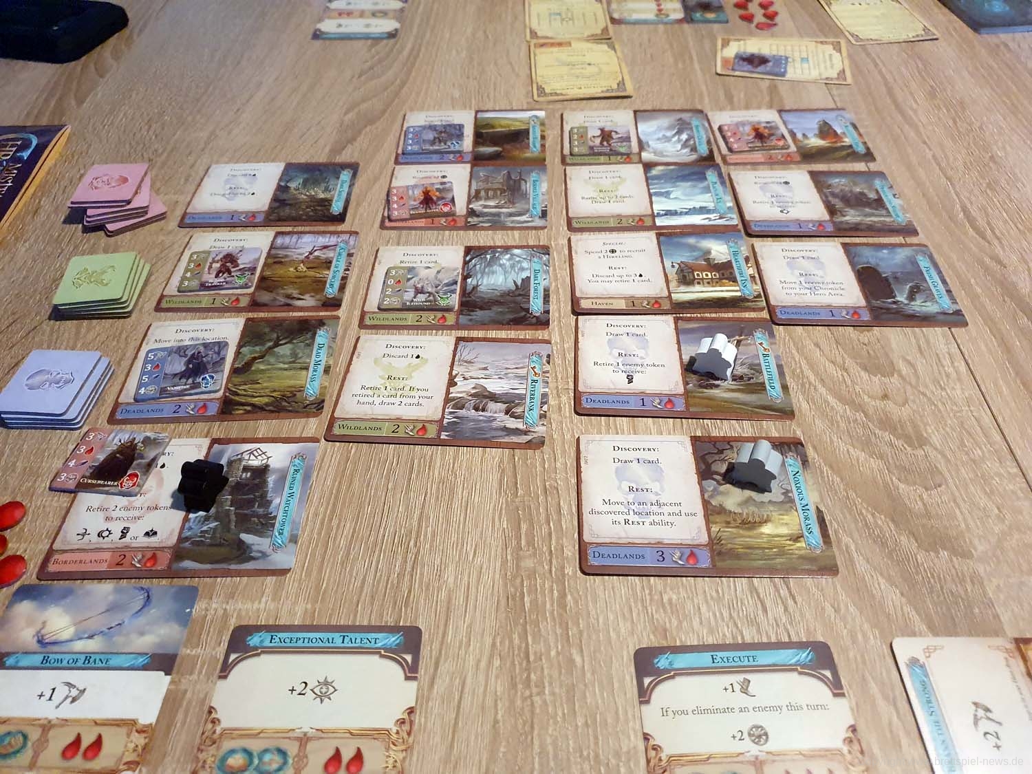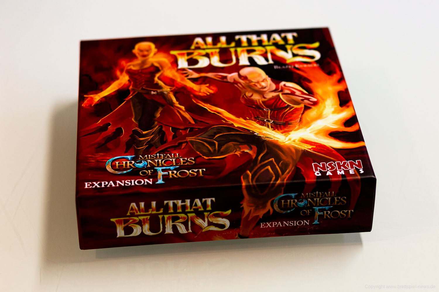 Mit Mistfall Chronicles of Frost ist ein englischsprachiges Abenteuer-Kartenspiel beim vormaligen Verlag NSKN erschienen, der mittlerweile im polnischen Verlag Board&Dice aufgegangen ist. Wir haben sowohl das Grundspiel, als auch die Erweiterung ALL THAT BURNS erworben, um das Spiel demnächst vorstellen zu können. Es lässt sich allein, aber auch mit bis zu vier Spielern spielen. Sowohl kompetitiv als auch kooperativ können die Spieler das Abenteuer angehen.