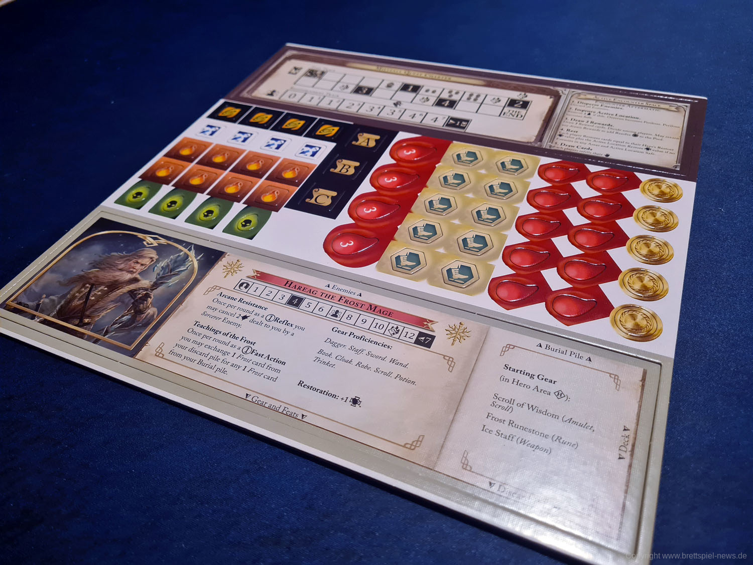 Chronicles of Frost ist ein Deckbau-Abenteuerspiel, das in Æstemyr spielt, einem dunklen Fantasy-Universum, das reich an eigenen Überlieferungen ist und von Mistfall, Heart of the Mists und Shadowscape geteilt wird.