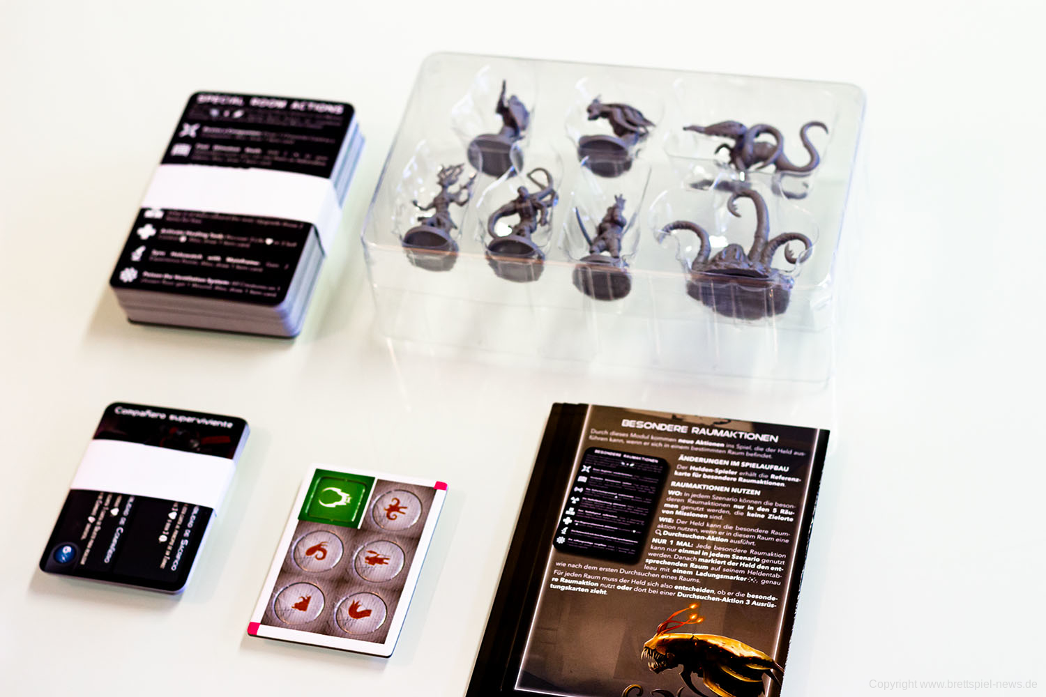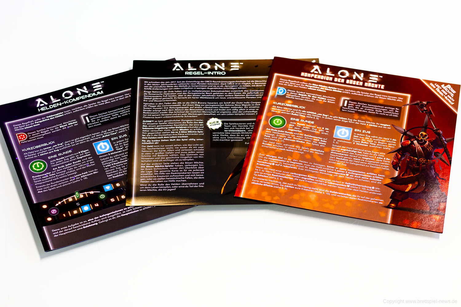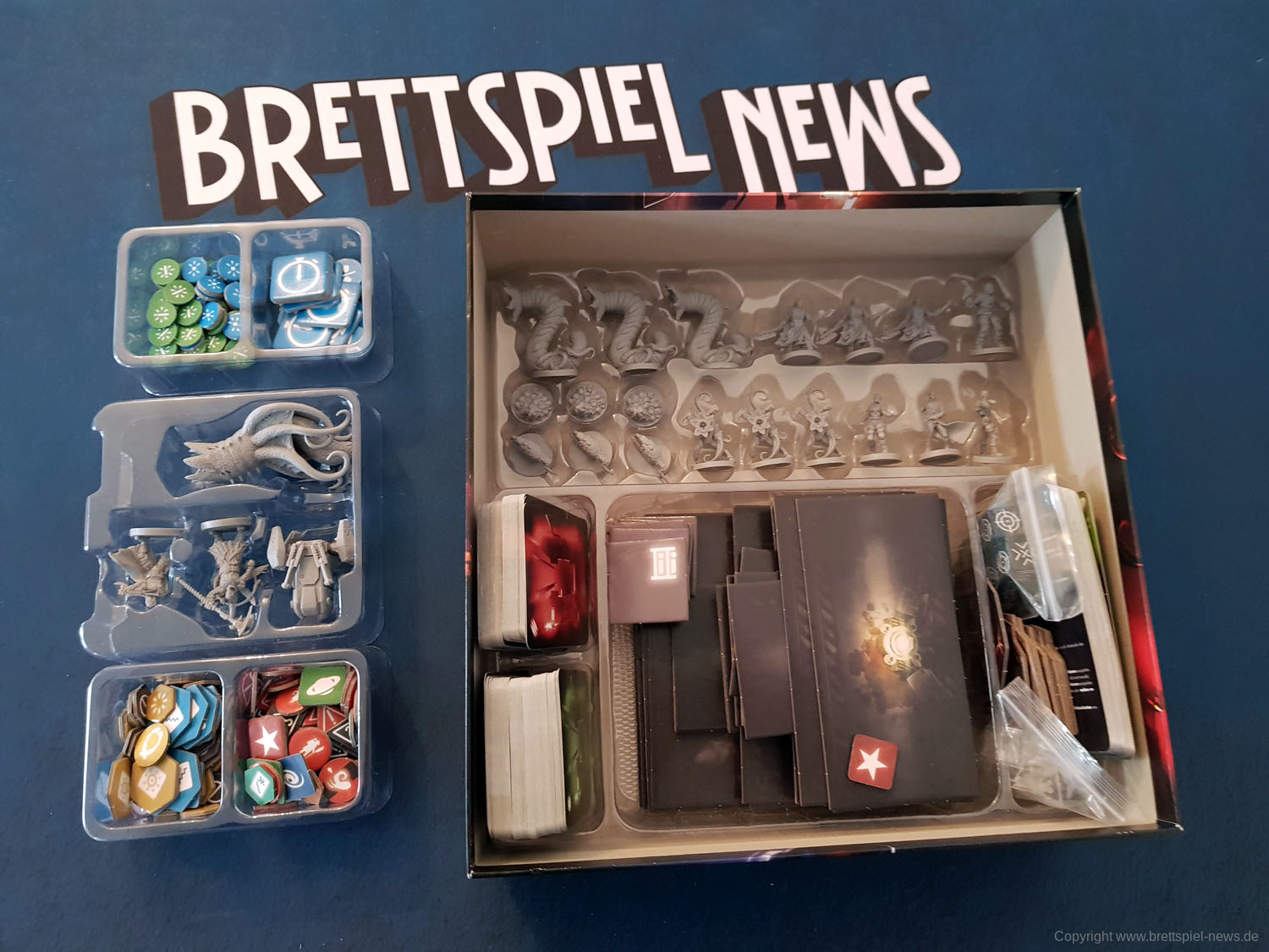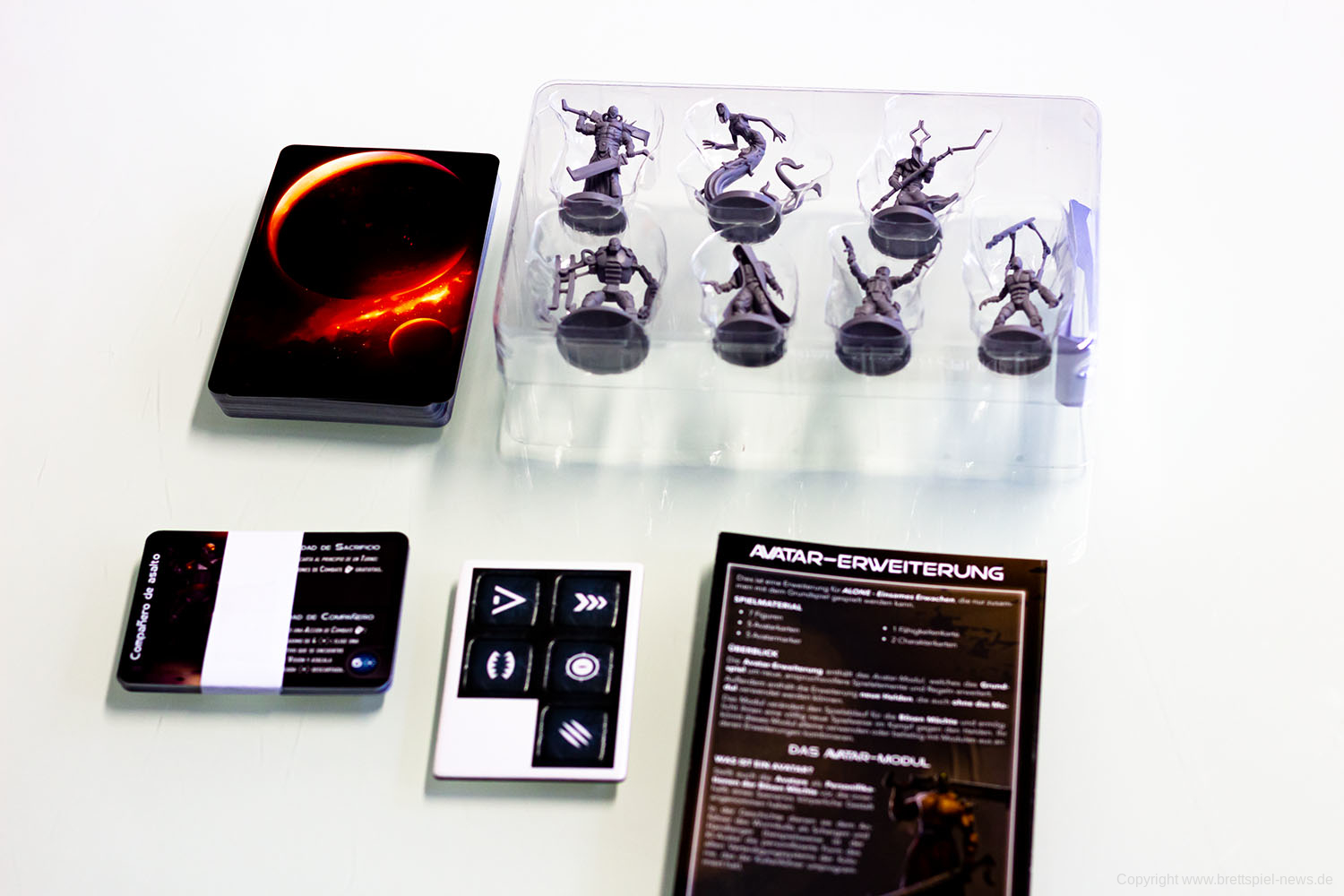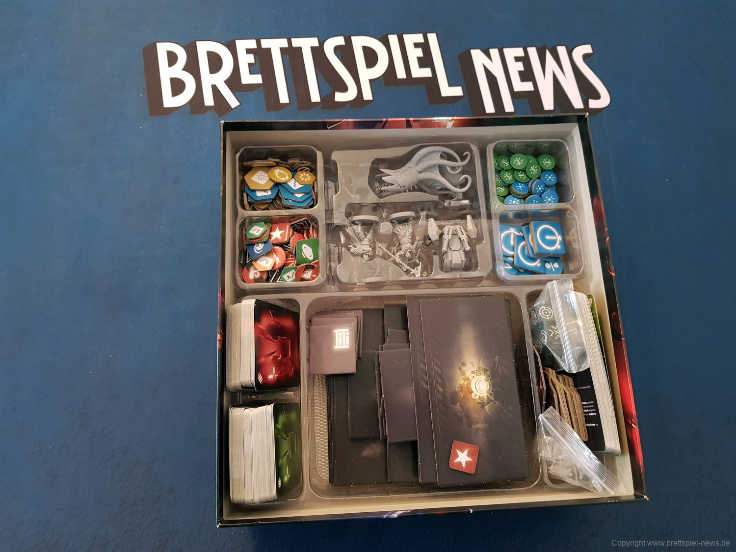 ALONE von Horrible Guild ist im Vertrieb von Heidelbär Games als deutsche Version im Handel zu kaufen. Das gilt auch für die Erweiterungen Avatar, Deep und Alpha. Wir haben uns alles gekauft und zeigen nun erste Bilder des Spielmaterials. Besonders gut gefällt uns das Inlay, dass besser ist als alles was wir von CMON kennen.