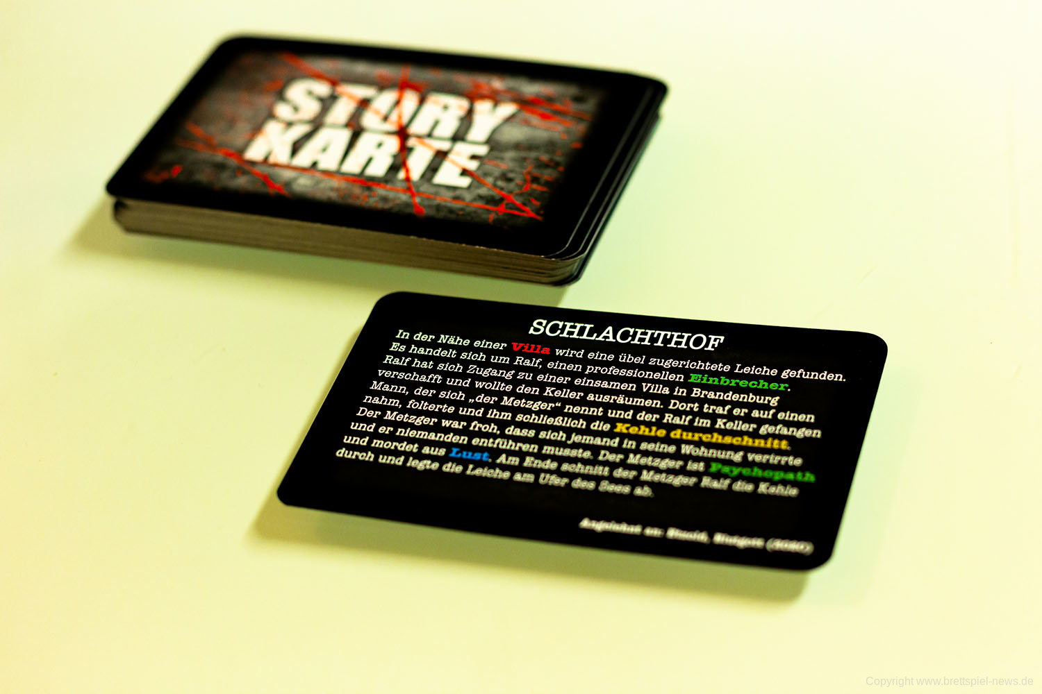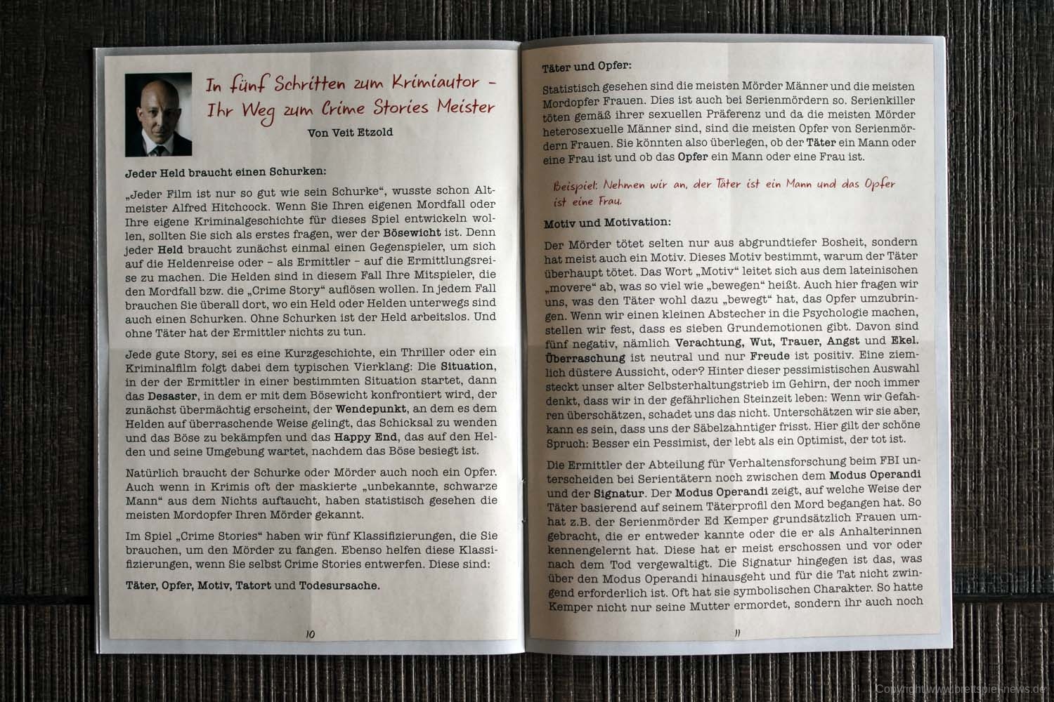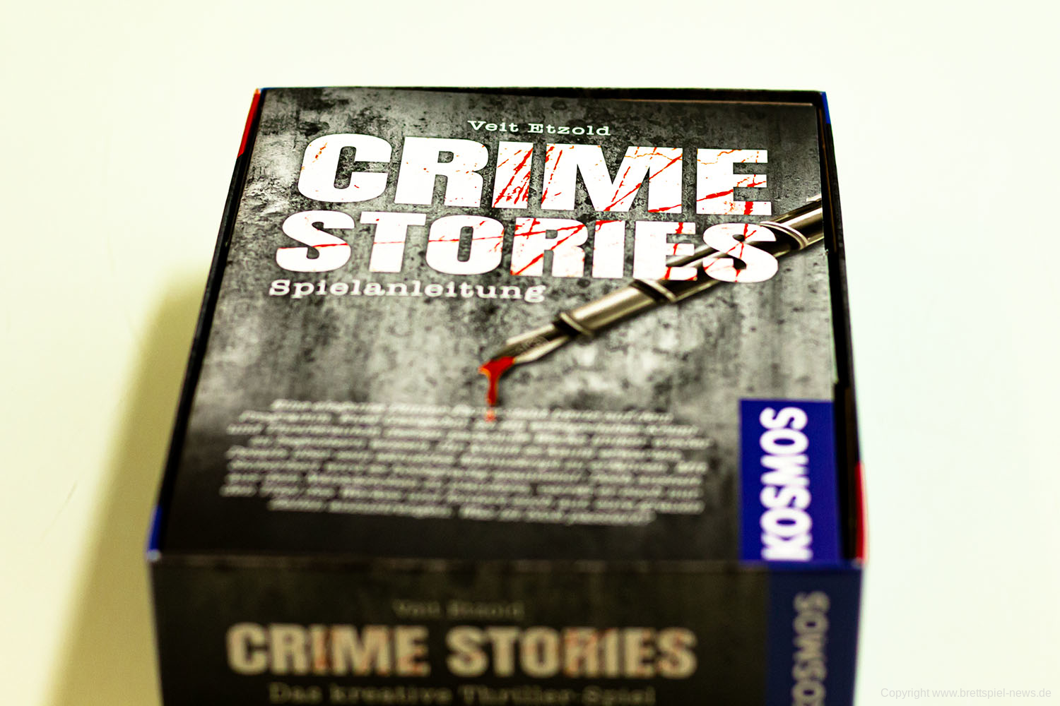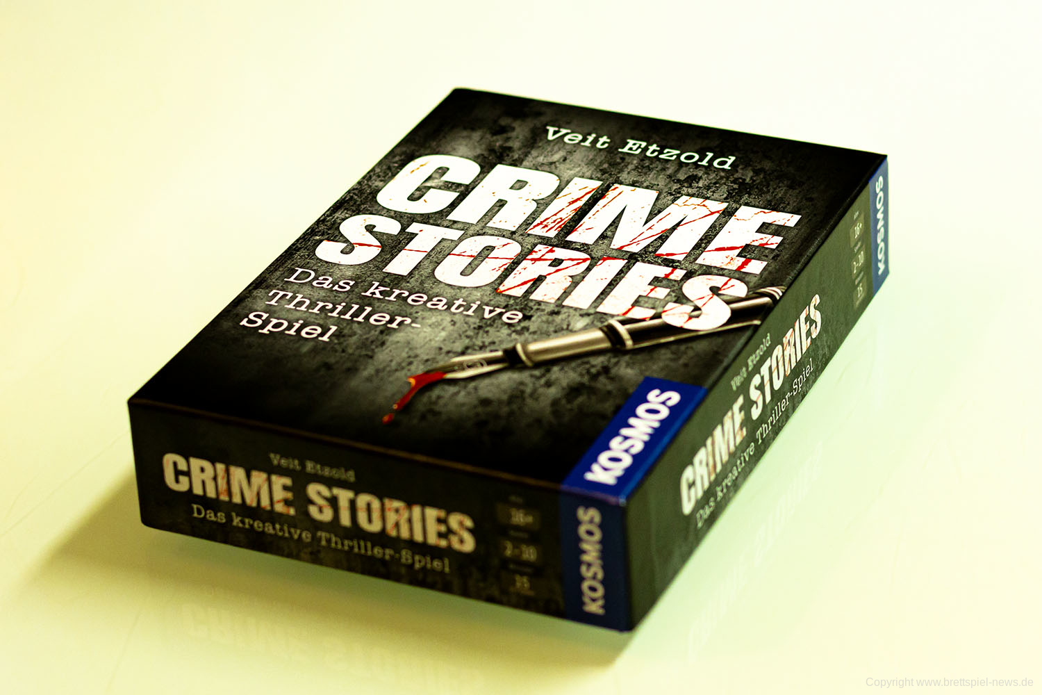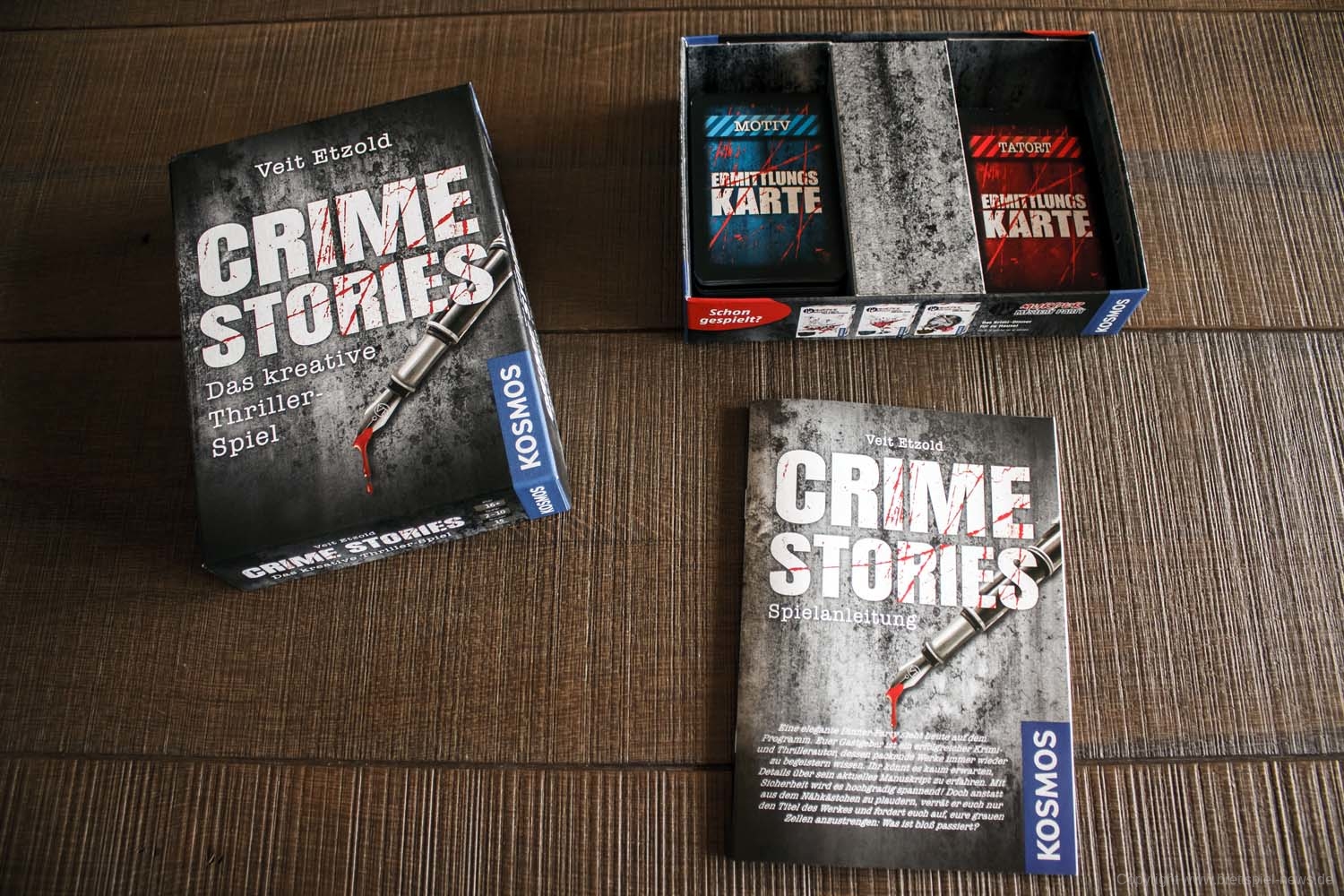 Mit Veit Etzold CRIME STORIES bedient der KOSMOS Verlag das immer noch wachsende Interesse an kleinen Spielen, für Krimi- und Thriller-Fans. Dabei kann dieses Spiel mit exklusiven Geschichten vom Bestseller-Autor Veit Etzold aufwarten. Es enthält zusätzlich eine Schreibwerkstatt: Inklusive Tipps und Tricks zum Thema „Krimi schreiben“. Es ist zwar ein Partiespiel, lässt sich aber auch schon ab zwei Spielern spielen. Da die Altersempfehlung ab 16 liegt ist es für Familien mit jüngeren Kindern nicht geeignet. Die Spielzeit beträgt rund 15 Minuten pro Spieler.