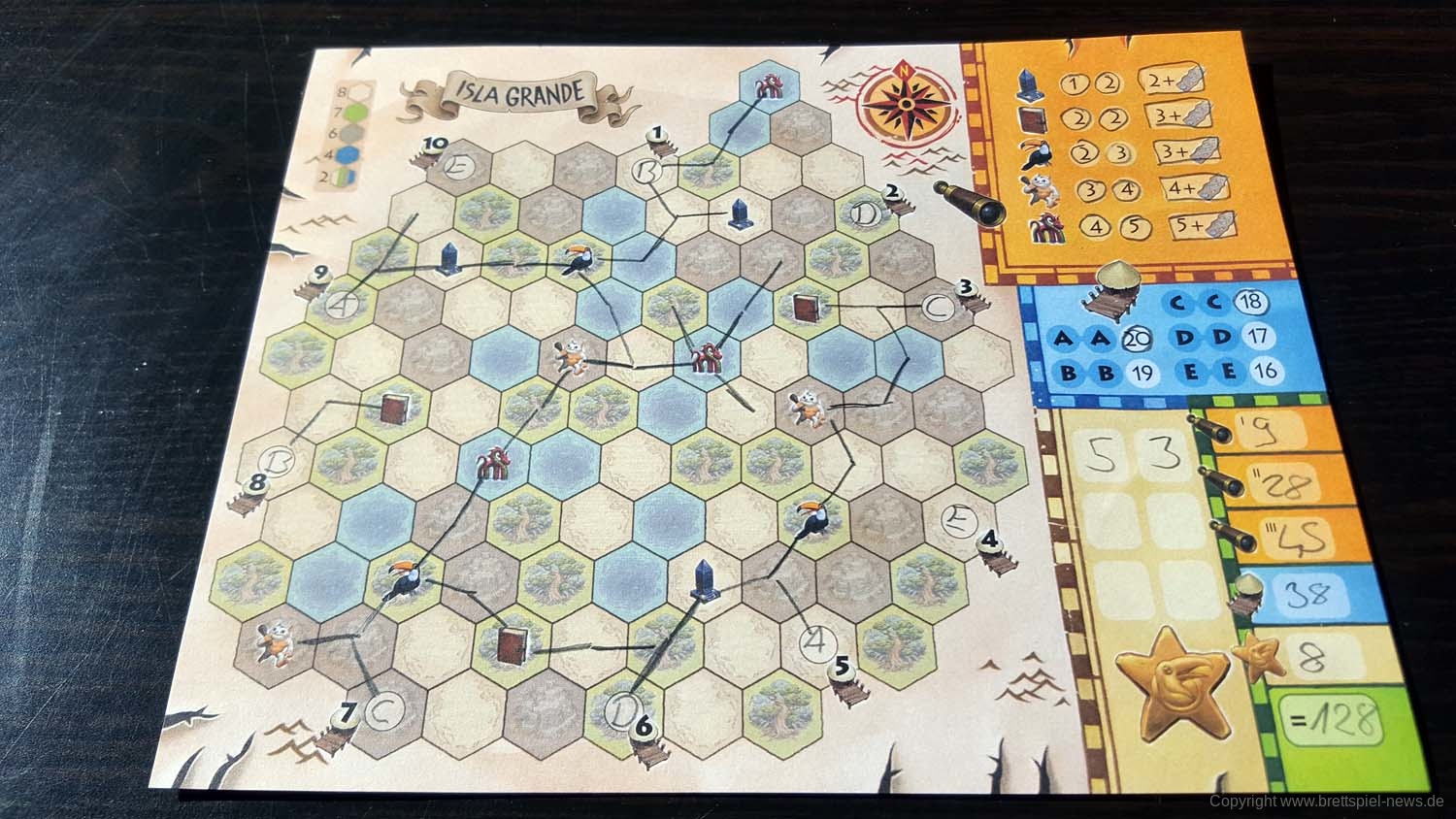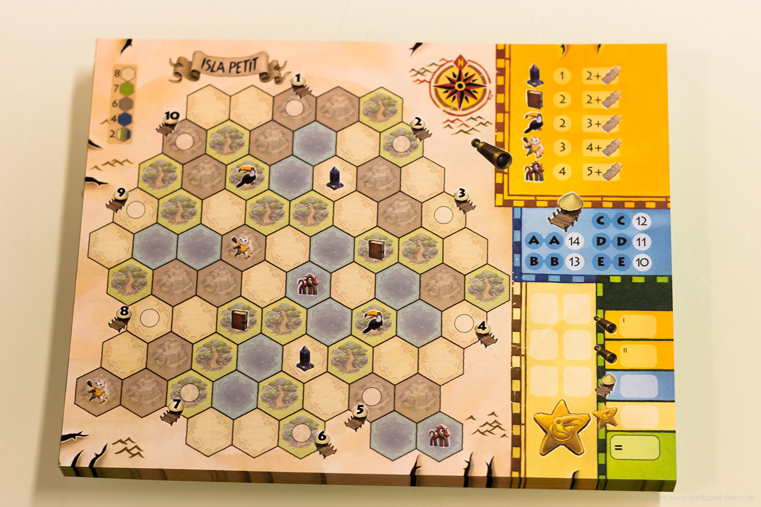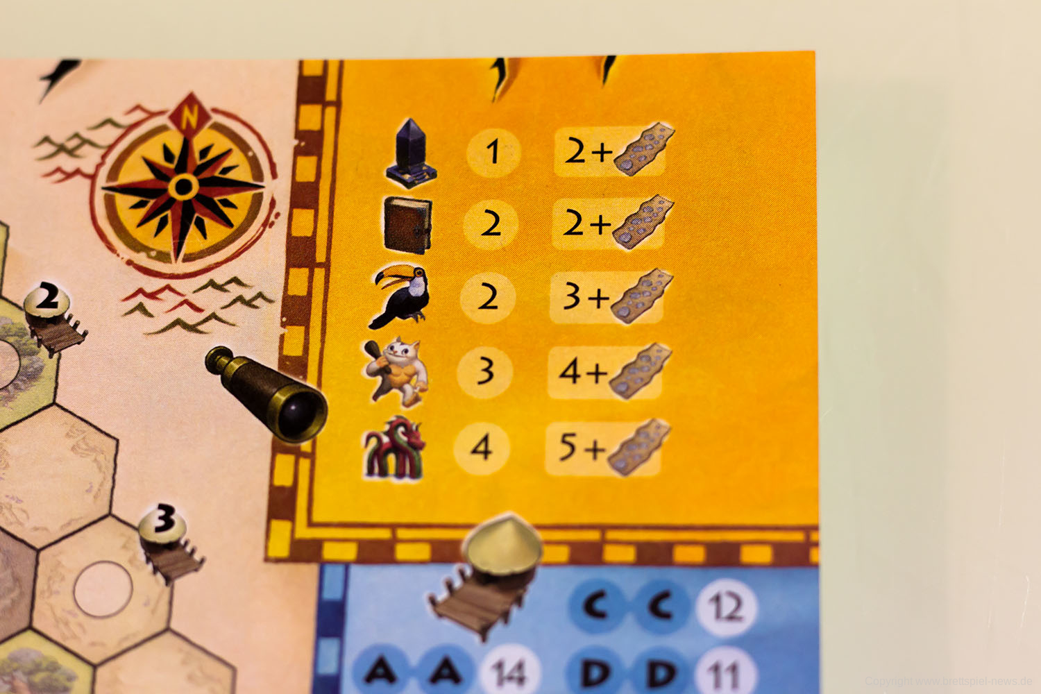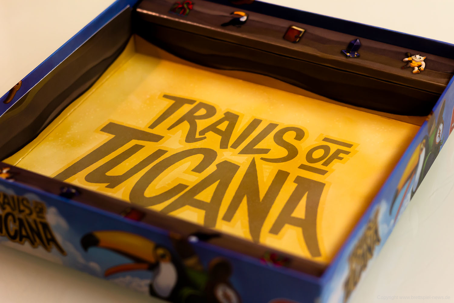 Bei uns ist die Pegasus Spiele Neuheit TRAILS OF TUCANA eingetroffen und wir haben es gleich vor die Kamera gezerrt um erste Bilder zeigen zu können. Das Spielmaterial und auch die Innenverpackung machen einen guten Eindruck. Der Block wird gut in der Packung gehalten, Stifte liegen bei, einige Karten und die Anleitung. Das Familienspiel richtet sich an 1-5 Spieler ab 8 Jahren. Eine Partie beansprucht gerade einmal 15-30 Minuten Spielzeit. Der UVP liegt bei 19,95 €.