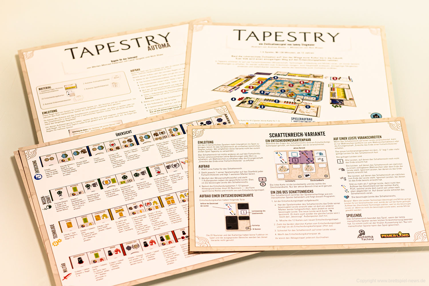 Stonemaier Games hat die Neuheit Tapestry bereits 2019 veröffentlicht. Nun ist bei den Vorbestellern in Deutschland mitlerweile die deutsche Feuerland Version eingetroffen. Das Spiel stammt von Jamey Stegmaier und ist ein Zivilisationsspiel für 1-5 SpielerInnen. Eine Partie dauert 90-120 Minuten und wir hatten bereits die englische Version des Spiels getestet.