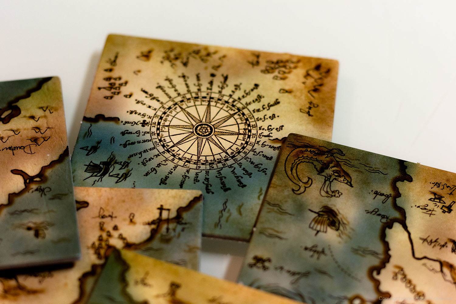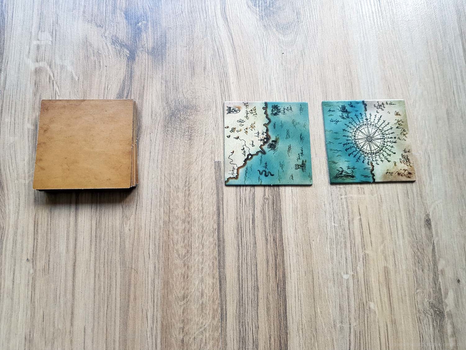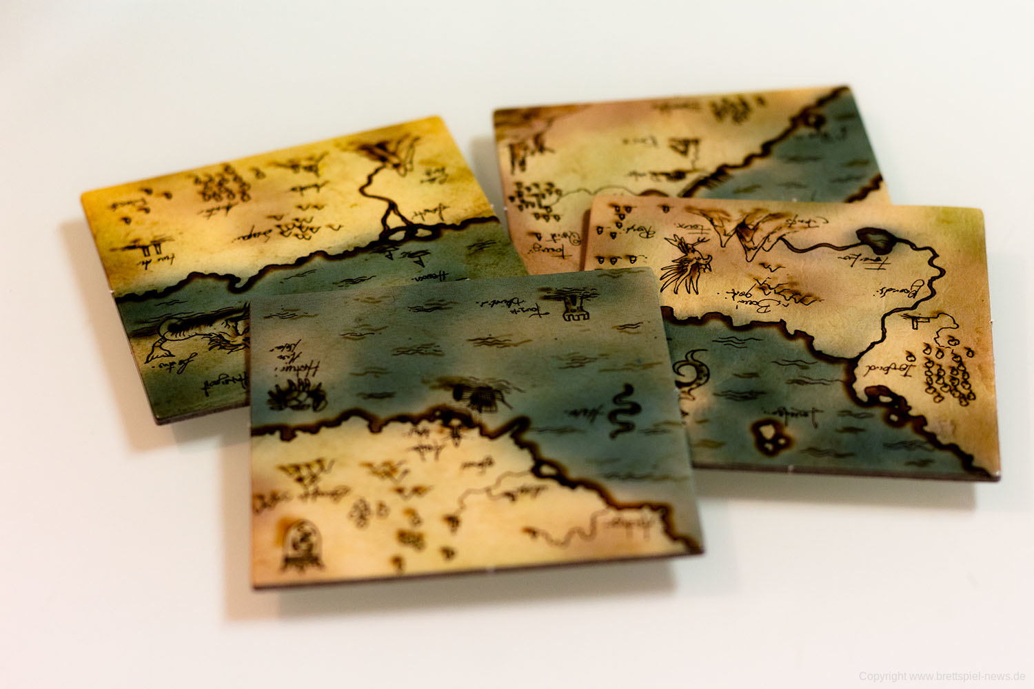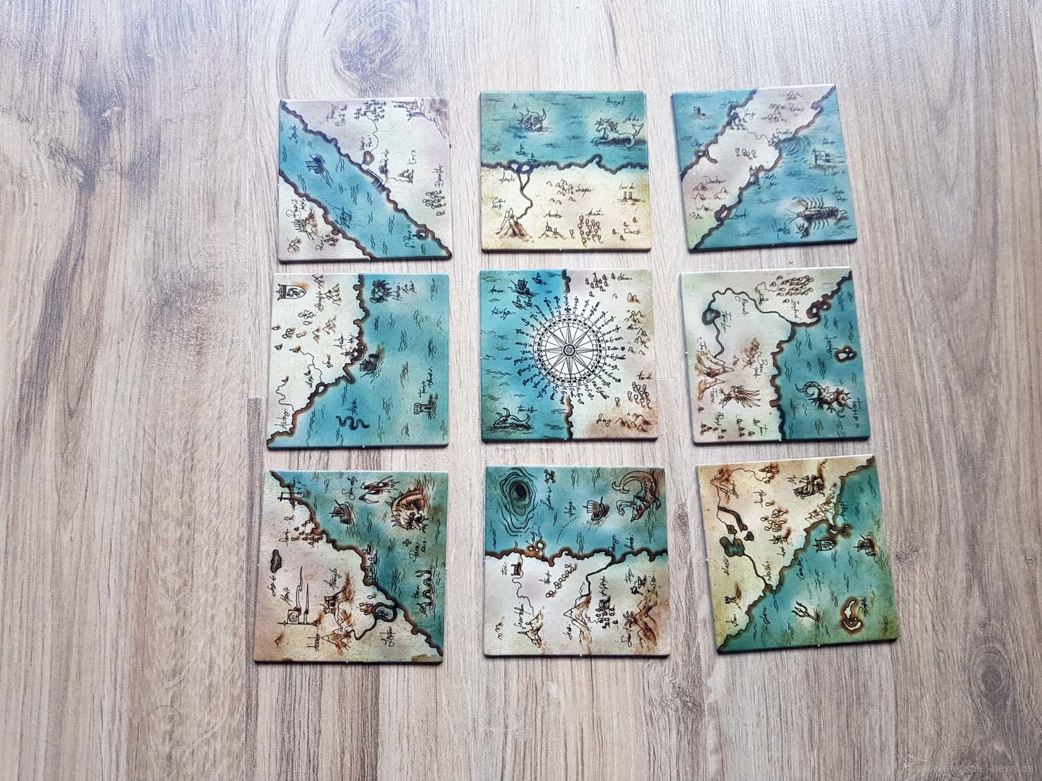 Ihr habt eine alte Landkarte entdeckt, über deren Rekonstruktion ihr nun debattiert. Wem steht welches Gebiet zu? Jedes der 9 Landkartenteile hat zwei Gebiete, die jeweils von einer Person kontrolliert werden. In jedem Zug müsst ihr neu entschieden, ob ihr ein bereits ausliegendes Landkartenteil drehen möchtet, oder ob ihr ein weiteres dazu legt. Es gewinnt, wer bei Spielende die meisten Landkartenteile für das eigene Hoheitsgebiet, Land oder See, auf einer 3x3 Felder großen Landkarte beanspruchen kann.