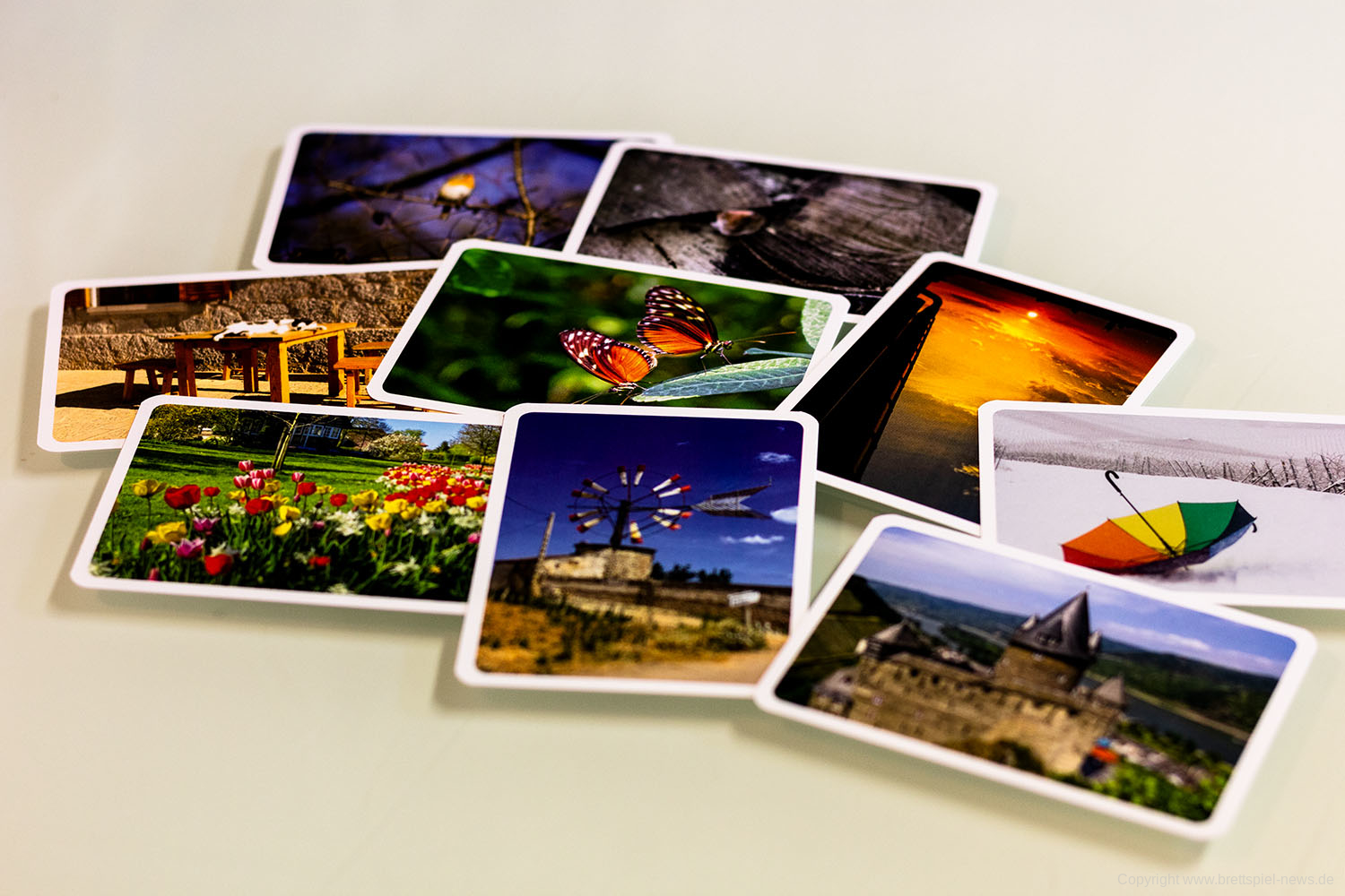 Ende 2019 ist die Neuheit PICTURES beim PD-Verlag erschienen. Das Familienspiel stammt vom Autorenduo Daniela und Christian Stöhr. Gestaltet wurde es von Dominik Mayer. Das Spiel richtet sich an 3-5 Spieler und bietet Spielrunden von überschaubaren 20-30 Minuten. Das Spiel konnte den Spieleerfinderpreis 2019 gewinnen und beim natürlichen Spielmaterial einen ausgesprochen guten Eindruck.